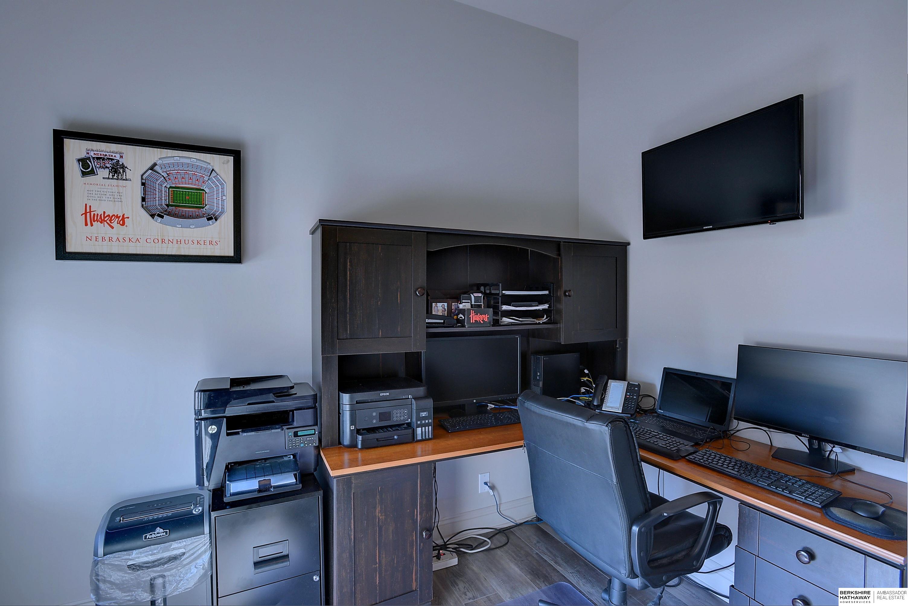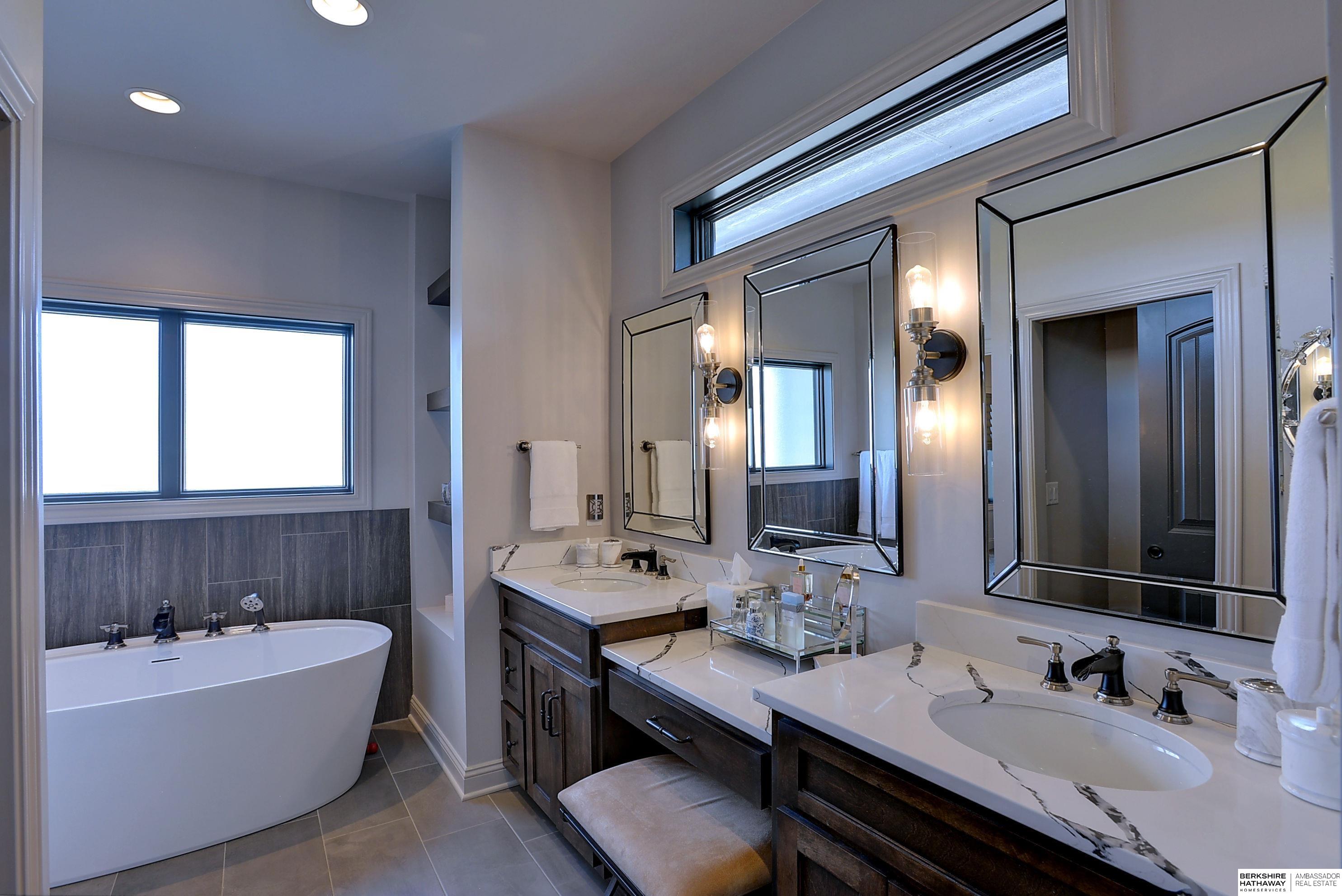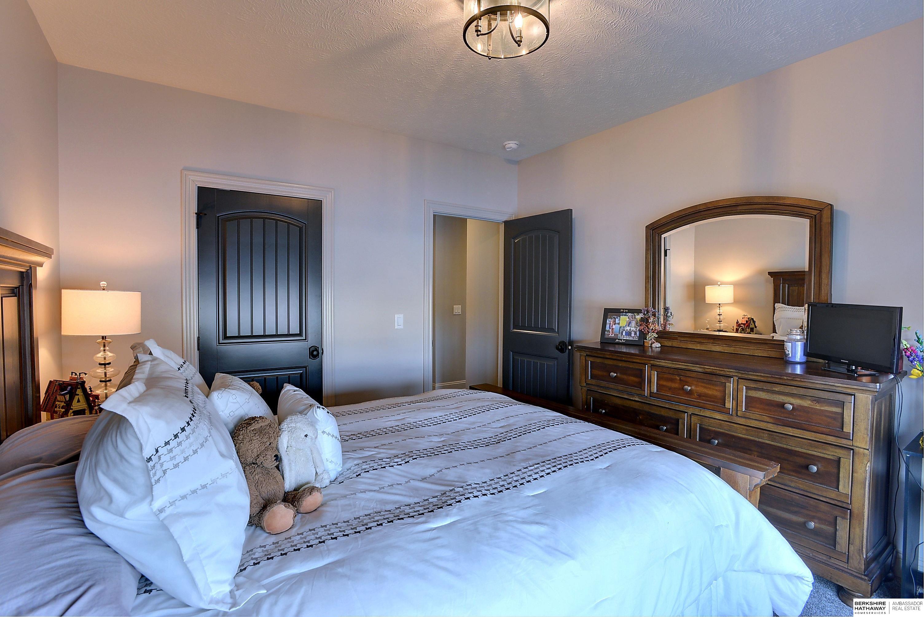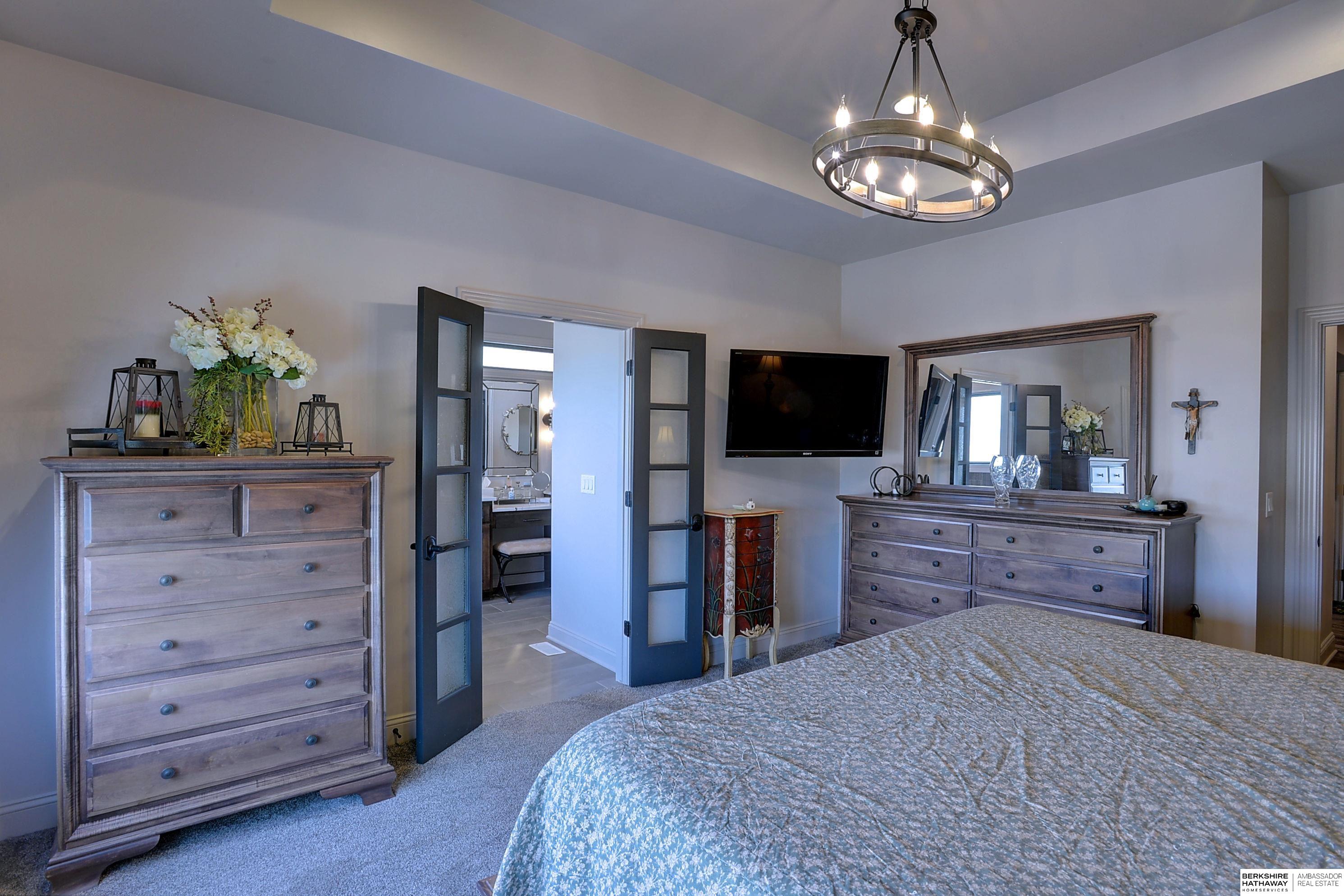 Exceptional Ranch home on corner lot! 4 Bed/3 Bath/3 Car. Upgrades throughout! Heated pool w/slide, lighting, bball+vball hoops, automated salt h2o & chlorine systems + upgraded liner + pre-wired for outdoor sound. Enjoy spectacular sunsets on your covered deck w/ automated screens + remotes. Privacy fence + oversized patio for grilling and pool storage. Open great rm vaulted ceiling, beams + stone fireplace. Incredible kitchen w/warm stained cabinetry, large island, walk-in pantry, upgraded appliances, so much storage! Primary suite w/heated floor in bathroom! WKO LL features stone FP, custom bar, built in appliances, brick wall detail, gym (or 4th bedrm) + LVP flooring. Reverse Osmosis, sprinkler, hi-eff hvac, all toilets have heated bidet seats, Brizo plumbing fixtures, tankless H2O heater. Easy access to Dodge, Blondo + Maple. Walking distance to elementary school and middle/high schools are less than a mile away. Well-kept, spotless home! AMA