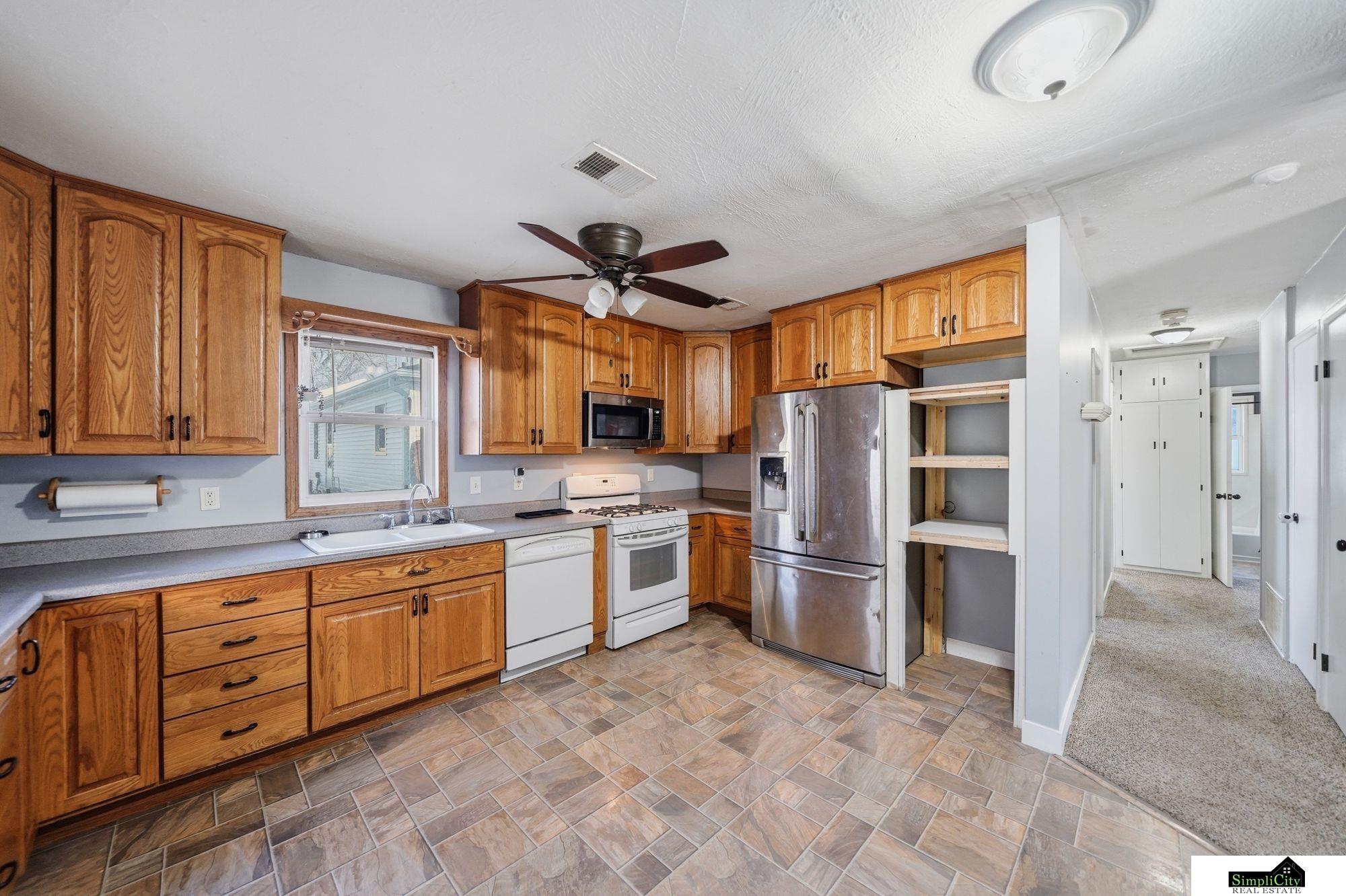 Welcome home to this well-maintained 3-bedroom, 1-bath ranch offering easy one-level living and thoughtful updates throughout. Situated on a large corner lot, the home features a covered front porch, fully fenced backyard, and a generously sized 2-stall garage. Inside you’ll find original hardwood floors, a spacious kitchen with oak cabinetry and dining area, plus a dedicated laundry room. Furnace and A/C replaced in 2018. Schedule your showing today!