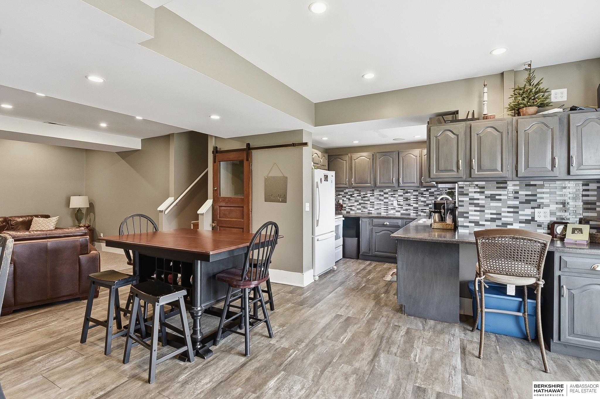 Beautifully maintained 1.5-story home just steps from downtown Elkhorn Enjoy walkable access to popular bars, restaurants, and shopping in this charming community with top-rated schools. This 4-bedroom, 3-bath home offers approximately 2,700 sq ft and features an updated kitchen plus a finished walkout basement with a full second kitchen—perfect for entertaining or multi-generational living.