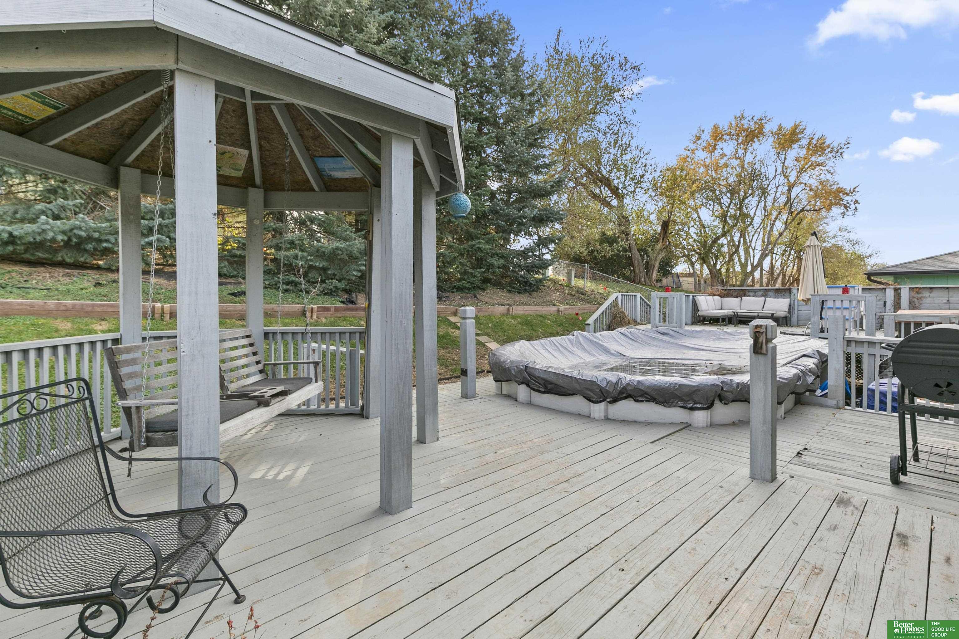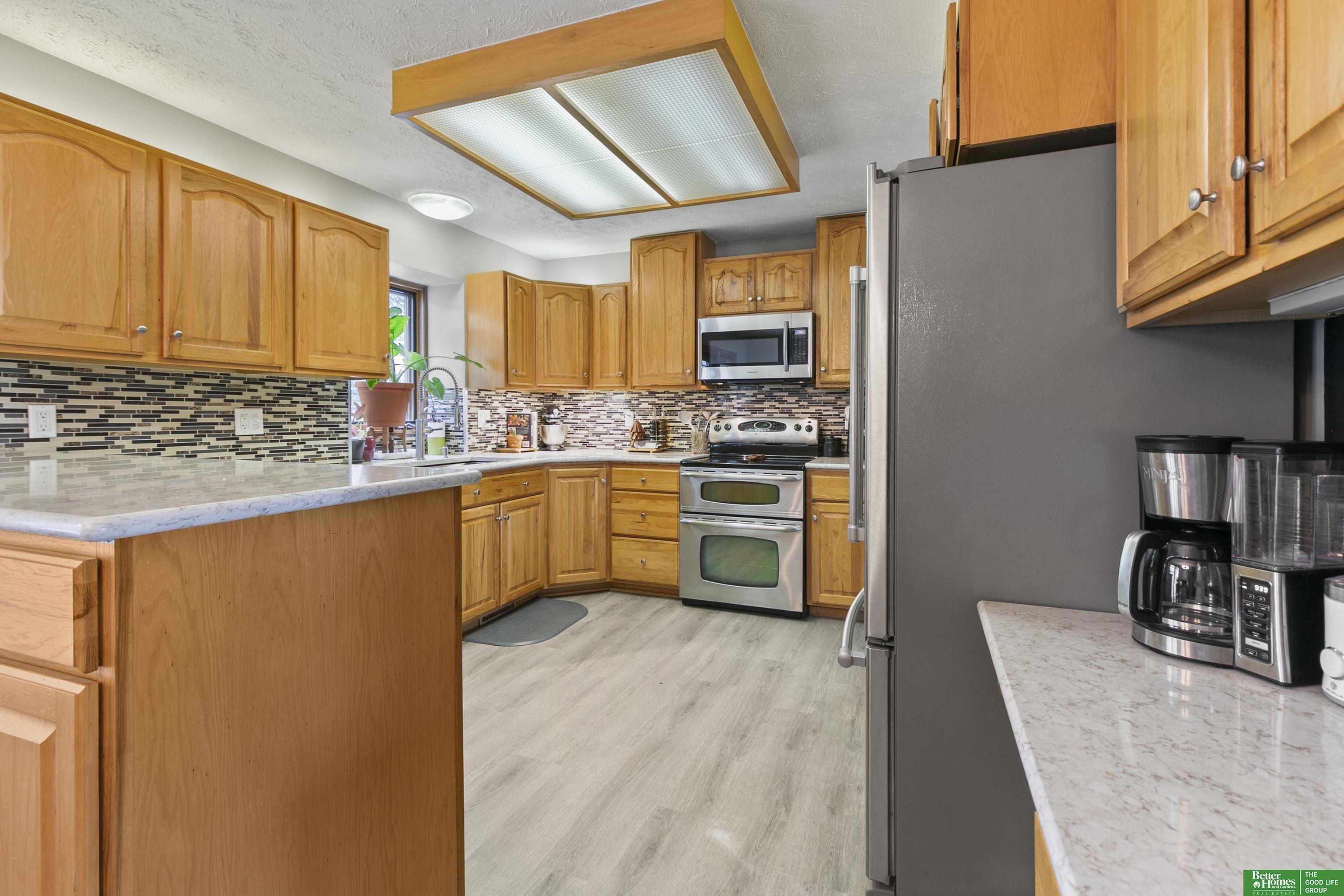 Welcome to this charming, PRE-INSPECTED, split entry home that boasts 3 bedrooms, 2 1/2 baths, a gas fireplace, and a 2-car garage situated in the coveted Leawood Oaks subdivision. The modern updates and outdoor amenities are sure to impress. Inside you will discover freshly painted walls and new flooring, creating a welcoming ambiance throughout. The main level has a spacious living area that flows seamlessly into the dining area and stunningly updated kitchen with tons of cabinetry. The primary suite has its own private ensuite and large walk-in closet. Step outside to a large deck which is ideal for hanging out or just relaxing in the sun. Unlimited summer fun awaits in the above ground heated pool or enjoy year-round relaxation in the soothing hot tub or hanging out on the swing in the pergola. This home offers a perfect blend of indoor comfort and outdoor enjoyment. The owners have taken meticulous care of this home, and it truly shows inside and out.