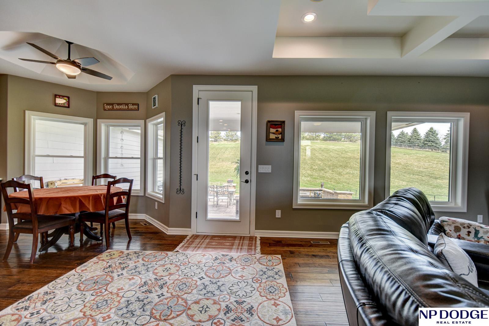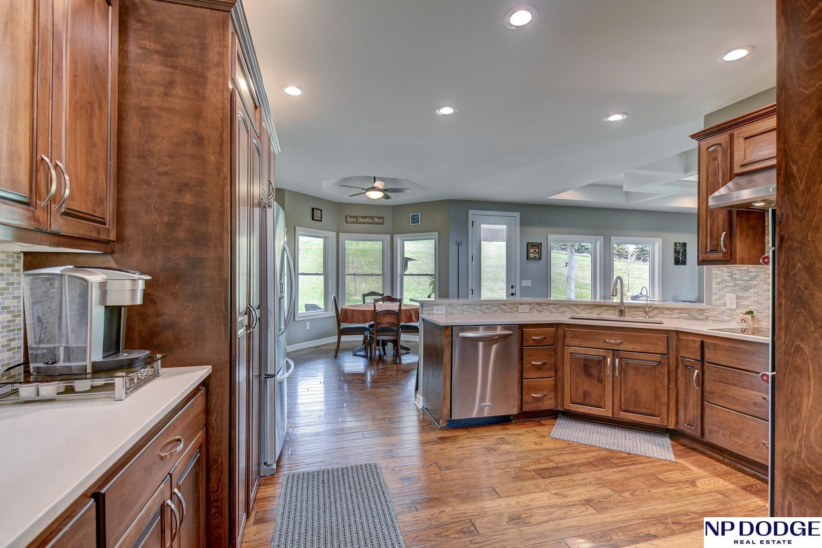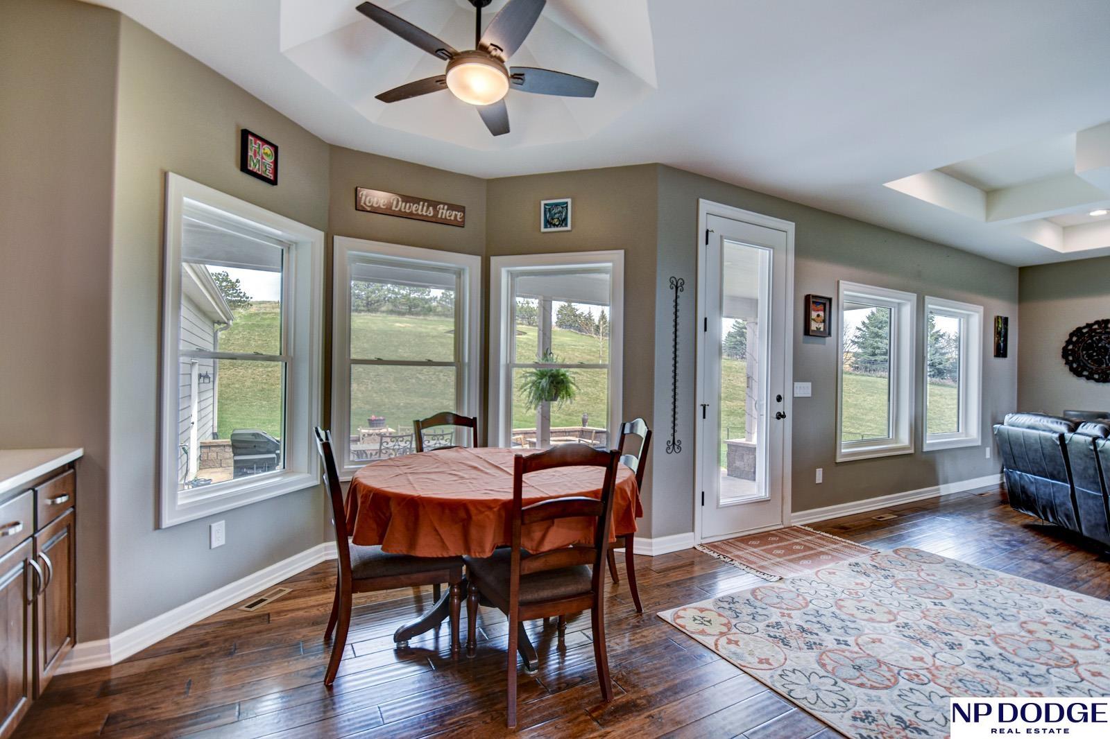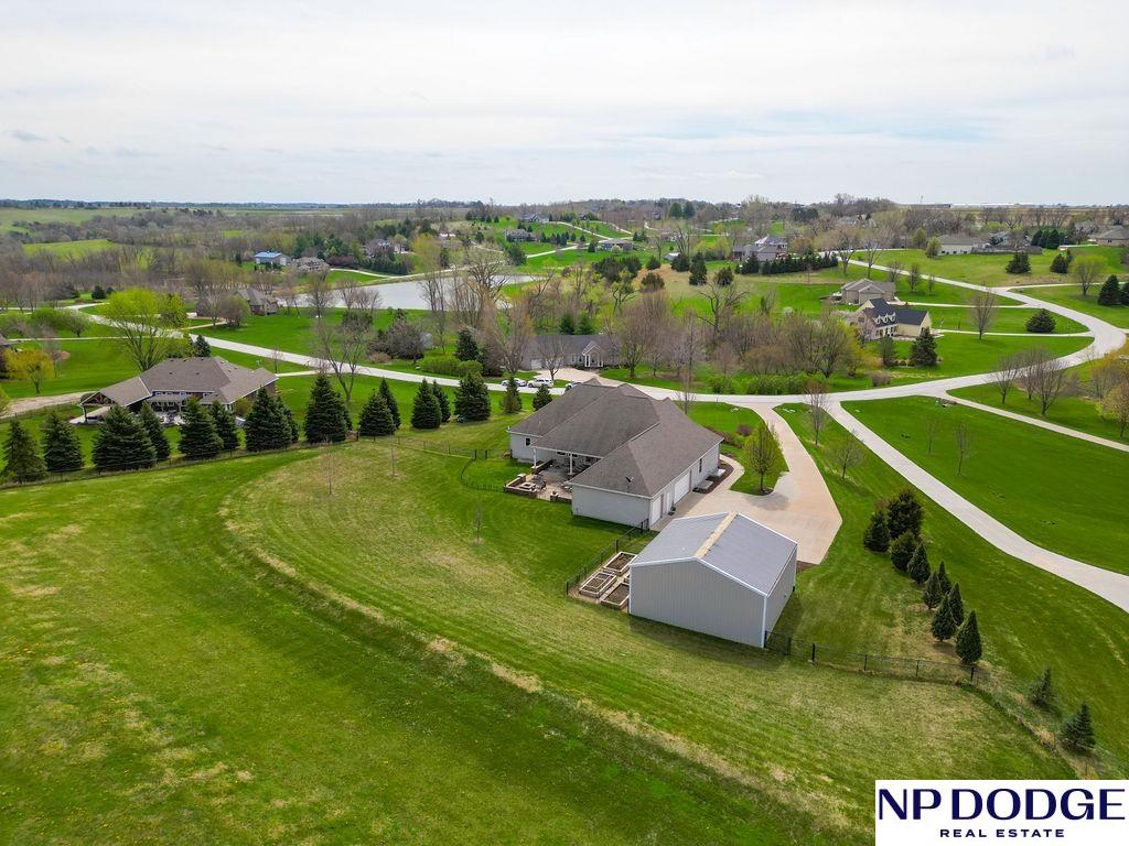 Tucked into a picturesque setting just 10 minutes from Omaha, this beautiful acreage property offers the perfect balance of space, and convenience. Situated on just over 2 acres, the 4500 sq ft home features 6 bedrooms and 5 bathrooms with an open-concept main level designed for both everyday living and entertaining. Beautiful kitchen with hidden walk-in pantry. Large Primary with his and hers closet, huge tiled shower. The finished basement is the perfect gathering space with a wet bar and plenty of room to spread out. Step outside to enjoy the covered patio, huge fenced yard, and peaceful surroundings. A 30x30 outbuilding provides endless possibilities for storage, hobbies, or a workshop. Need more convivence? Don’t miss the half bath in the heated attached garage. Residents also enjoy access to a private neighborhood pond adding more to this one-of-a-kind property. Efficient geothermal heating and cooling keeps the home comfortable year-round.