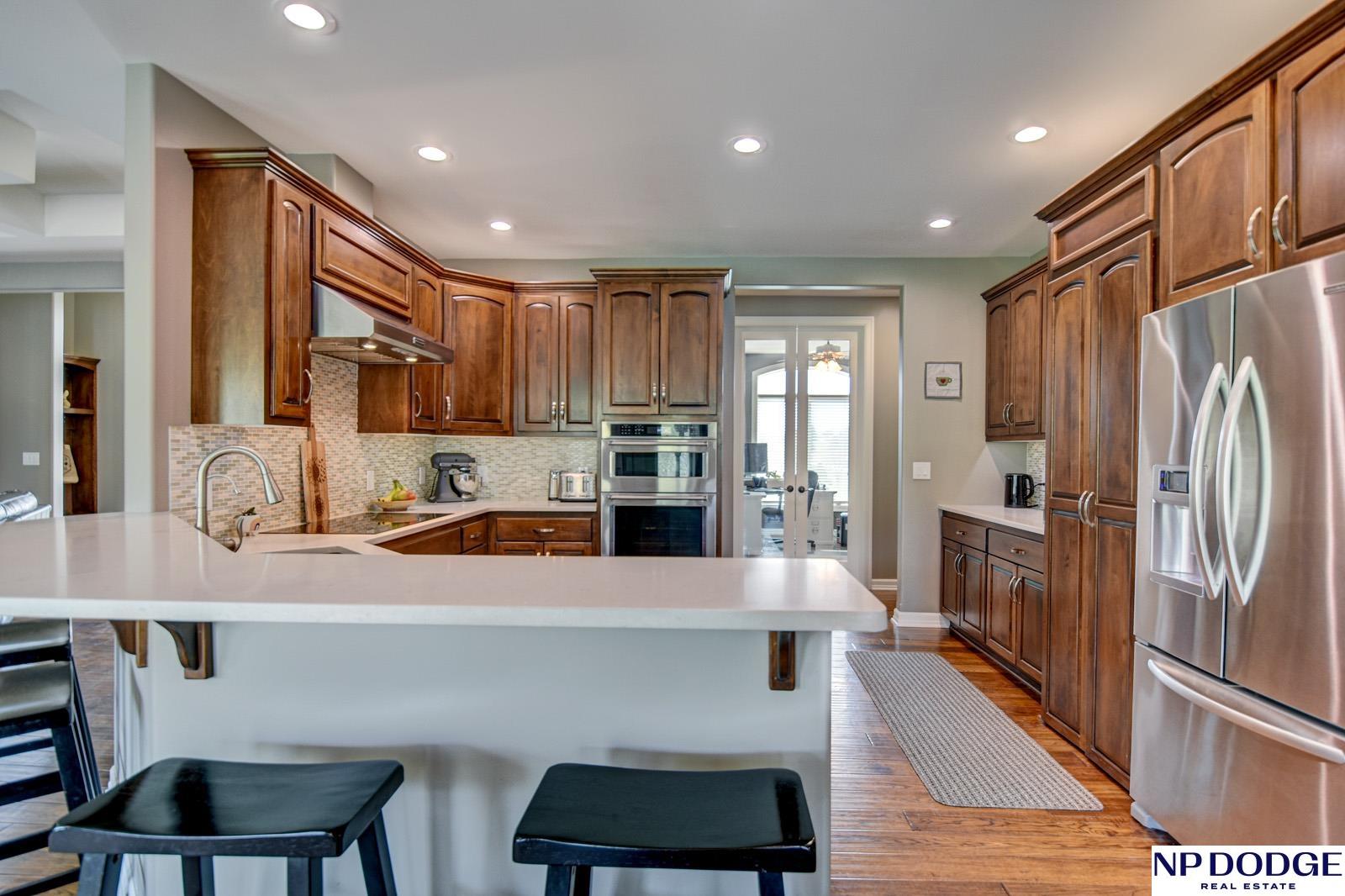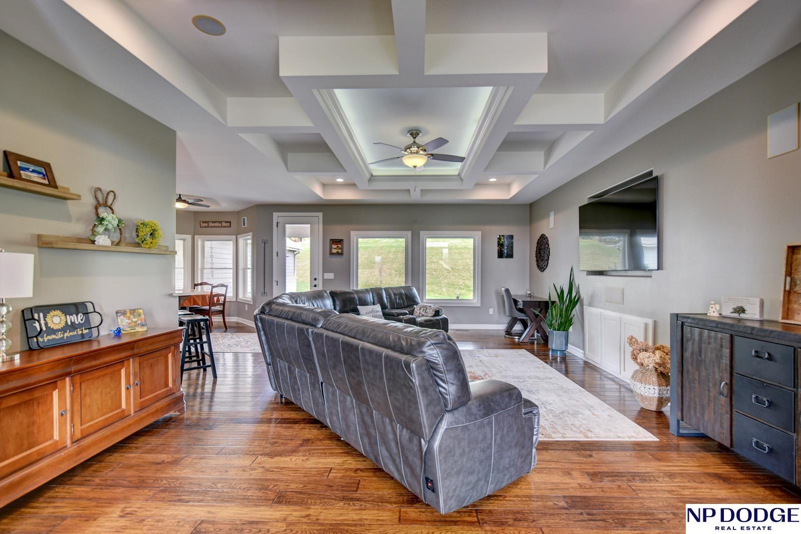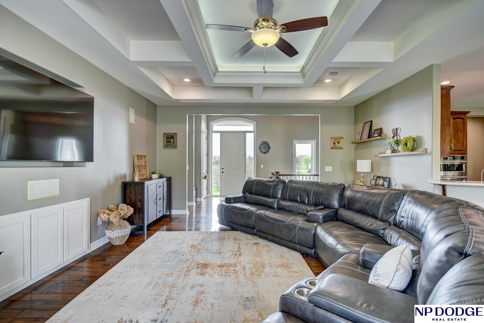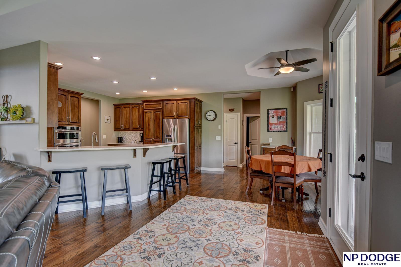 Tucked into a picturesque setting just 10 minutes from Omaha, this beautiful acreage property offers the perfect balance of space, and convenience. Situated on just over 2 acres, the 4500 sq ft home features 6 bedrooms and 5 bathrooms with an open-concept main level designed for both everyday living and entertaining. Beautiful kitchen with hidden walk-in pantry. Large Primary with his and hers closet, huge tiled shower. The finished basement is the perfect gathering space with a wet bar and plenty of room to spread out. Step outside to enjoy the covered patio, huge fenced yard, and peaceful surroundings. A 30x30 outbuilding provides endless possibilities for storage, hobbies, or a workshop. Need more convivence? Don’t miss the half bath in the heated attached garage. Residents also enjoy access to a private neighborhood pond adding more to this one-of-a-kind property. Efficient geothermal heating and cooling keeps the home comfortable year-round.
