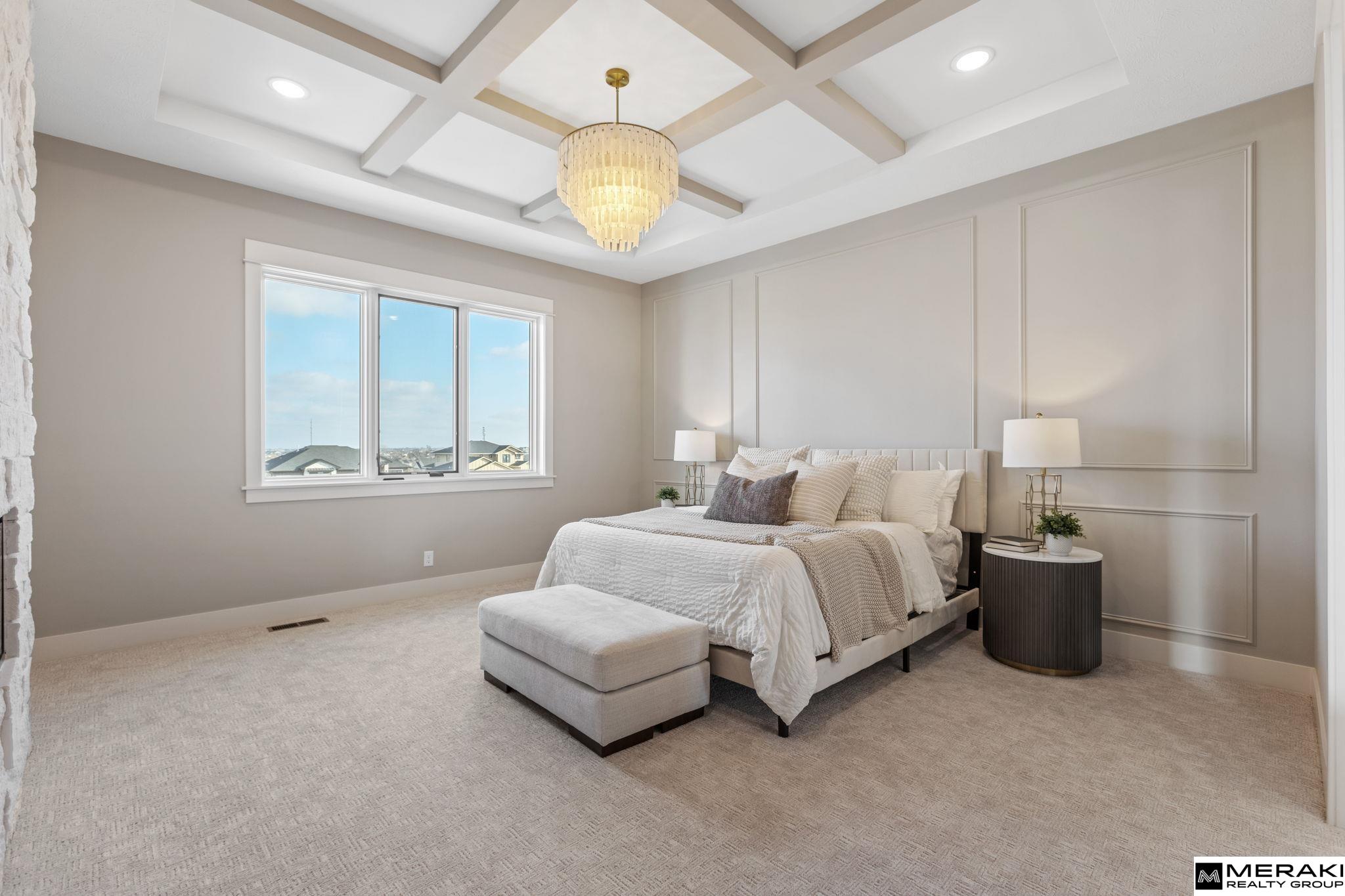 No dollar was spared in this luxurious, custom-built Modern Mediterranean "Memphis" by Maxim Homes. This 1.5 story living boasts an abundance of natural light and open concept living at its finest. The kitchen features SS appliances, an oversized island, walk in pantry and steps away from the generous mud room. Main floor offers primary suite that provides functional beauty with a spa like retreat bath, large walk-in closet and easy access to laundry along with 2nd bedroom/office. 2nd level offers 2 spacious bedrooms and a full bath. The covered upper deck provides a fireplace and gorgeous views for outdoor entertaining. Lower level is an Entertainers dream with movie theater, bar area, 5th bedroom, full bath and a second laundry. Oversized 4 Car garage has ample storage area. The backyard with stunning pool, unbelievable views and privacy perfectly rounds out this stunning home in Blue Sage Creek. Est Completion 11/01/26