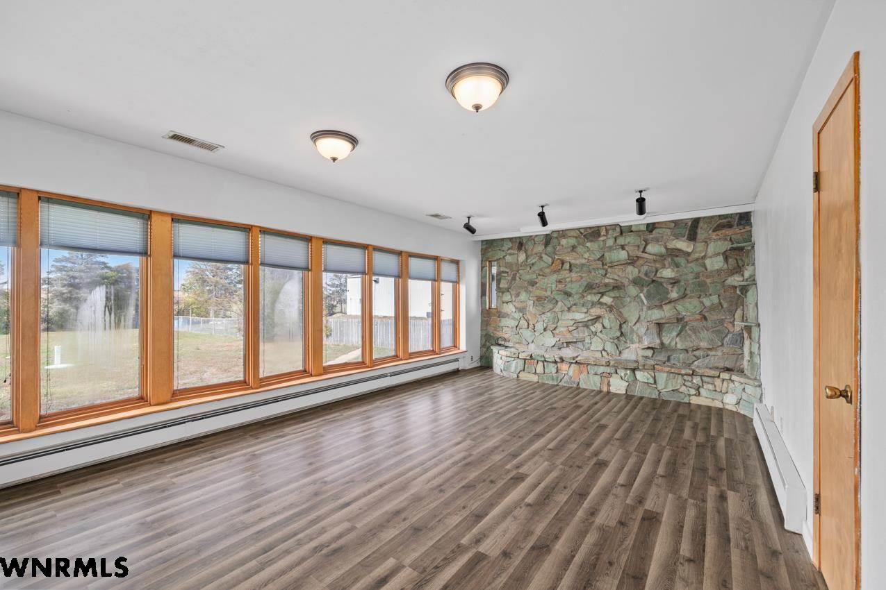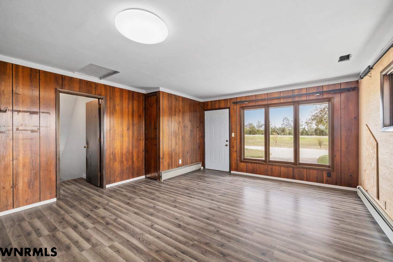 Discover an incredible opportunity to own a spacious rural home just 2 minutes from Kimball. This property offers over 3,000 sf of fully finished living space with generous room sizes throughout. The main floor features beautiful hardwood floors, multiple living areas accented by striking stone walls, and abundant natural light from the large windows. With 6-bedrooms and 2 bathrooms, this home provides exceptional flexibility for large families or multi-use living. The basement includes two bedrooms, brand new carpet, a bar area perfect for entertaining, and an enclosed space that could easily be converted back into a hot tub room. Enjoy the outdoors with a large backyard, a newer storage shed, and a 40x60 shop. Mature trees at the back of the property offer a natural windbreak and added privacy. If you're looking for space, convenience, and country living just minutes from town, - this home checks every box!