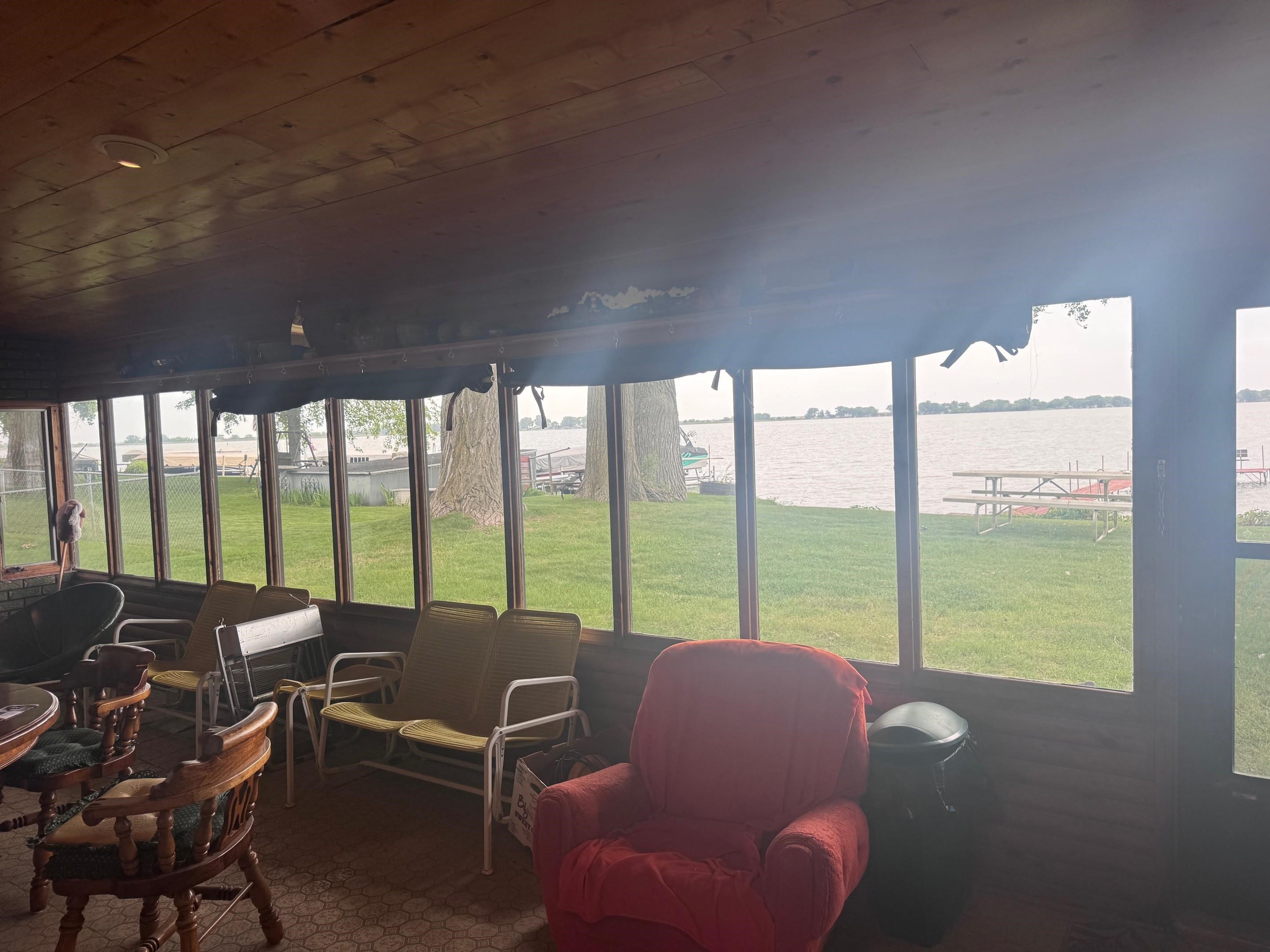 Rustic charm meets lakeside living in this spacious one-bedroom, two-bathroom cabin on the desirable east shore of Johnson Lake. With timeless character and year-round comfort, this property is the perfect retreat or weekend escape. The living room features exposed beams and warm wood tones, creating a cozy and welcoming space. A large sunroom with a wood-burning fireplace offers beautiful lake views and a relaxing spot to unwind through every season. Step outside to a well-sized yard with underground sprinklers, your own private dock, and deep water access. Two garages provide ample storage and flexibility: an attached garage, plus an oversized one-stall detached garage with a built-in workshop for hobbies, tools, or lake gear. This east shore cabin offers a rare mix of charm, functionality, water access, and beautiful sunset views. Schedule your private showing today.