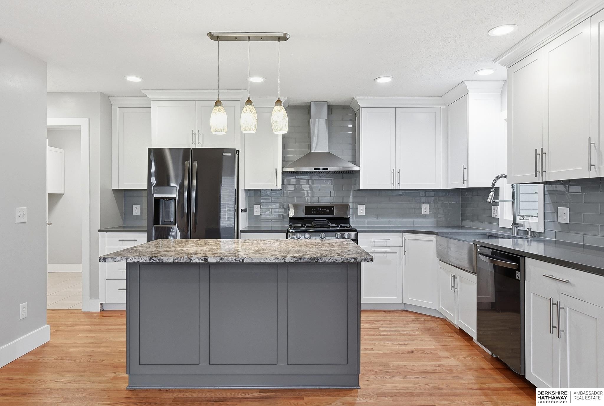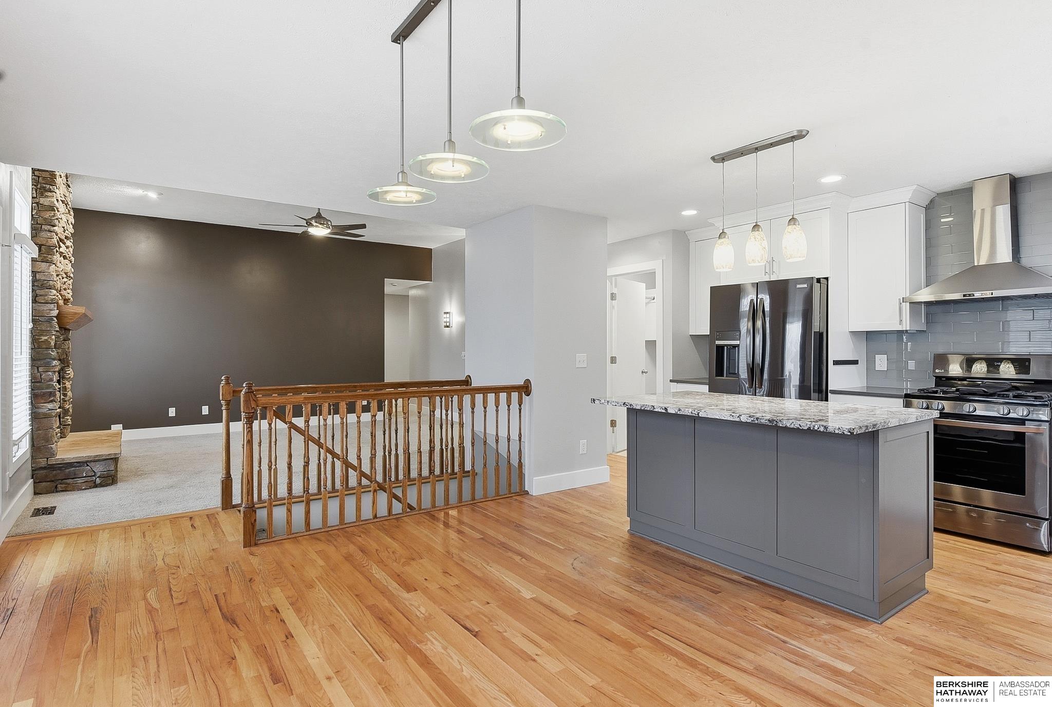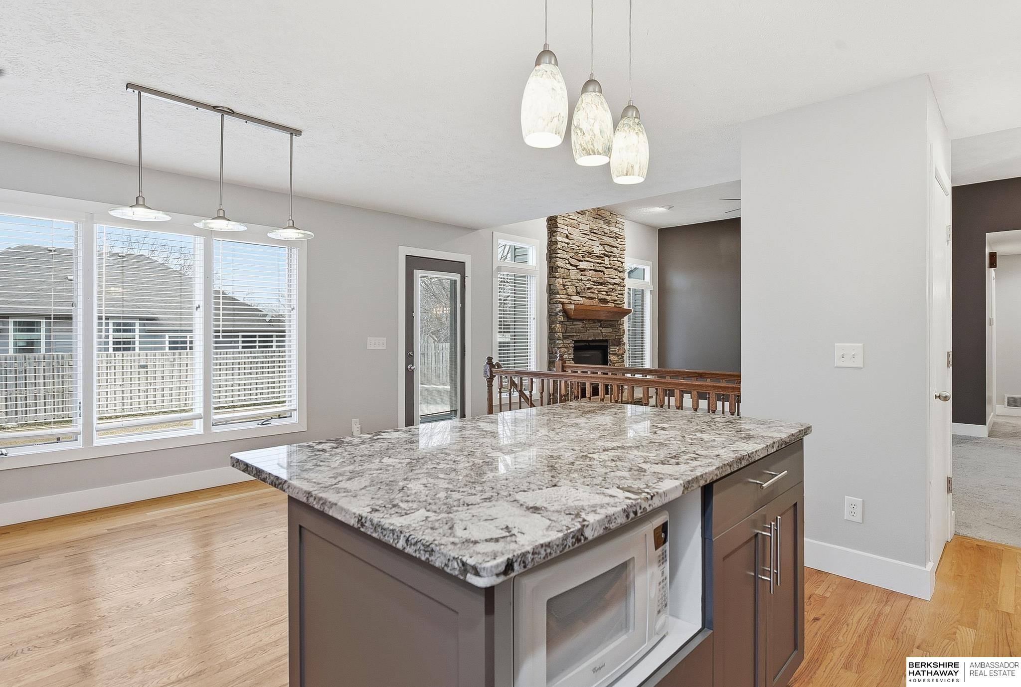 This gorgeous ranch in the Elkhorn School District is truly move-in ready, offering 3 bedrooms, 2 bathrooms, and a spacious 3-car garage. From the moment you step inside, you’ll be drawn to the stunning stone fireplace — a beautiful statement piece perfect for cozy evenings at home. The open-concept layout flows seamlessly into a fully remodeled eat-in kitchen featuring granite countertops, stainless steel appliances, hardwood floors, and a stylish tiled backsplash. The spacious primary suite offers a private en-suite bath complete with a soaking tub, dual vanities, and a walk-in closet. The expansive basement provides incredible potential for an additional bedroom and extra living space — ideal for entertaining, a home gym, or a rec room. Step outside to enjoy the fully fenced backyard with a large patio and firepit, perfect for relaxing or hosting gatherings. Located in a growing Elkhorn neighborhood just minutes from schools, shopping, and dining, this home checks all the boxes.