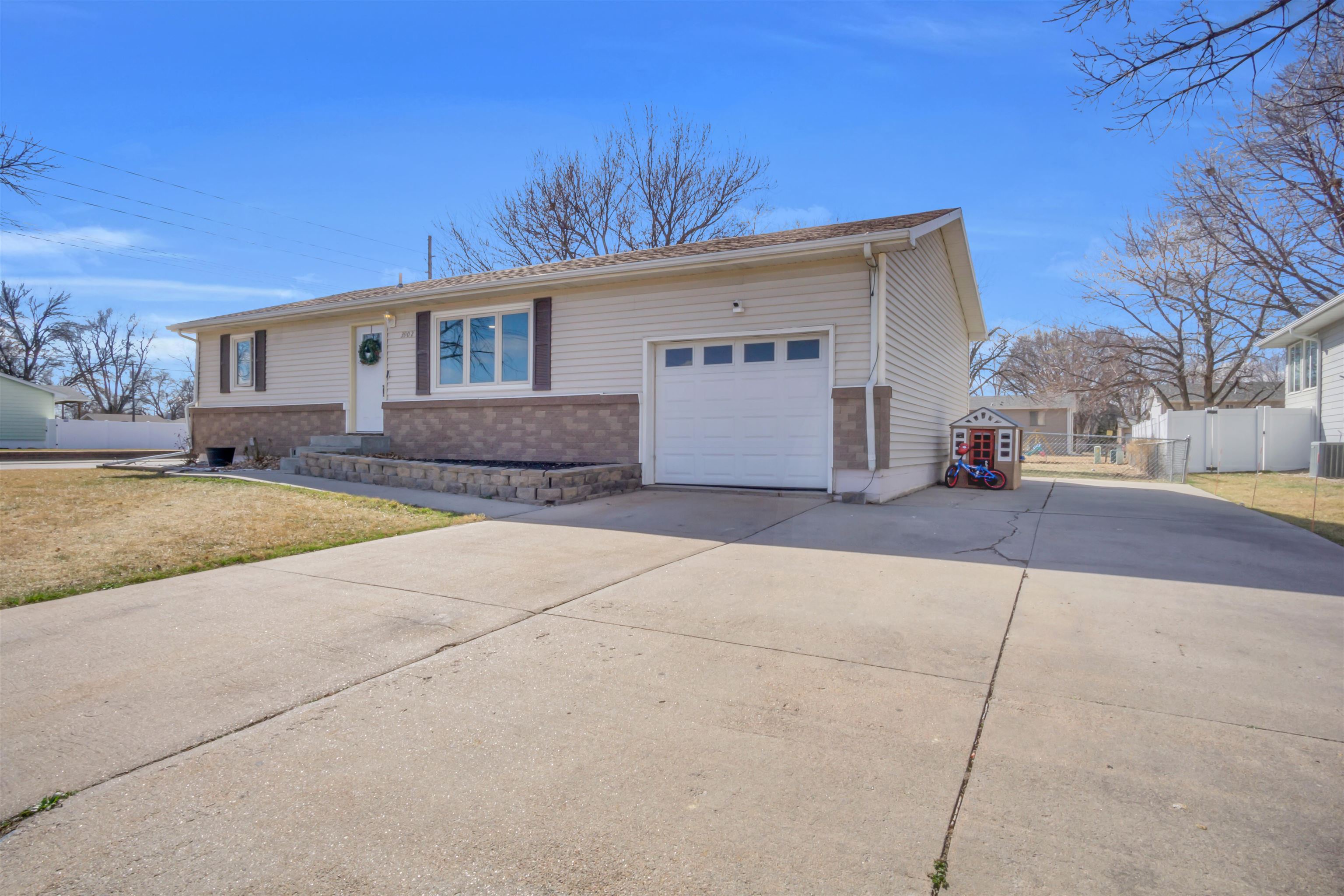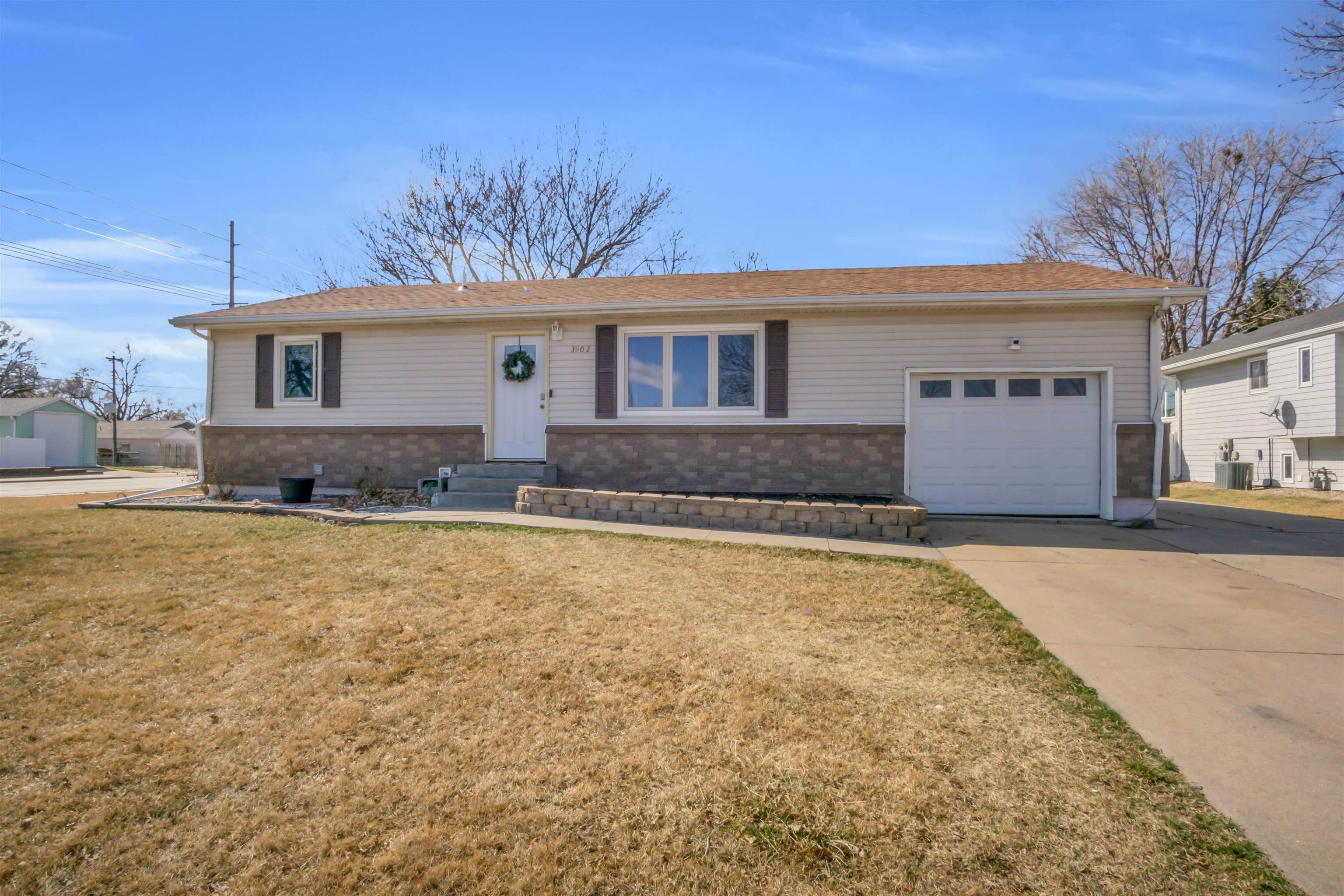 Welcome to 3902 Avenue L, a charming ranch-style home located in a cul-de-sac in northeast Kearney. Step into a spacious living room featuring updated light fixtures and a generous window that floods the space with natural light. You'll also find a dining room with a sliding door that opens to a deck, along with a fenced-in backyard for added privacy. Enjoy the kitchen, which offers plenty of counter space and includes all appliances. The main floor also includes two large bedrooms and one full bathroom. Going down to the basement, you will find a great room with plenty of space for entertainment, plus a built-in cabinet with extra counter space. Additionally, in the basement, you will find two non-conforming rooms, a full bathroom, and a laundry room. This home offers several appealing bonuses, including mature trees that will soon bloom in the spring, a storage shed, and an oversized one-car garage with ample storage space. Additionally, it features underground sprinklers in the front yard and a spacious driveway complemented by an extra concrete pad. Call today to set up your showing. OPEN HOUSE Saturday, Mar 14th, 11 am-1 pm.