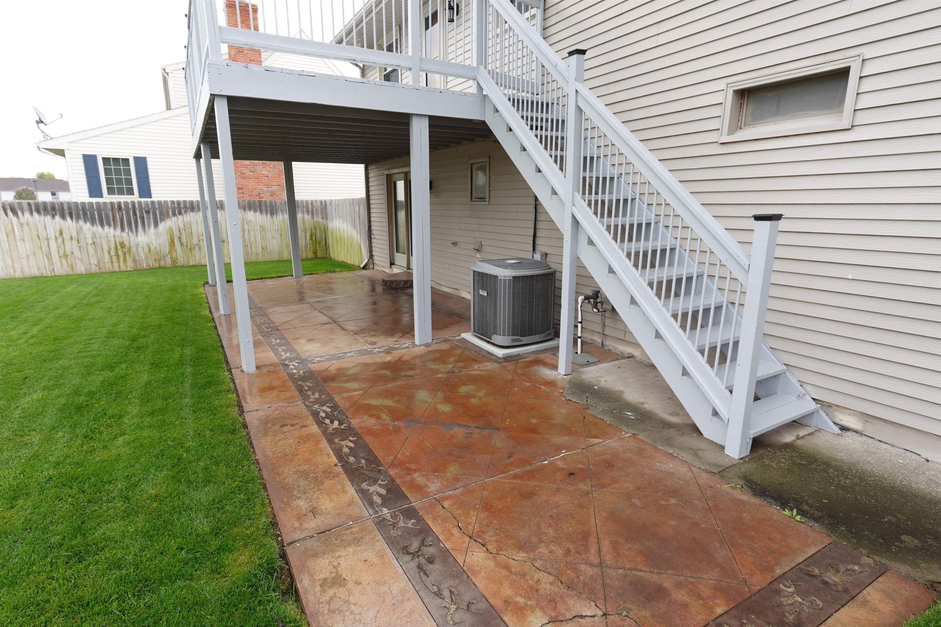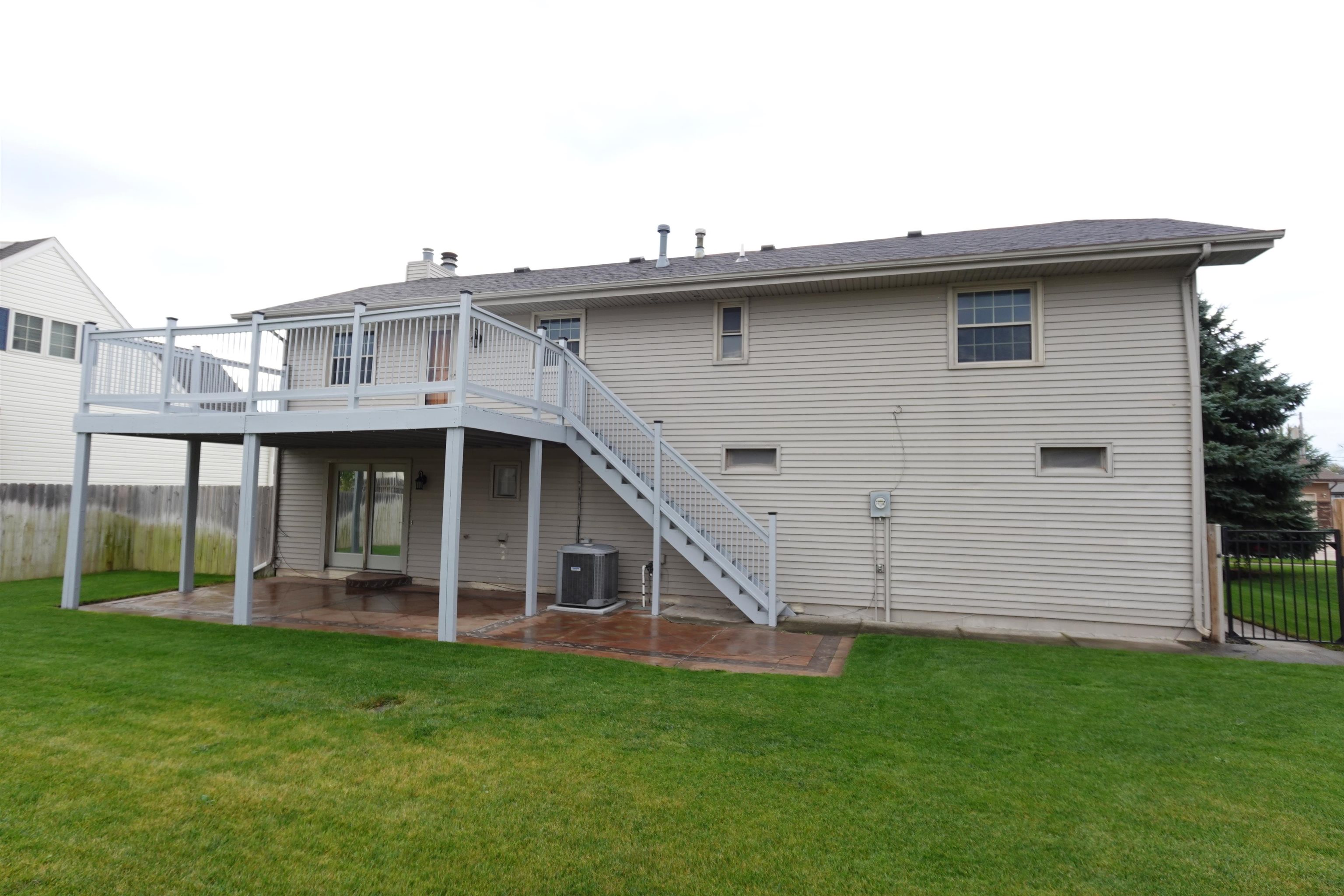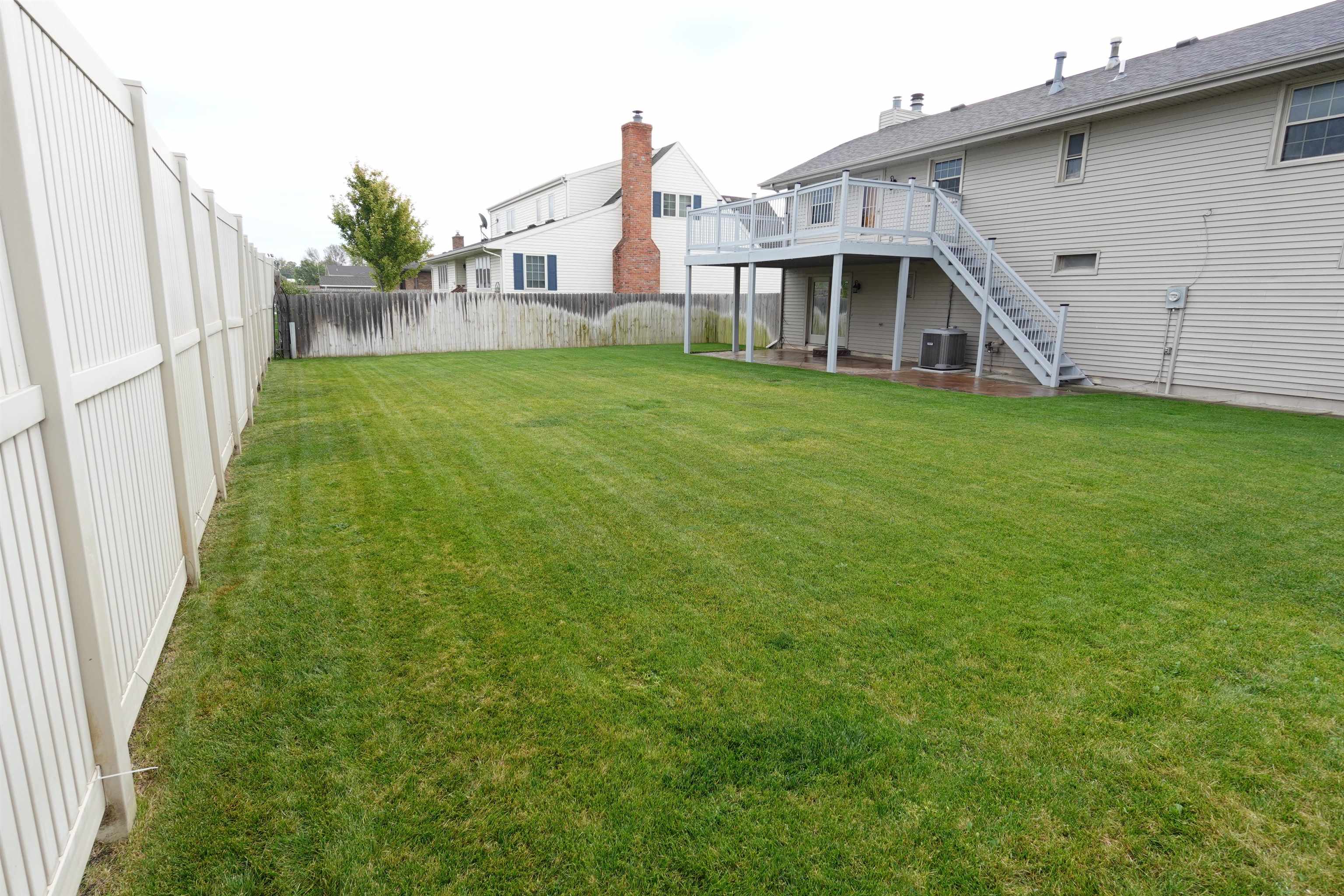 Level up to this 3 bedroom, 2 bath split foyer home featuring: newer cherry wood kitchen cabinets with solid surface countertops, stainless steel appliances & center island with bar top; impact resistance shingles installed in May 2025; brand new water softener; freshly painted deck; newer vinyl replacement windows; many solid wood doors throughout; granite vanity tops in main & primary baths; large L-shaped family room in the lower level with wood burning stove and access to the large stamped concrete patio and fully fenced backyard. China hutch in dining room and refrigerator in garage stay. Current taxes are based on a homestead exemption. **The Seller has not used the fireplace or woodstove and is unaware of their condition**