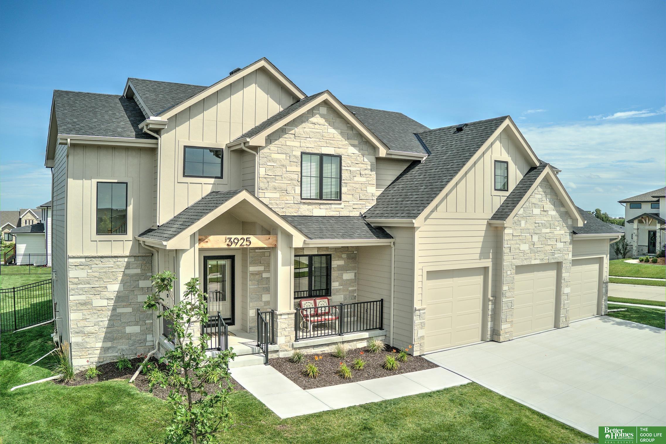 Nearly new Ramm Construction that sits up high on a large, west-facing lot! Current owners have made many improvements that aren't included in a new home: *Big deck on back *Brand new fence around large backyard *New Hunter Douglas blinds *Refrigerator & Washer/Dryer *New Front railings, etc. Plus, it's near Blue Sage Elementary--rated the #1 elementary school in Nebraska by US News & World Report! Beautiful kitchen with huge island. Eat-in kitchen area, plus a separate dining room with French doors. Lovely, big stone fireplace in family room. Cozy sunroom with additional fireplace and walk-in closet. Handy drop zone by garage and a huge hidden pantry. Upstairs, the primary suite has dual vanities, walk-in shower and soaking tub, two huge closets. Spacious shared bath between two of the bedrooms and fourth bedroom has its own bath. This home has barely been lived in. Why wait for new construction when you can make this home yours TODAY?
