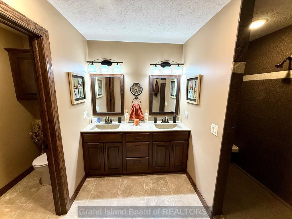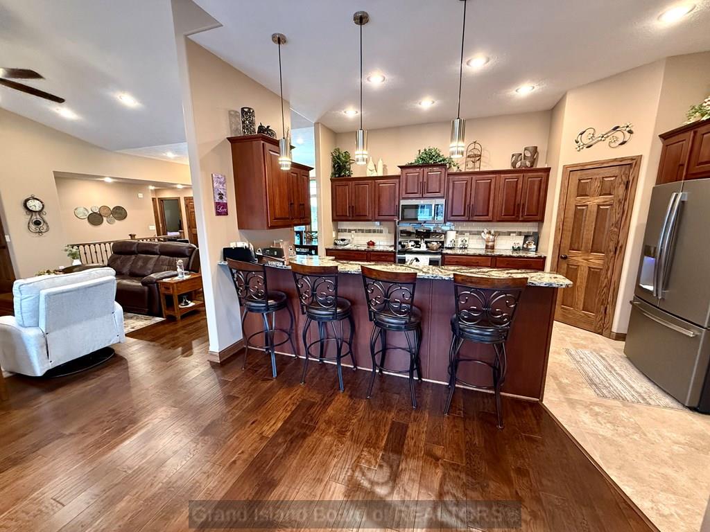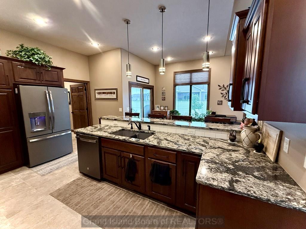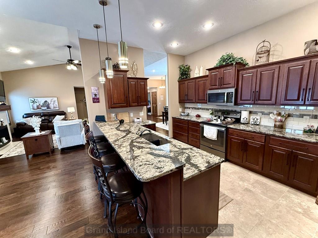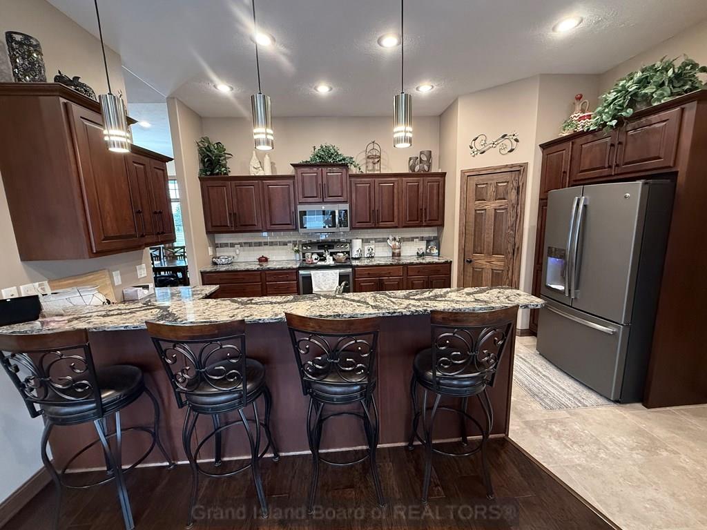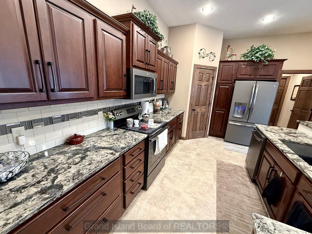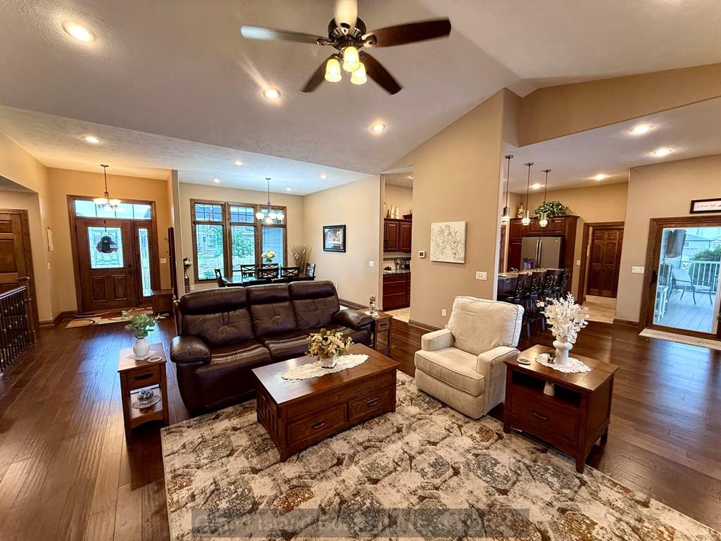 Meet your "Dream Home"! Beautifully appointed, custom-built home in a quiet cul-de-sac. Solid wood doors and trim throughout. Great kitchen with tile floor, granite tops, slate appliances, abundant cabinets, plus a pantry. Vaulted living room with a gas fireplace. Spacious primary suite and bath that offers a double vanity, huge onyx shower, private toilet room, and his-and-her walk-in closets. Come relax on the 12x24 covered deck and on the massive patio area, where you and your guests will enjoy the beautiful privacy fenced backyard and 15x40 in-ground pool. What a treat! The full basement offers 2 generously sized bedrooms, a full bath with a jetted tub/shower combination, and a large family room with daylight windows. Tons of storage.