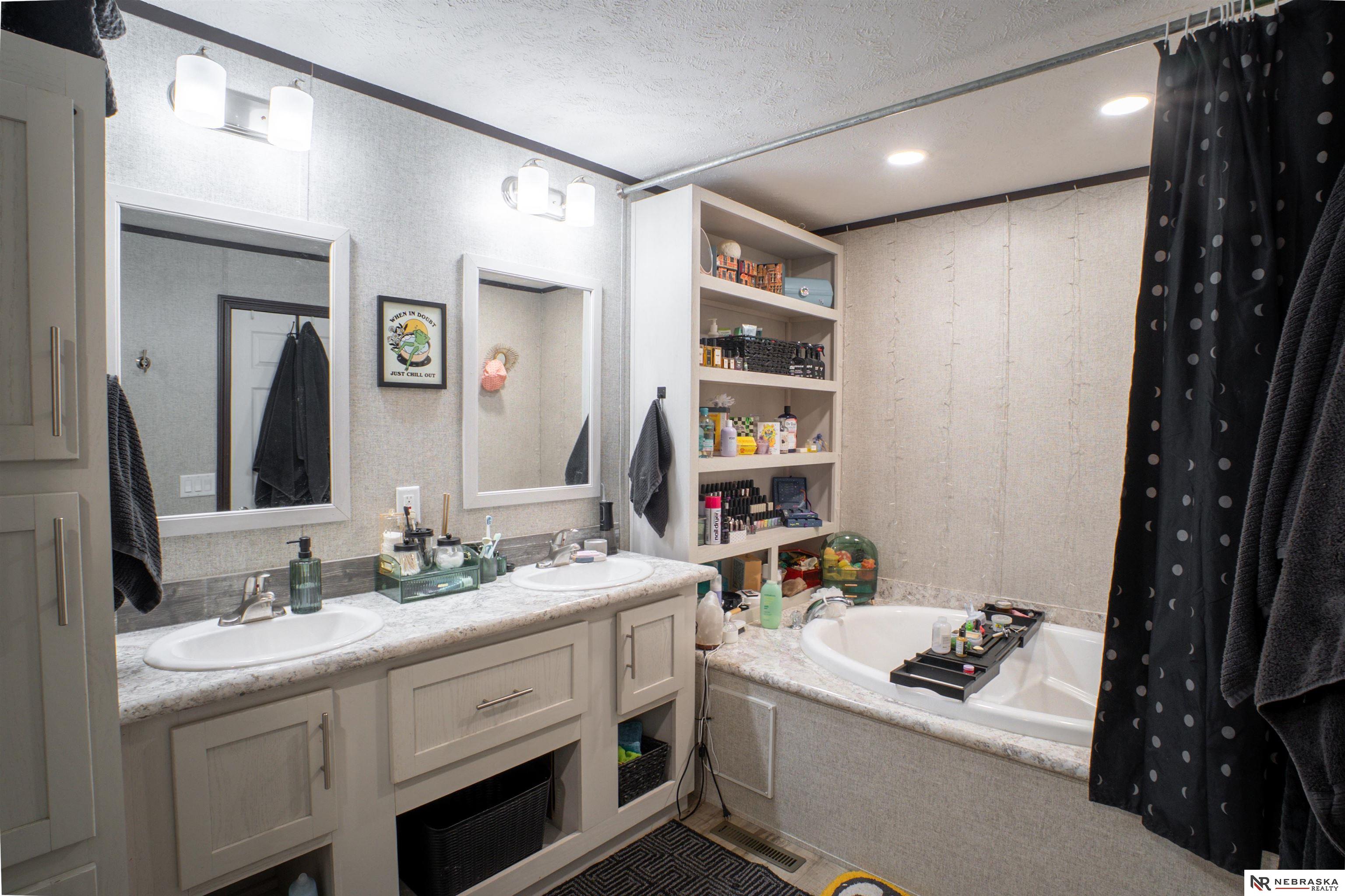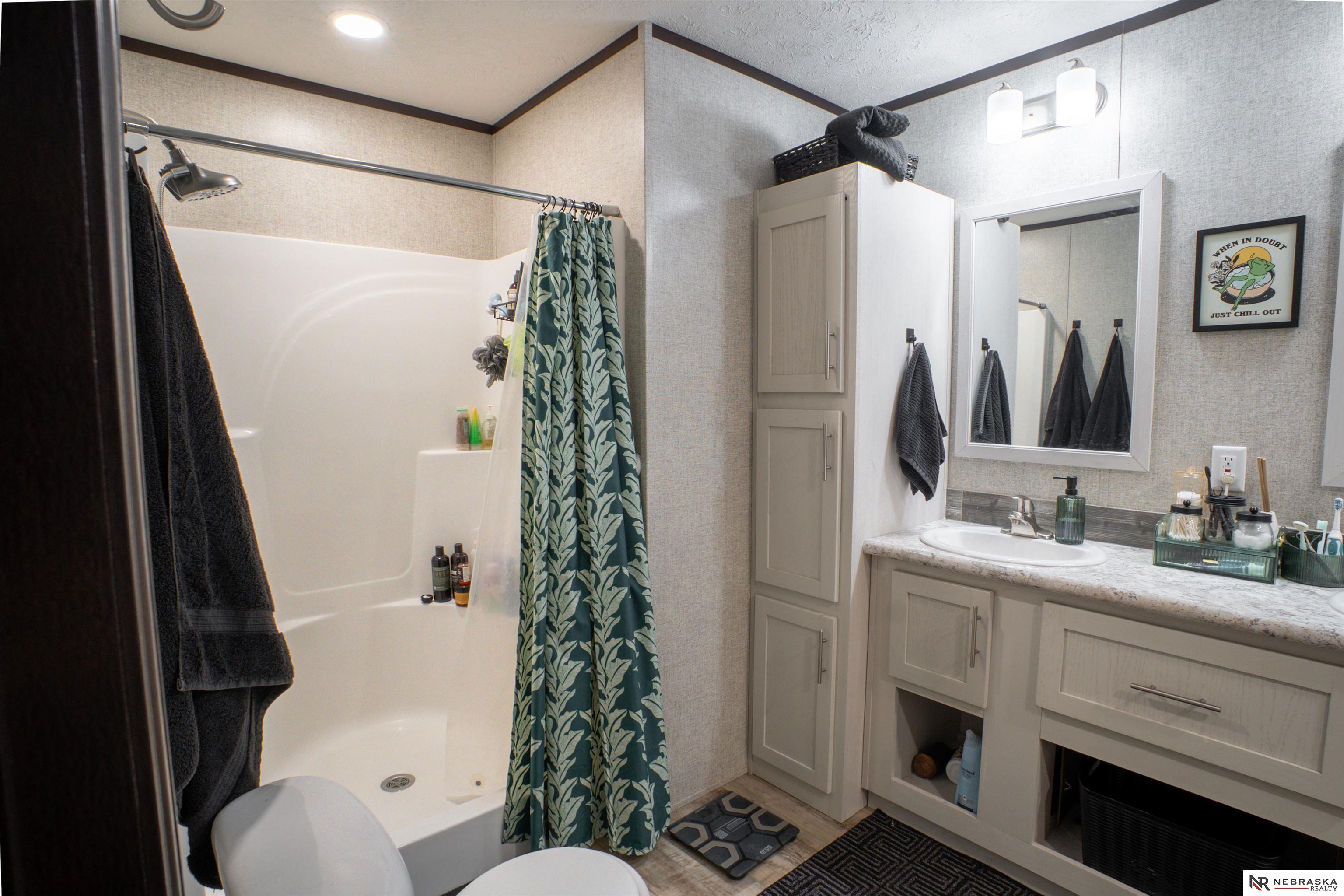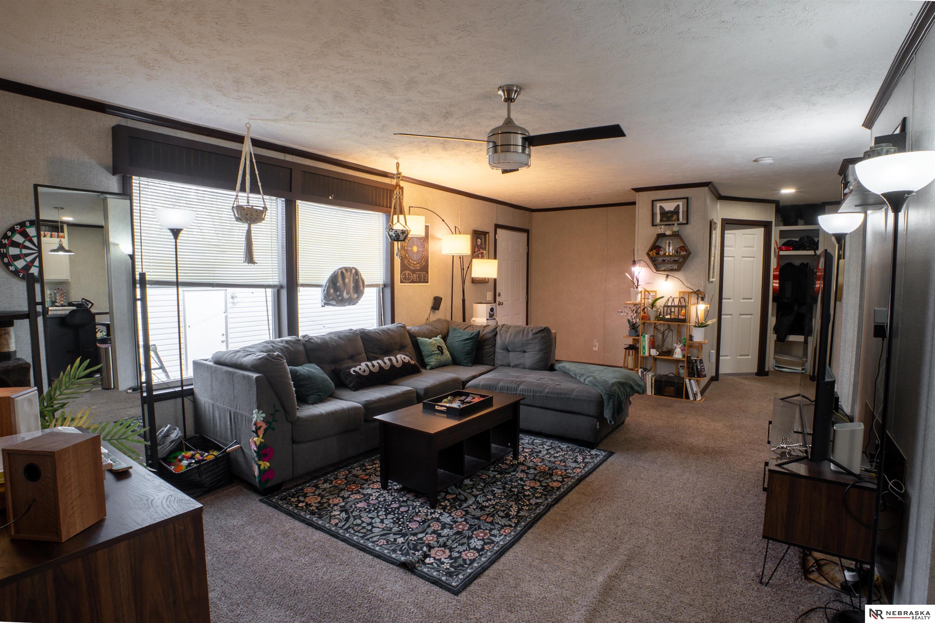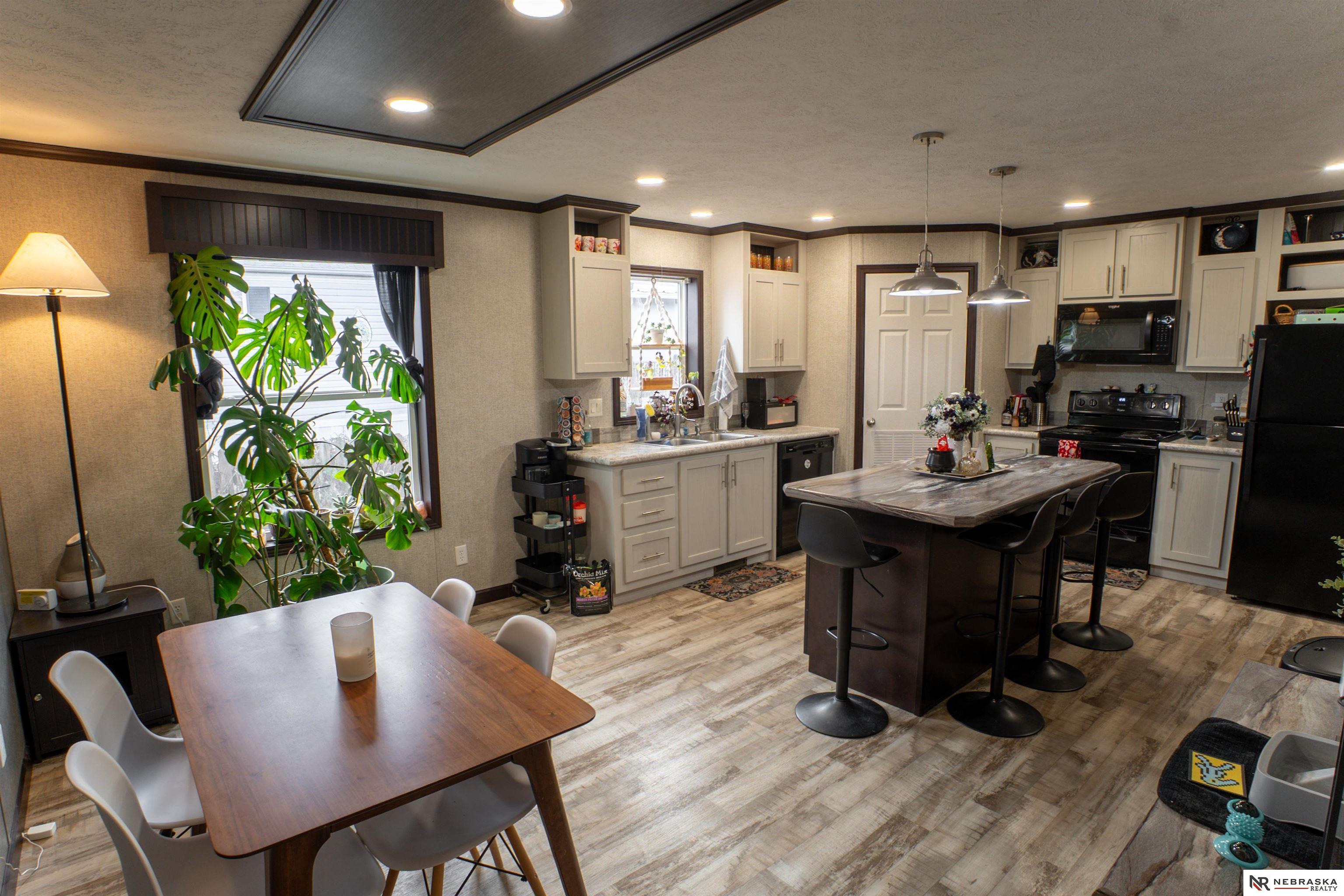 Welcome to this 2019 modern double wide home found in the Meadowbrook Estates community. Updated and move in ready, this home offers neutral colors throughout and a kitchen island with plenty of storage. The primary bathroom features a large soaking tub, lots of storage and a large shower. In the primary bedroom enjoy a walk in closet. With quick access to Zorinsky Lake, lots of trails and recreational facilities and I80. The monthly lot rent includes access to a clubhouse with a pool. Application to Meadowbrook Estates and approval is required for residence.