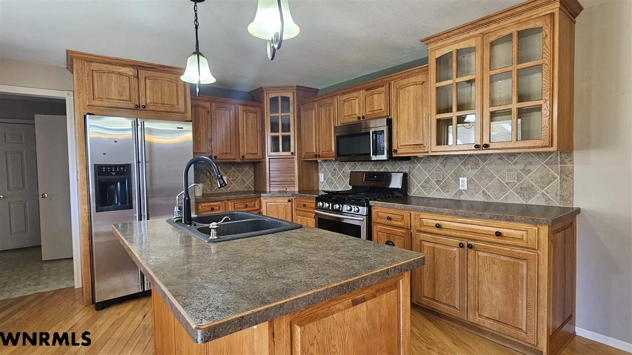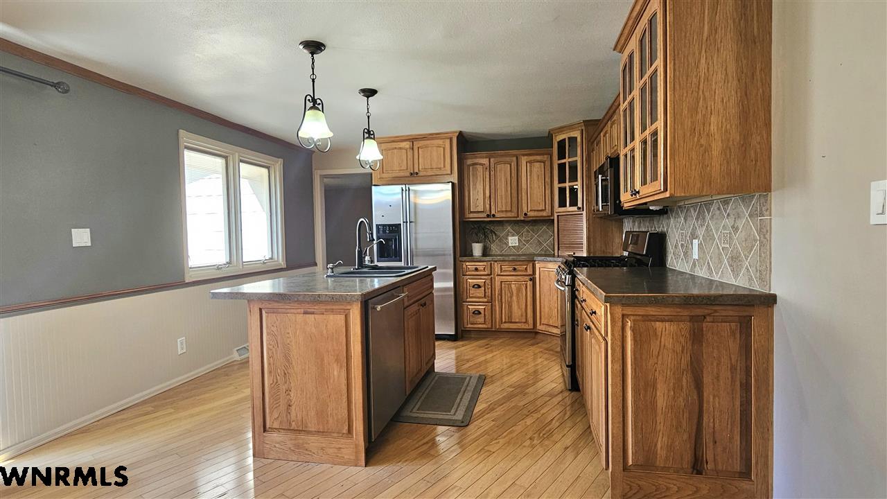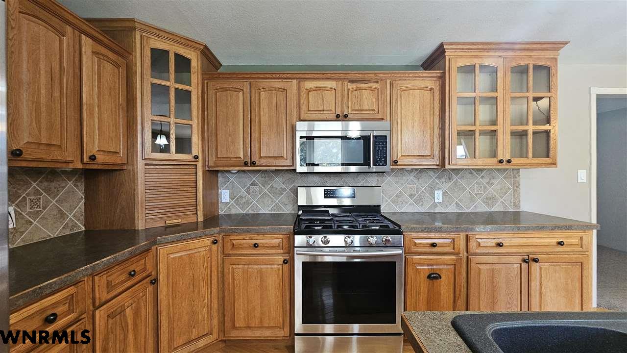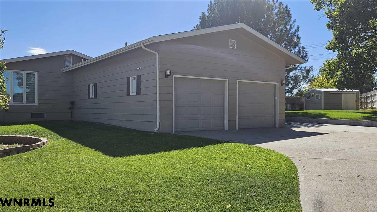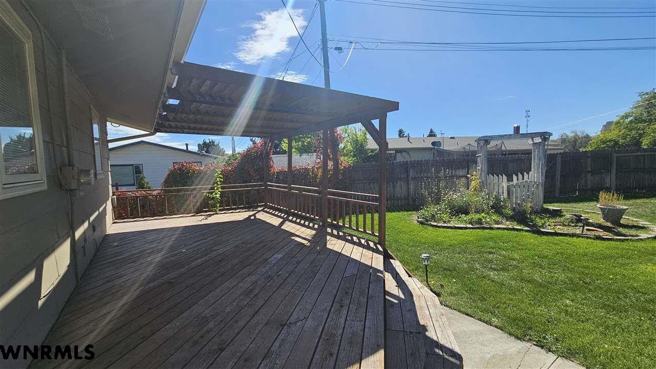 This beautiful home sits high on a spacious corner lot, offering views of the valley and the twinkle of town lights at night. Step inside to a bright and inviting main floor featuring a large living room with floor-to-ceiling windows, an updated kitchen with hickory cabinets, center island, and newer appliances. A second living room or study provides a cozy retreat with a gas fireplace. Convenient main floor laundry is located just off the kitchen and garage. The main level offers 2 comfortable bedrooms and a full bathroom with a double vanity. (Carpet to be installed in the 2nd bedroom, study and basement bedroom prior to closing) The finished basement expands your living space with a large living room, 2 additional bedrooms, and a ¾ bath. Relax or entertain on the expansive deck overlooking the beautifully landscaped backyard. Enjoy underground sprinklers, plenty of gardening space, and an additional garden shed. A 2-stall garage completes this wonderful property. New sewer line in 2023. New roof 2023.