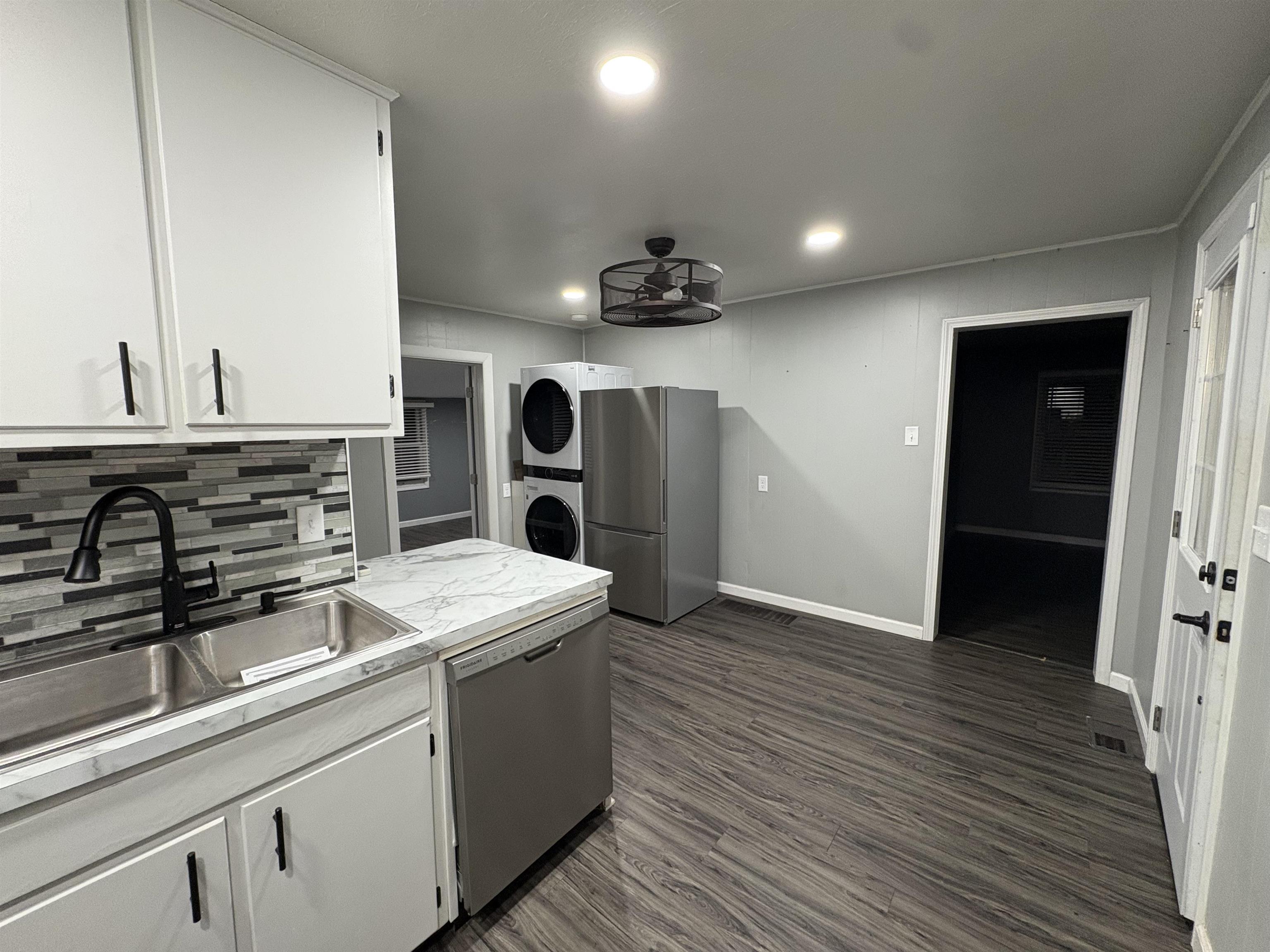 Are you ready to move? If so, this home is waiting for You! All new interior; paint, window blinds, luxury plank flooring, light fixtures & ceiling fans, kitchen appliances, washer/dryer & water heater; new vinyl siding (Dec 2025) on house/garage. New roof 1/26. Main floor Bonus room could be potential 2nd BR, tv/rec room or your in-home office with exterior exit. The laundry area is conveniently located off the kitchen (inc stack washer/dryer). Access to partial bsmt via kitchen hatch door (houses furnace/water heater). Enjoy the great close-in location with Central Park & Veterans Memorial Park nearby. So Nice & Waiting for You!