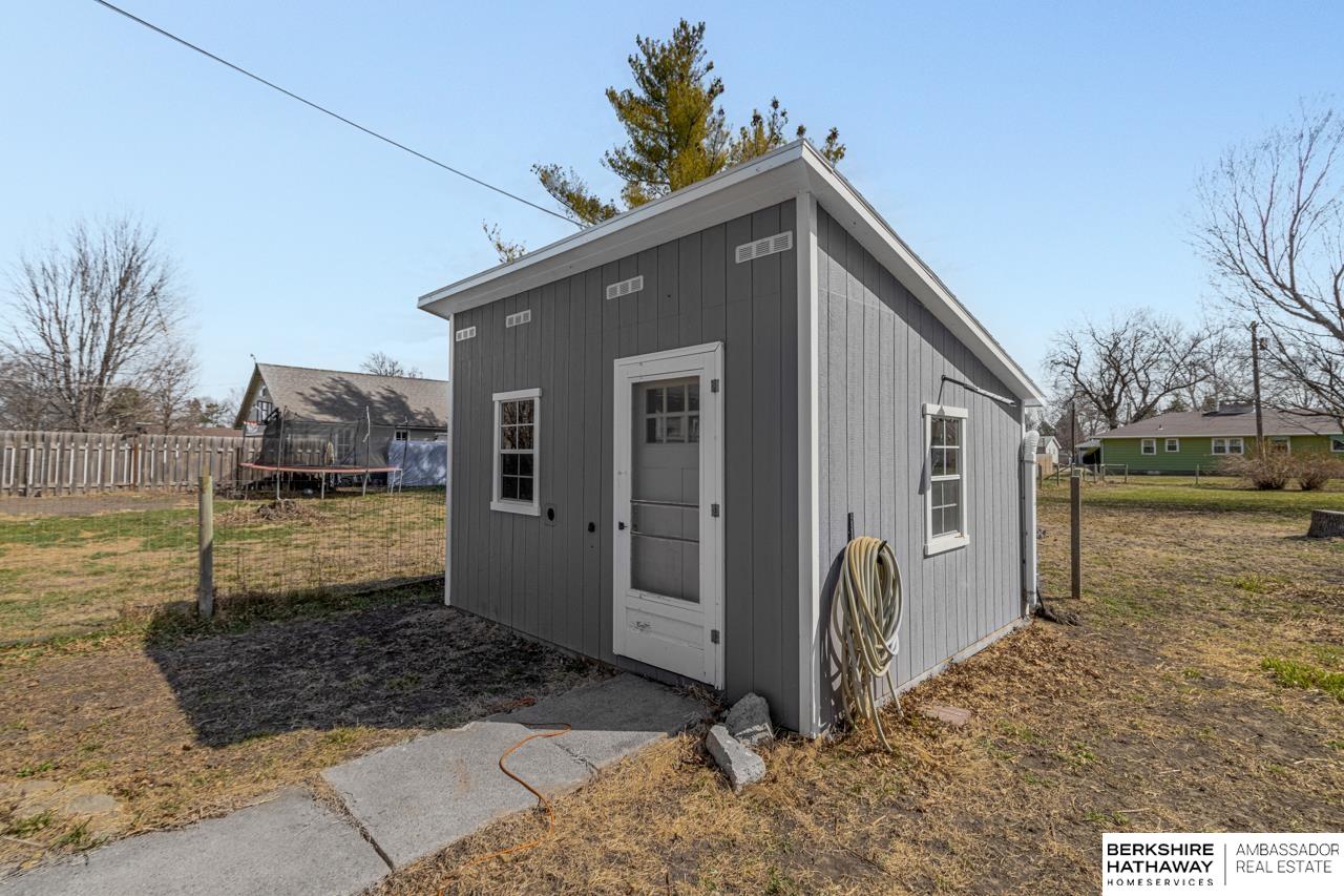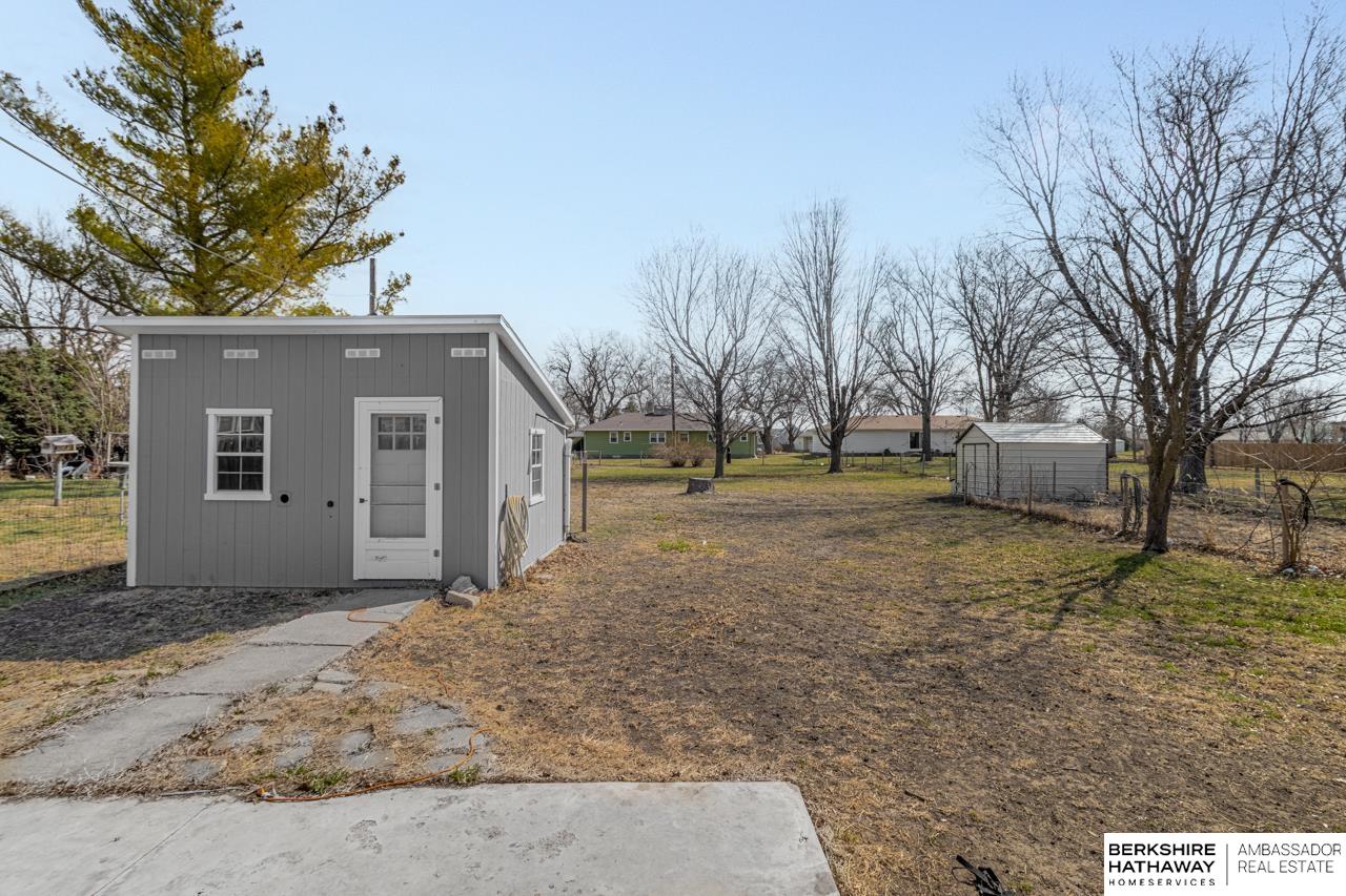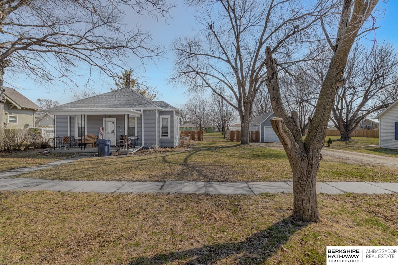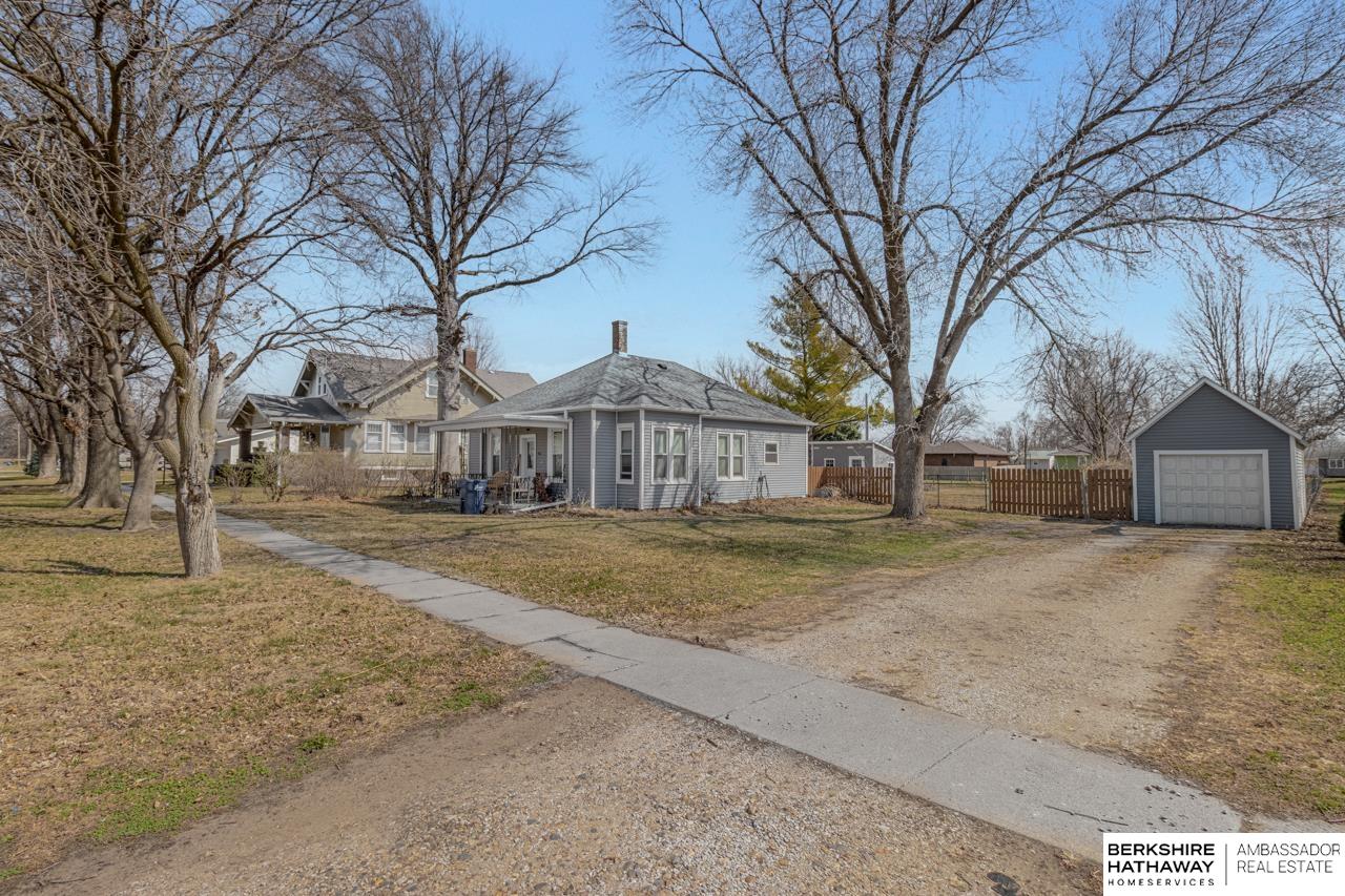 Charming & updated bungalow situated on a spacious half-acre lot in the heart of Scribner. This 2-bed, 1-bath home offers nearly 1,000 sq ft of comfortable living space with a functional, open feel, plus 9+ ft ceilings & main floor laundry for added convenience. Step inside to a bright living area that flows into the updated kitchen featuring warm wood cabinetry, tile backsplash, & modern countertops. The open layout continues into a large dining/living space with updated flooring & great natural light. Outside, enjoy a huge yard with mature trees, plenty of space to relax or entertain, along with a detached garage & two storage sheds for extra storage. Move-in ready with updates throughout, this home offers a great balance of comfort, space & small-town charm.