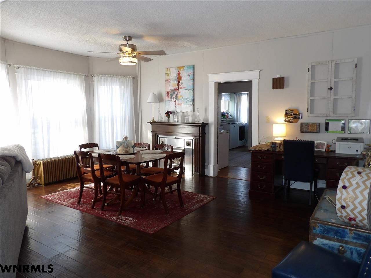 Charming four bedroom, two bath home in Morrill with tons of character! This well-maintained home has been in the same family for over 35 years! Sitting area with original French doors off the open living and dining area. Large family room on the upper level. Primary bedroom could be on the main or upstairs with a walk in closet. Main floor laundry right off the kitchen. All appliances stay with the home including the washer and dryer. Oversized two car detached garage with alley access!