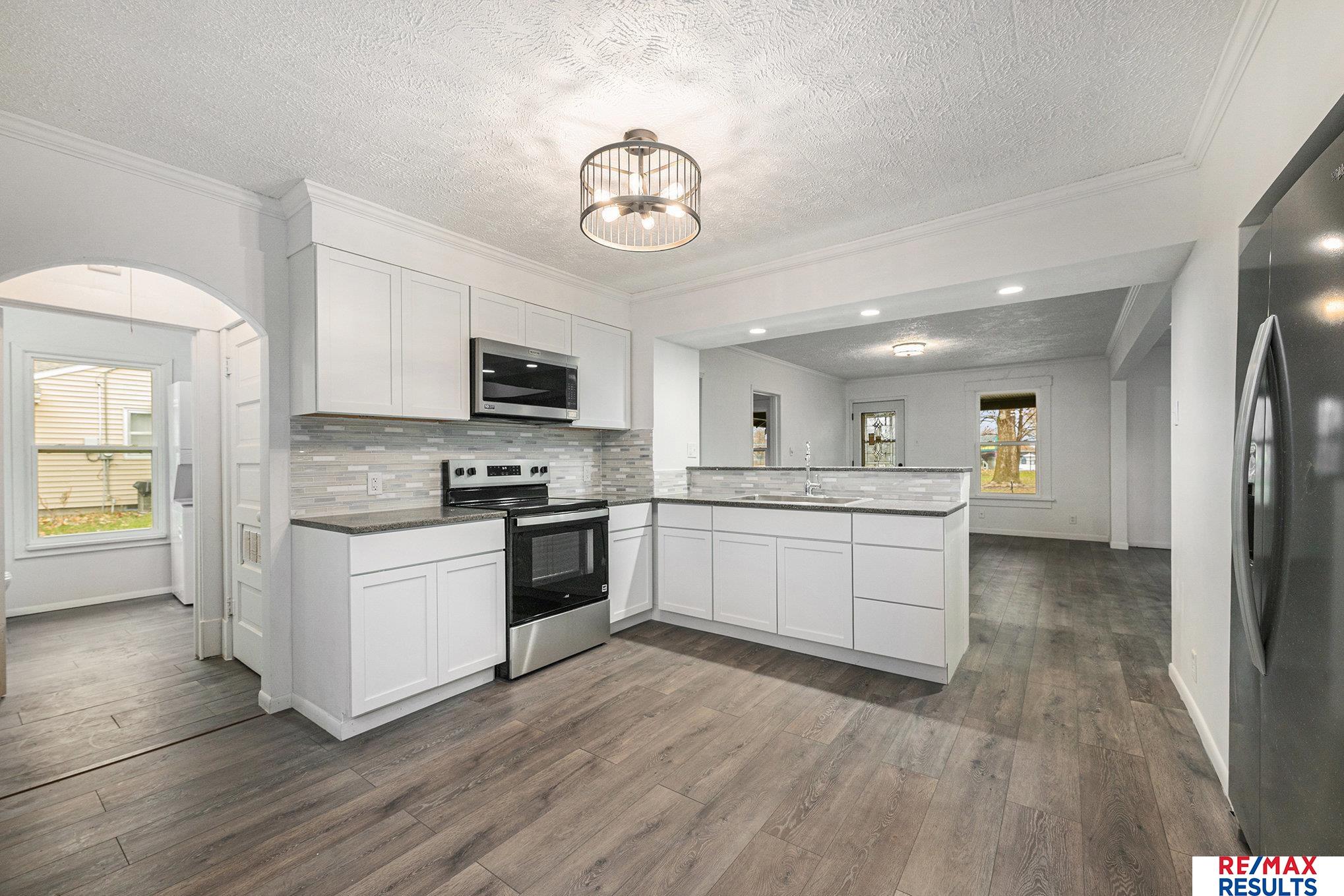 This stunning home in small-town Tekamah has been updated from top to bottom with only the finest finishes! You will appreciate all of the newer modern amenities it has to offer, such as LVP, quartz counters and updated plumbing and light fixtures throughout. Desirable open floor plan, Gourmet eat-in kitchen with stainless steel appliances, spacious living room with large windows to let the natural sunlight in. Primary bedroom with walk-in closet. New roof (house & garage), windows, exterior doors, interior/exterior paint. Oversized detached garage with attached shed. Relax and unwind on your large patio or cozy porch overlooking your perfect, park-like .24 acre/10,500 Sqft lot with mature trees. Enjoy hot summers at the swimming pool and create fond memories at the park directly across the street. This is The One, Welcome Home!