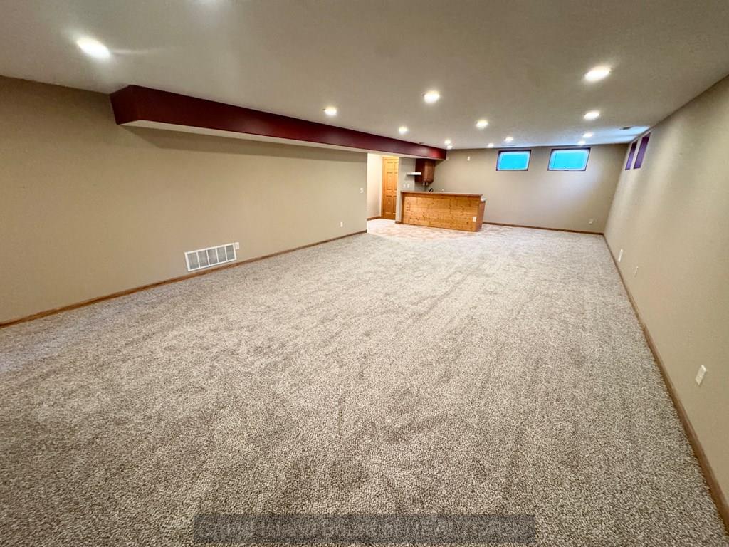 Sprawling ranch home in prime location to schools, shopping etc. Home features over 1,700 on each level, custom built home, oversized 3 car heated garage, open great room concept, huge master bedroom with heated bathroom floors, 5 bedrooms, 4 bath locations, 1/2 acre fenced-in yard, fully finished basement with wet bar, massive family room, extra storage, kitchen with wood floors and center island for gatherings. Water and sewer lines available to back part of lot for a garage/shop with plumbing.