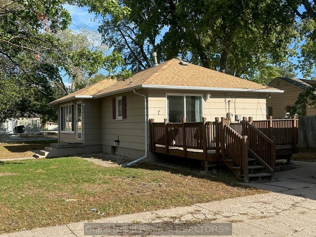 2 Bedrrom, 1 bath bungalow located on a corner lot with a walk out deck off the kitchen. Close to parks, shopping, schools, and churches. This home has 774 soft with a full basement, a 2 car detached garage with a workshop area and an in-fenced yard. Water heater was installed in 2024, and HVAC system in 2018 and newer roof. Subject to Sellers finding suitable housing