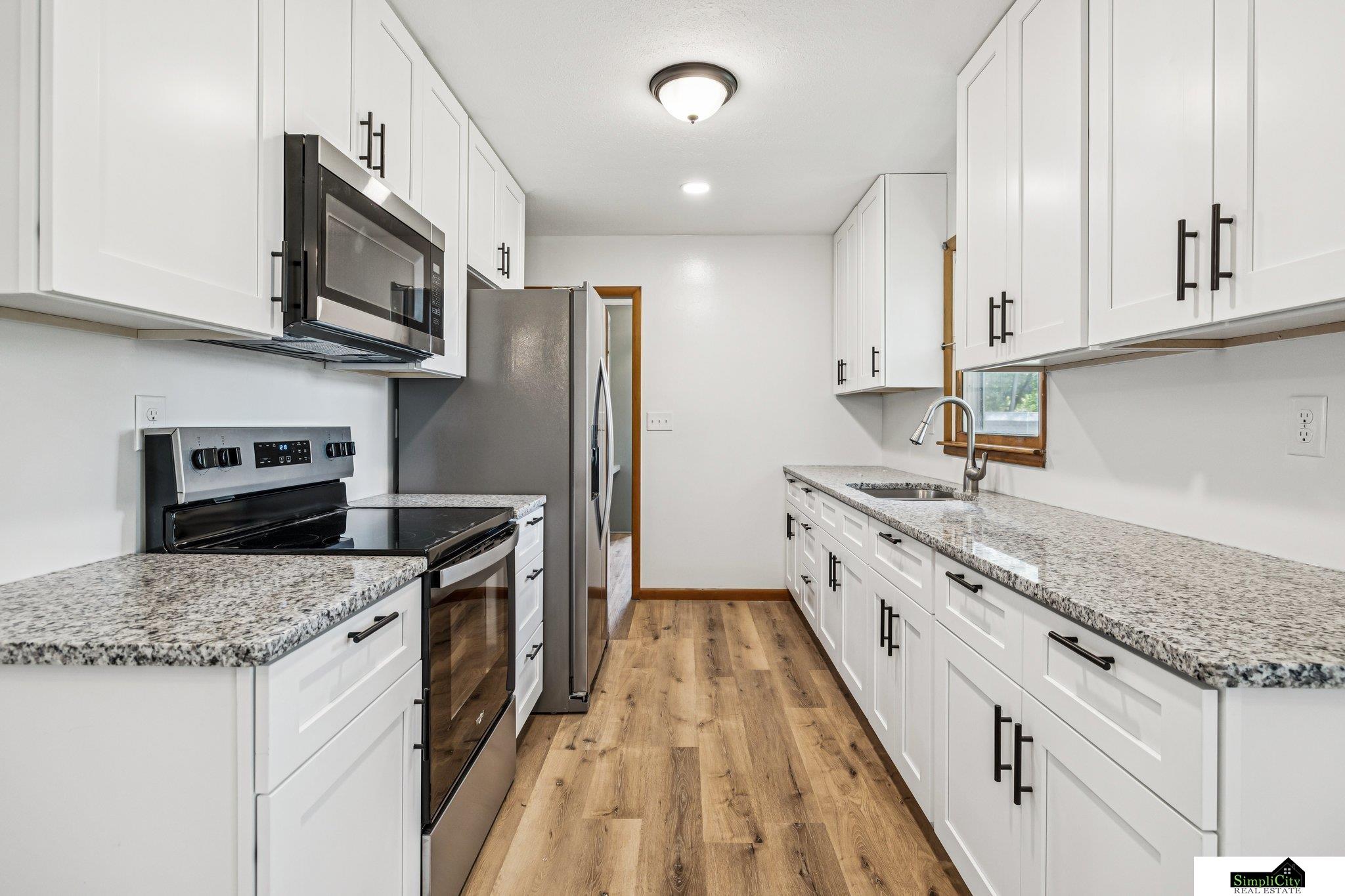 Charming ranch in Tecumseh with great bones and solid structure—owned by just one family prior to recent remodel! Located only a block from Johnson County Hospital, making it great for travel nurses or rental potential. Main level offers a spacious living room filled with natural light, 2 bedrooms, full bath with double vanity, main-floor laundry, and attached 1-car garage. Lower level features 2 additional bedrooms, bonus room, full kitchenette, laundry hook-up, ¾ bath, and secure walkout door—perfect for guest suite or apartment-style living! All new appliances (washer & dryer included)! New concrete drive, sidewalks, and back patio complete this move-in ready home!