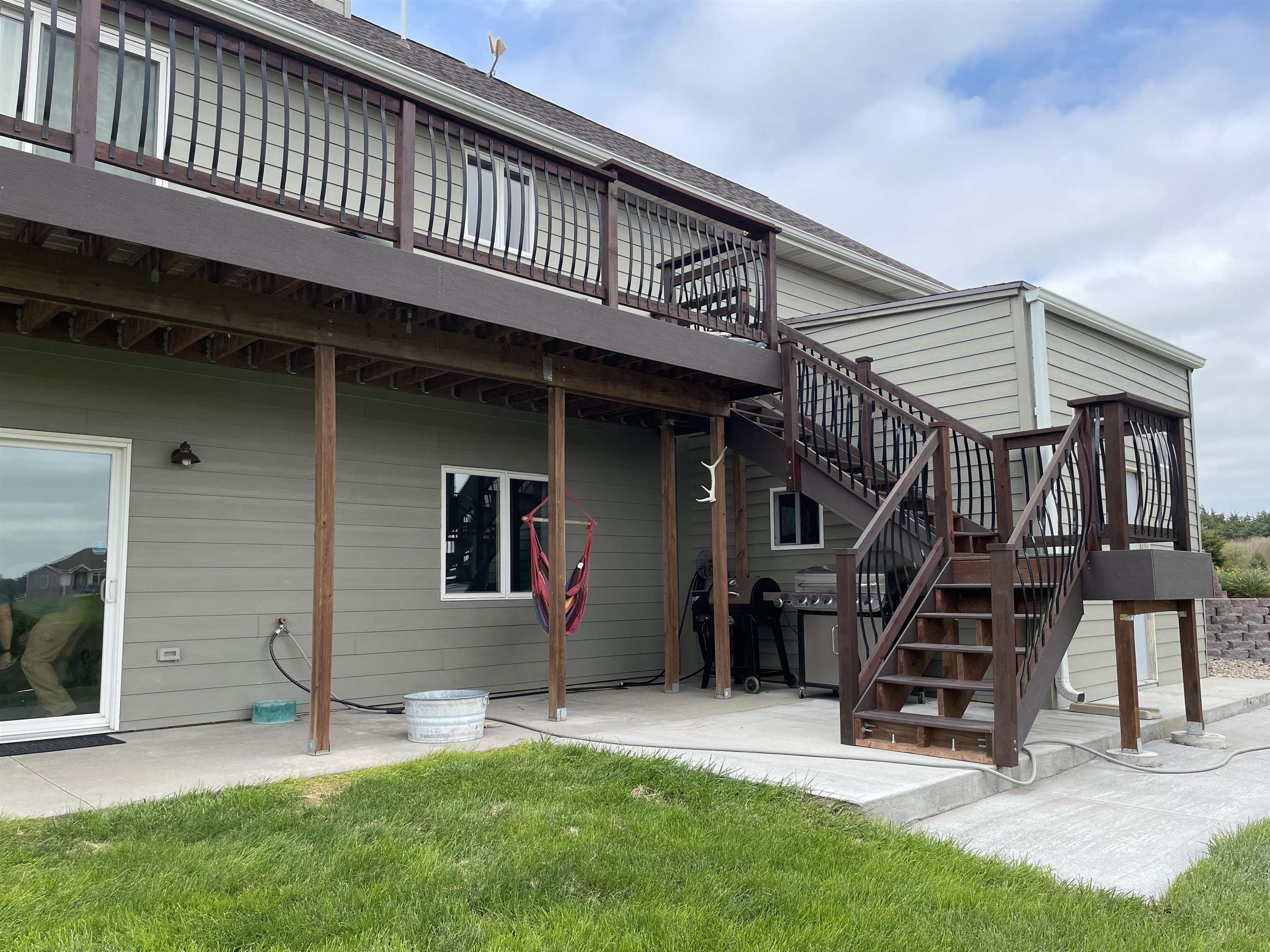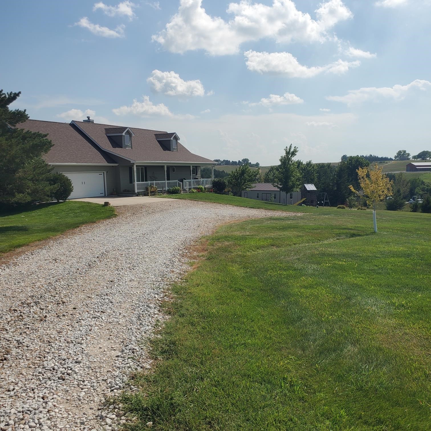 Country living at it's best. This home located on 7+ acres is located just minutes from Kearney. The Very open Concept with hardwood floors only adds to it elegance. Offering marble countertops, soft close doors and drawers. All stainless steel appliances. Large primary bedroom with two walk in closets, and double sinks in the bath. The large bedrooms in lower level also have large double closets. Laundry hookups are also available right off the kitchen. The deck, stairs and patio shed are all newer. The attached garage is insulated and drywalled. Also, there is a 18 X 22 detached garage that is insulated with a overhang for outdoor entertainment. Plus, a Larger additional steel building for all those misc. items. Home is all electric except the fireplace is gas. Roof and exterior paint were replaced in 2020. The riding lawn mower stays. The price also includes Lot 2, to be sold together.