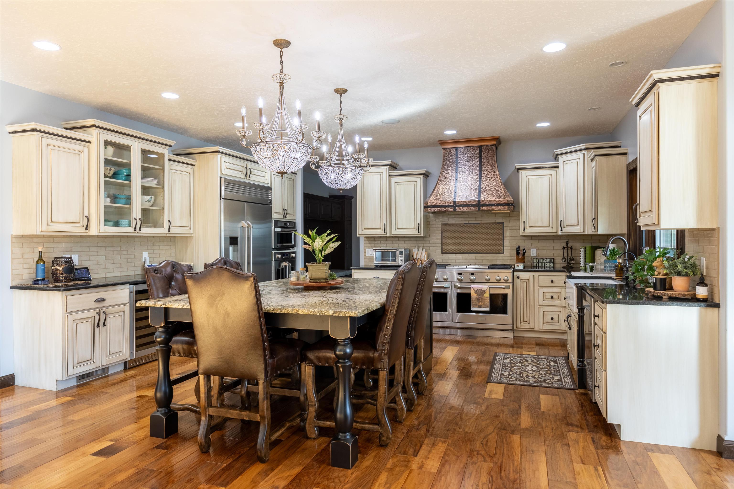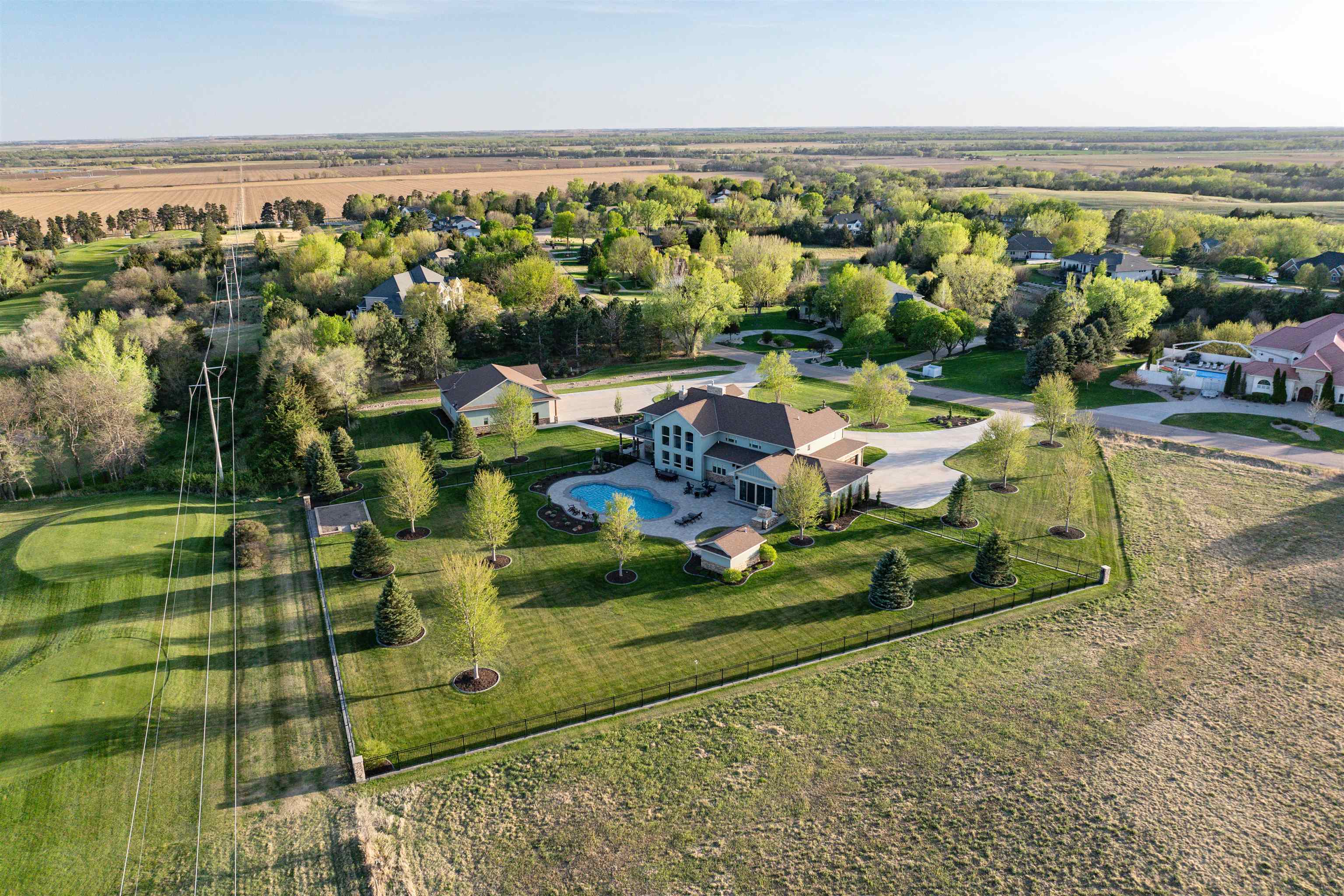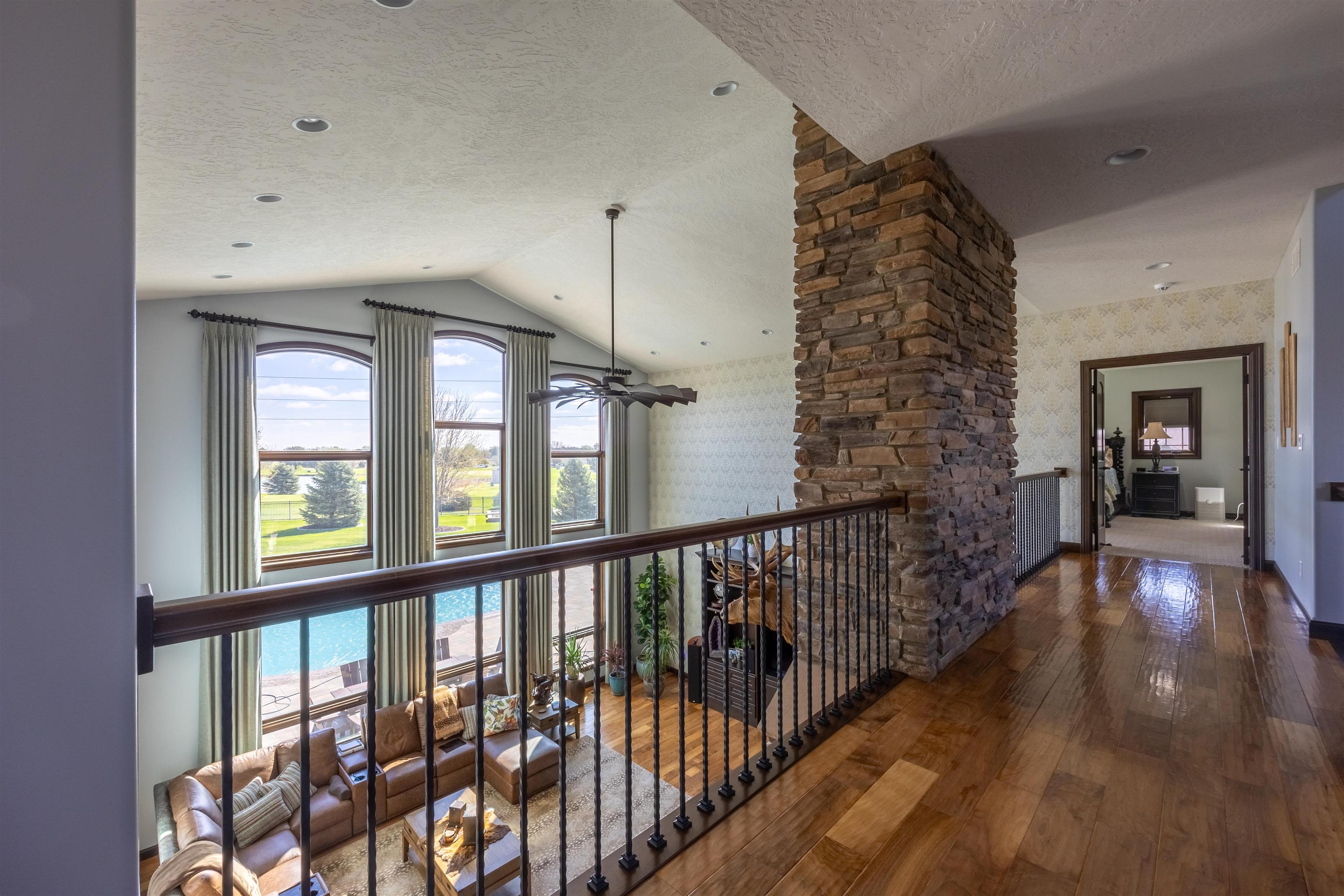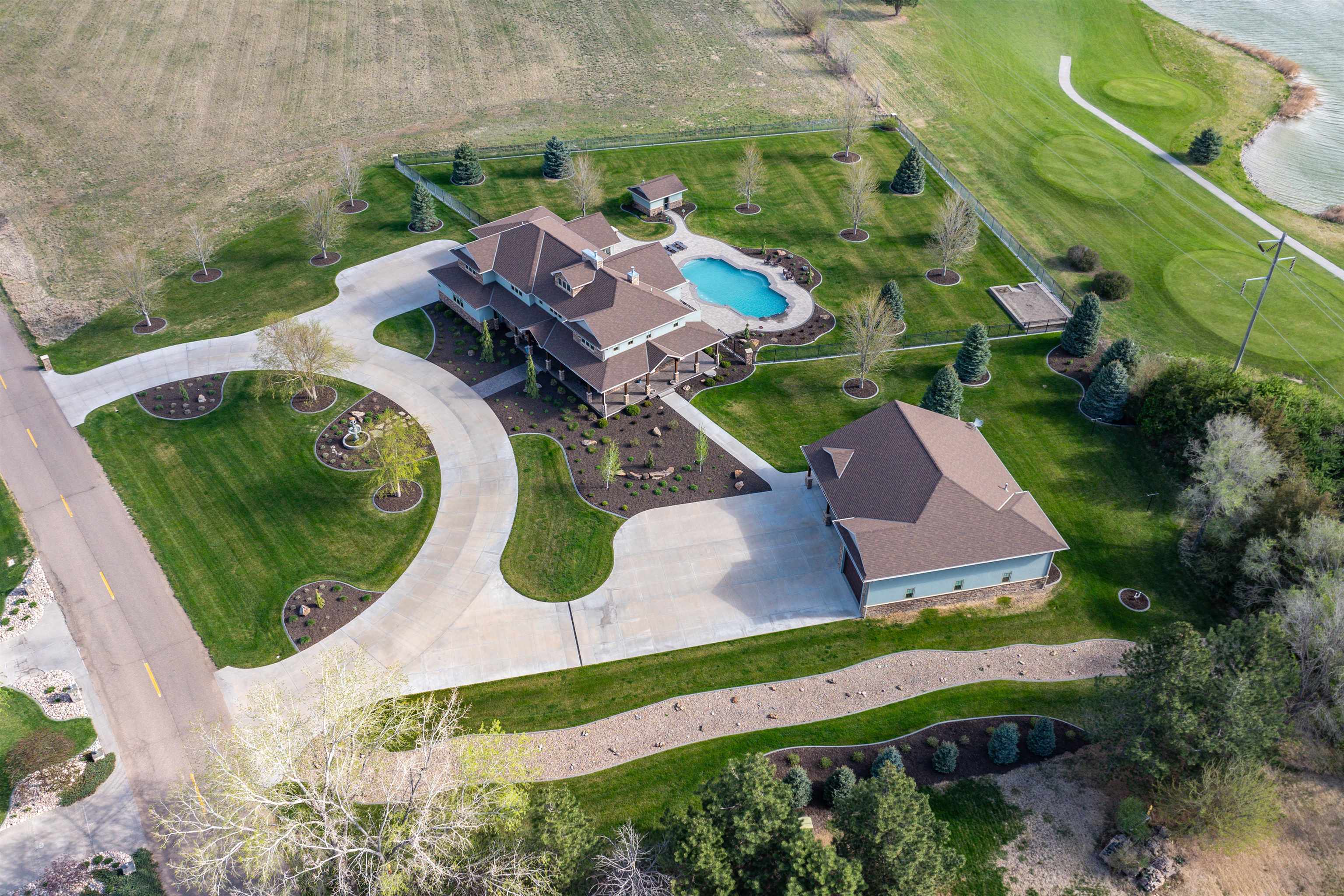 One of a kind home in Equestrian Hills with direct access to Meadowlark Hills golf course. This property has been meticulously cared for and thoughtfully designed with many luxurious features including a wrap around covered front porch and an enclosed back porch with new kitchen. Inside, the kitchen is a show stopper with its large island, copper hood and its open access to the nook, formal dining room and living room. The theater room with its snack bar, the game room with a wet bar and a newly remodeled master bathroom all add this homes' list of great features. This home has a large in-ground swimming pool with new paver pool deck (Graczyk Landscaping) and a wood fired pizza oven. There is a raised bed for gardening all on a 2.28 acre lot on a paved road. The 50x52 workshop has full concrete floor, electricity and is fully insulated with gas heat. There are 3 overhead doors, one of which is oversized at 16' perfect for a motorhome or RV.