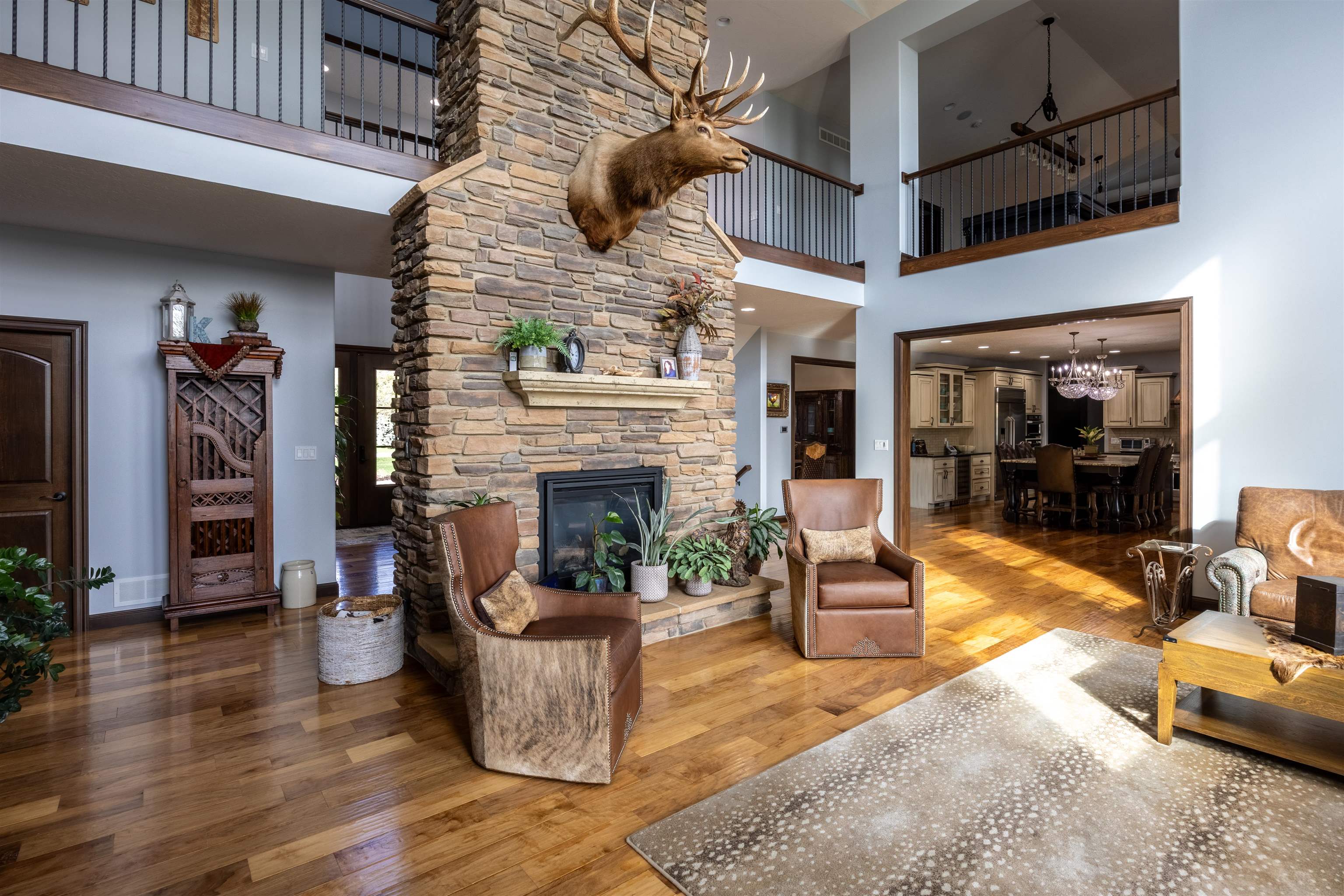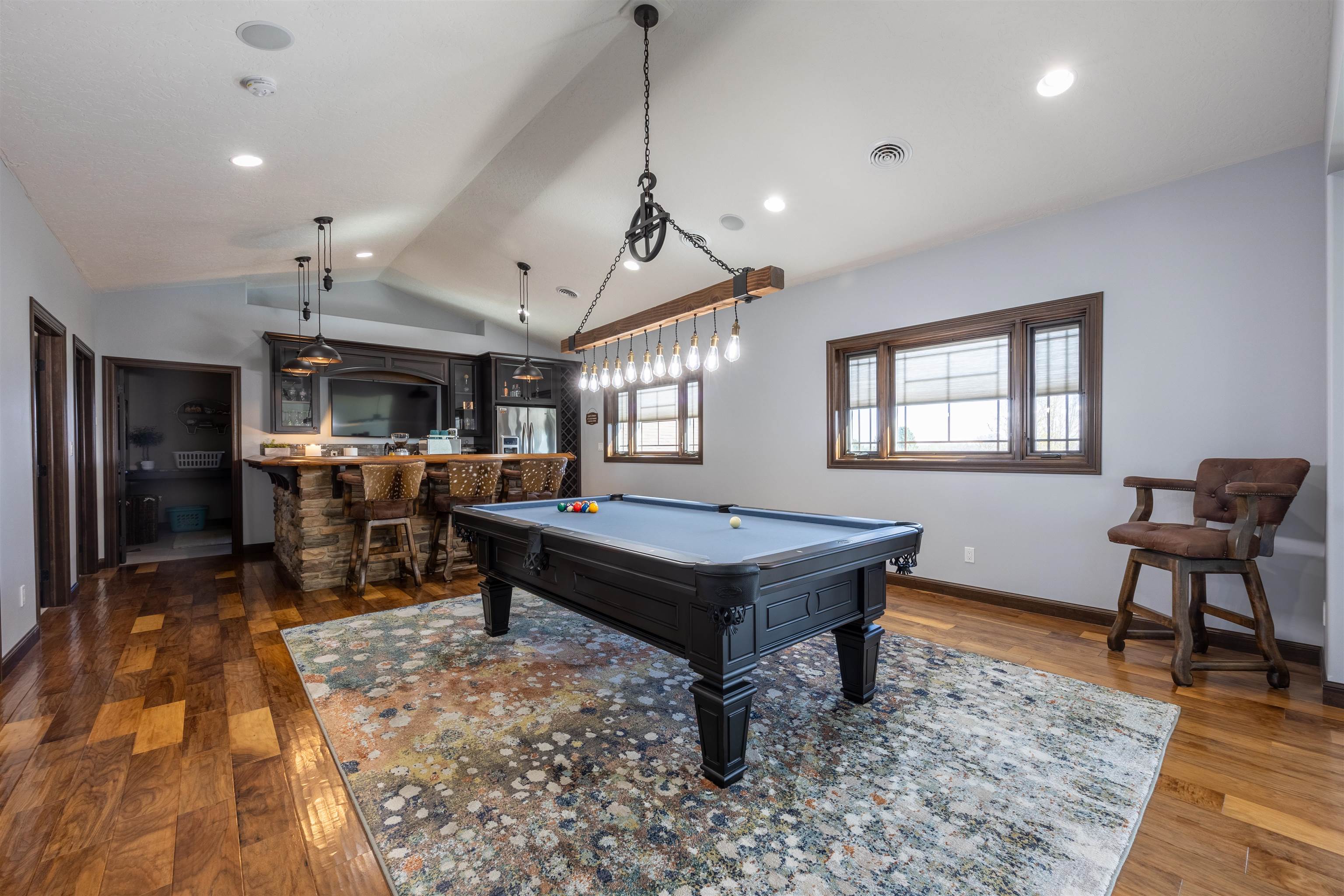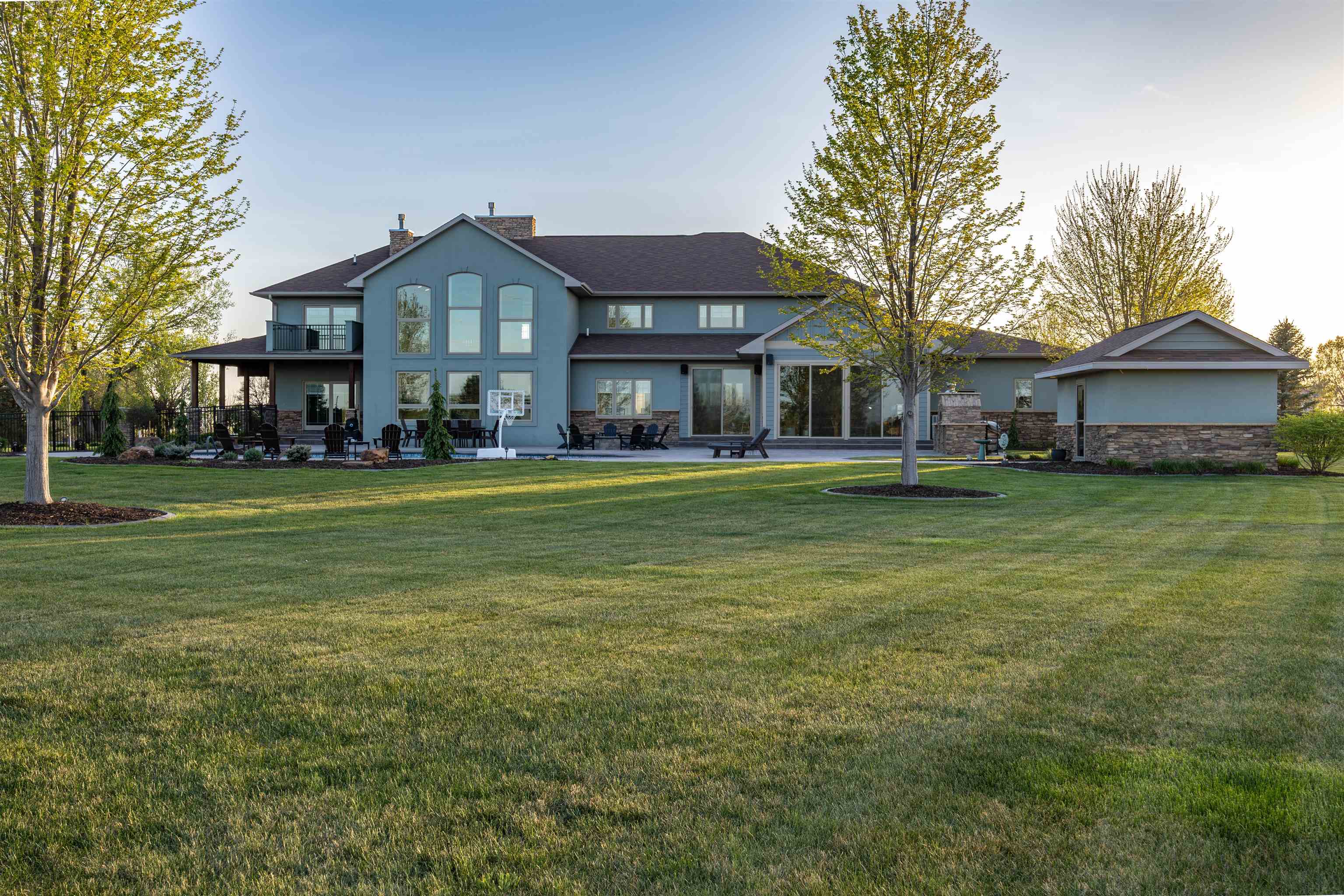 One of a kind home in Equestrian Hills with direct access to Meadowlark Hills golf course. This property has been meticulously cared for and thoughtfully designed with many luxurious features including a wrap around covered front porch and an enclosed back porch with new kitchen. Inside, the kitchen is a show stopper with its large island, copper hood and its open access to the nook, formal dining room and living room. The theater room with its snack bar, the game room with a wet bar and a newly remodeled master bathroom all add this homes' list of great features. This home has a large in-ground swimming pool with new paver pool deck (Graczyk Landscaping) and a wood fired pizza oven. There is a raised bed for gardening all on a 2.28 acre lot on a paved road. The 50x52 workshop has full concrete floor, electricity and is fully insulated with gas heat. There are 3 overhead doors, one of which is oversized at 16' perfect for a motorhome or RV.