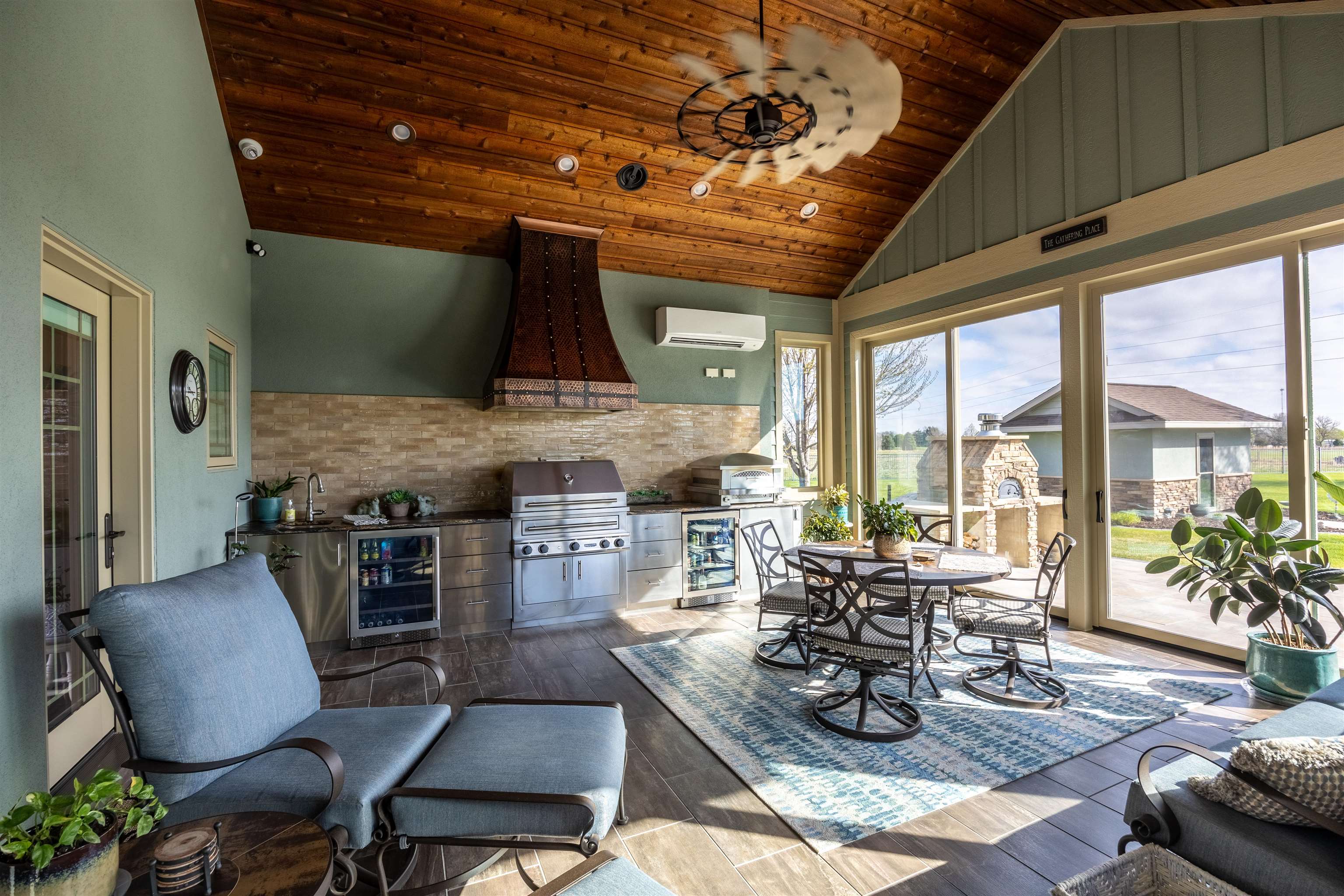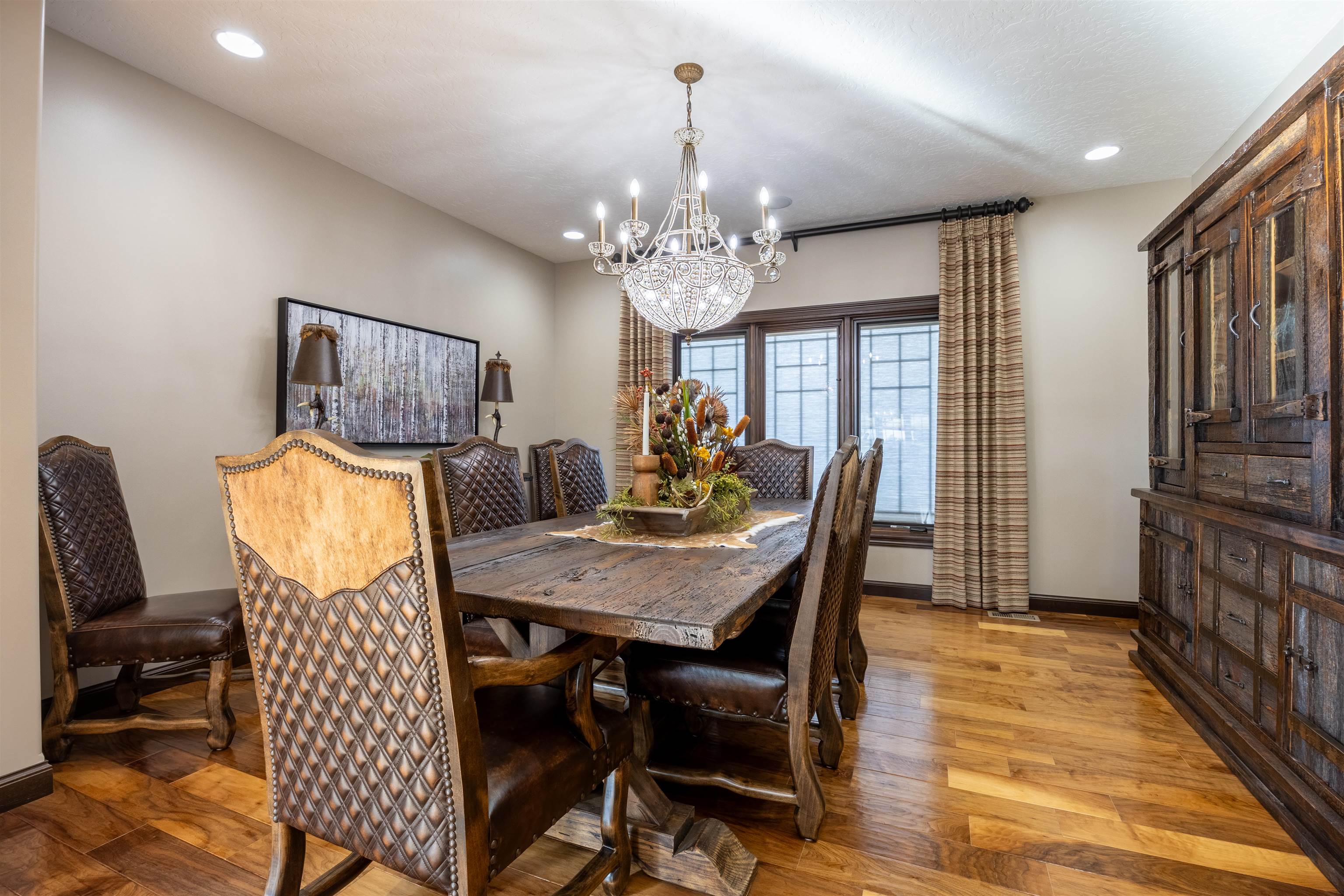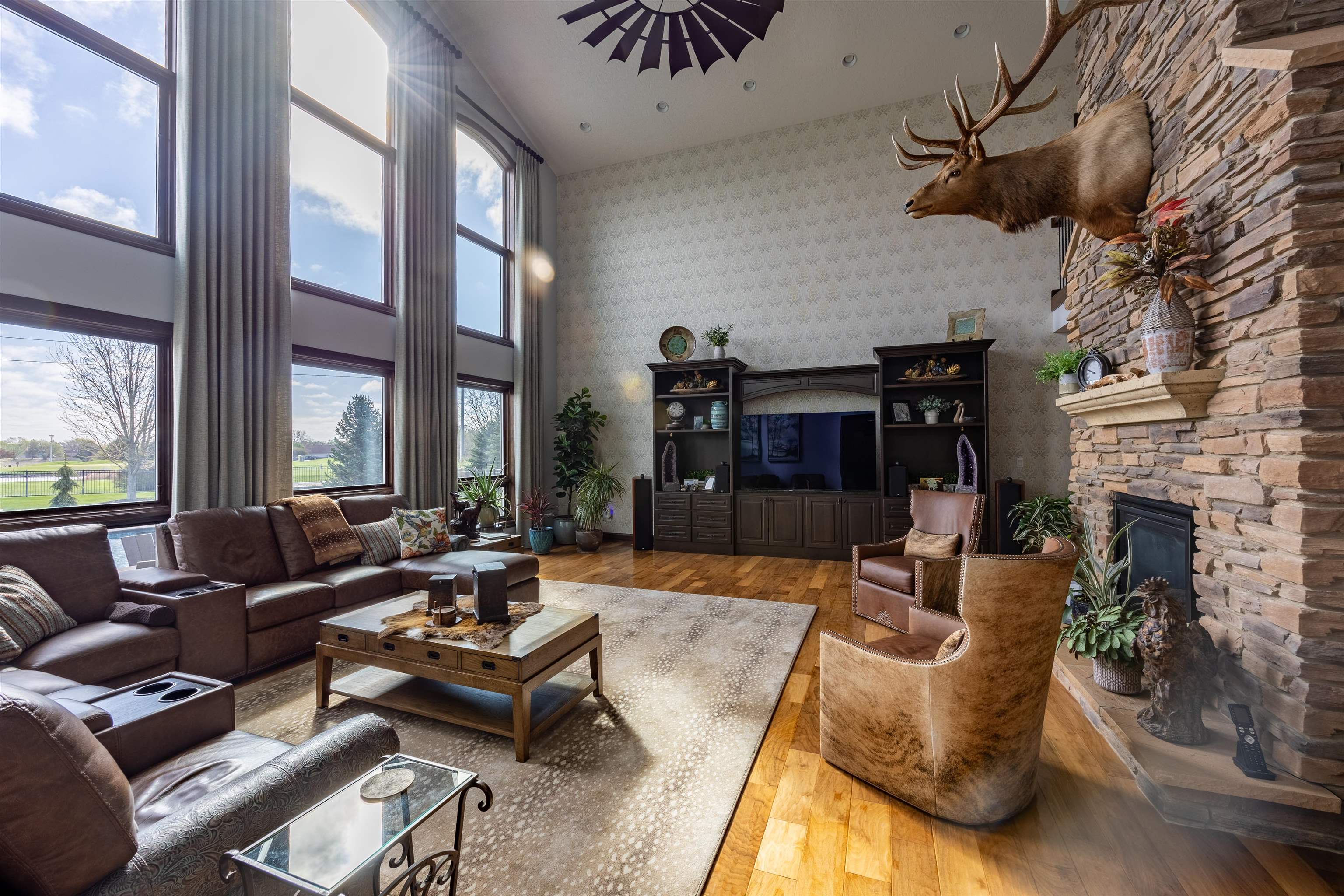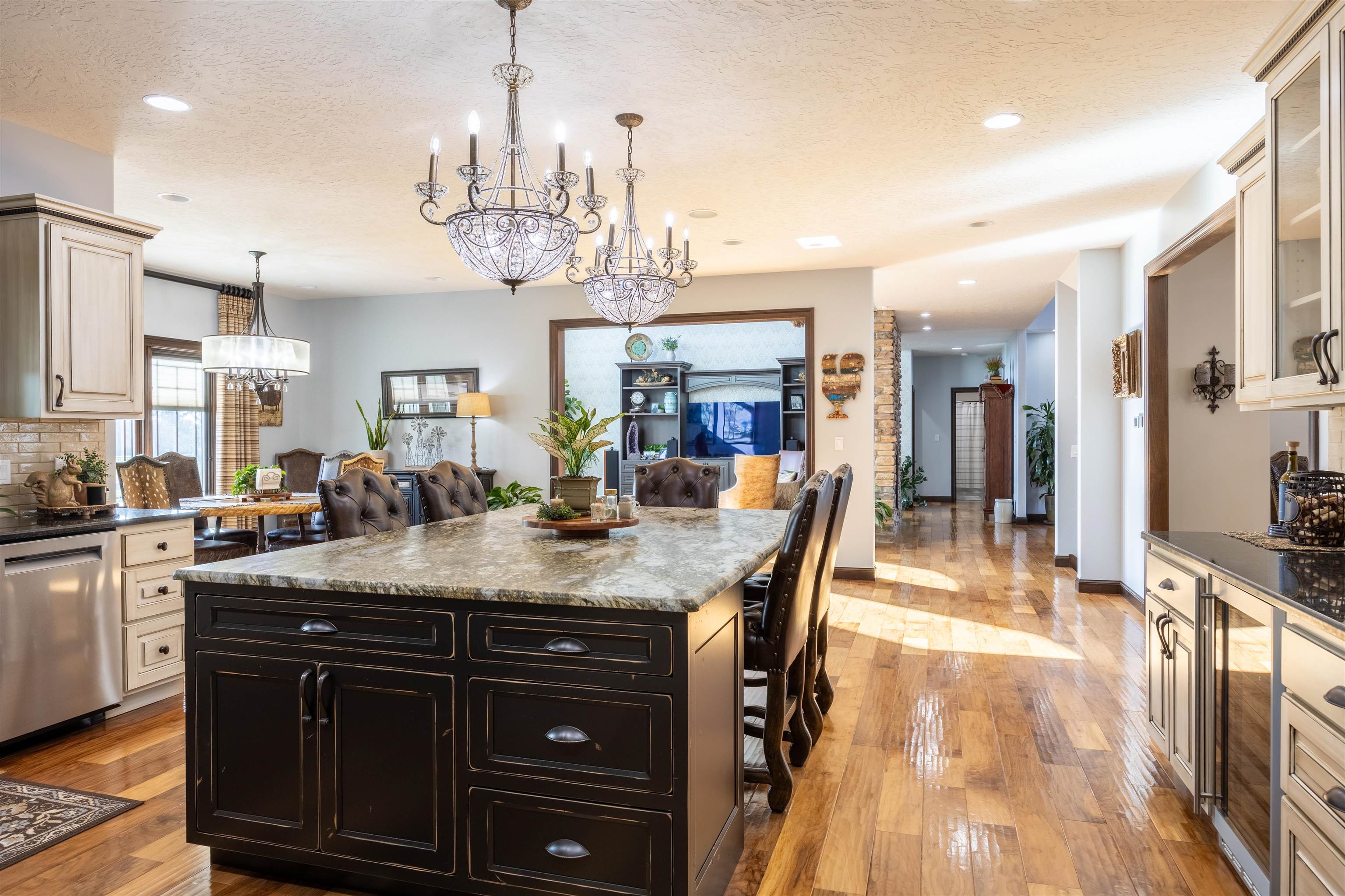 One of a kind home in Equestrian Hills with direct access to Meadowlark Hills golf course. This property has been meticulously cared for and thoughtfully designed with many luxurious features including a wrap around covered front porch and an enclosed back porch with new kitchen. Inside, the kitchen is a show stopper with its large island, copper hood and its open access to the nook, formal dining room and living room. The theater room with its snack bar, the game room with a wet bar and a newly remodeled master bathroom all add this homes' list of great features. This home has a large in-ground swimming pool with new paver pool deck (Graczyk Landscaping) and a wood fired pizza oven. There is a raised bed for gardening all on a 2.28 acre lot on a paved road. The 50x52 workshop has full concrete floor, electricity and is fully insulated with gas heat. There are 3 overhead doors, one of which is oversized at 16' perfect for a motorhome or RV.