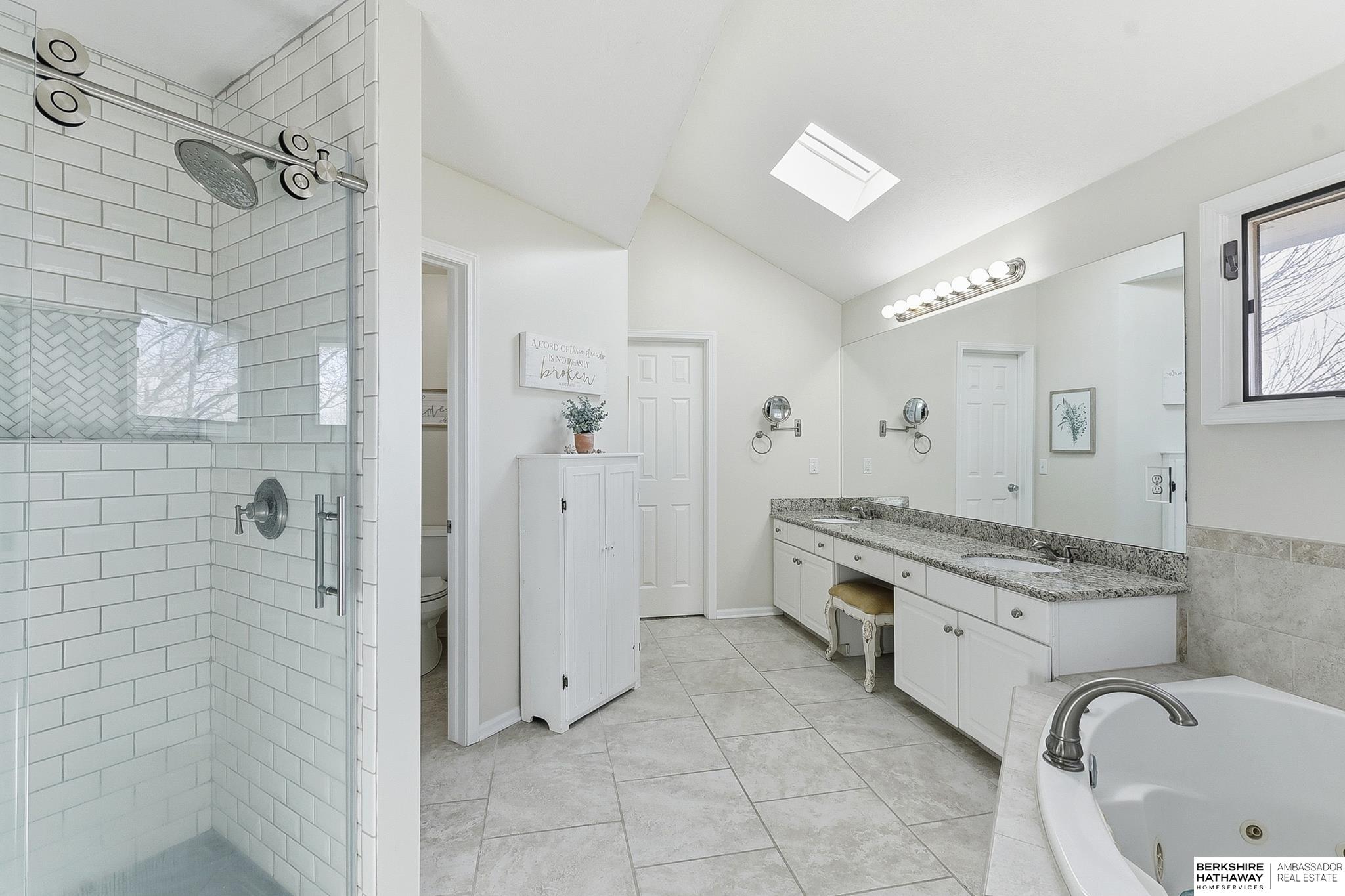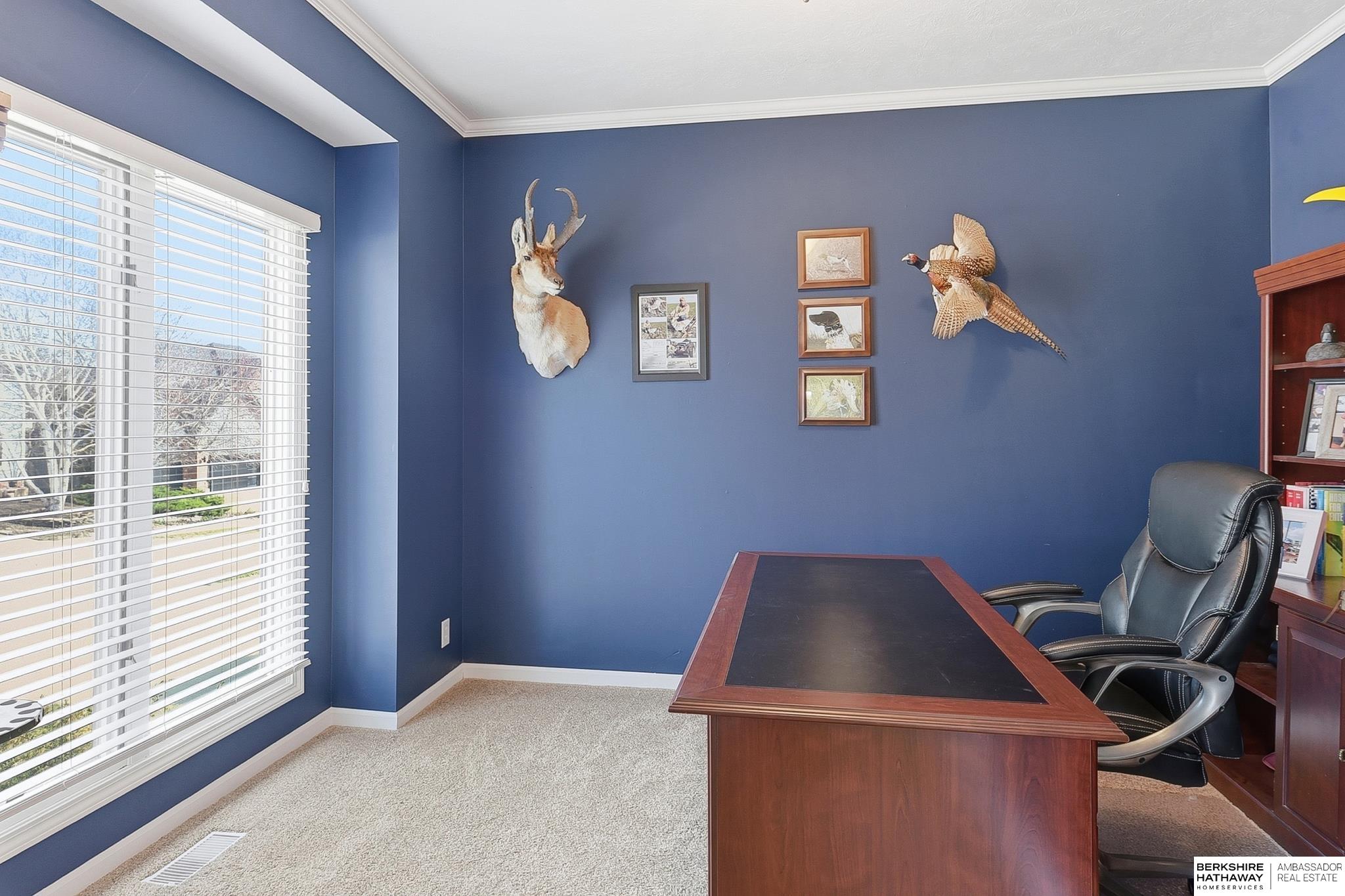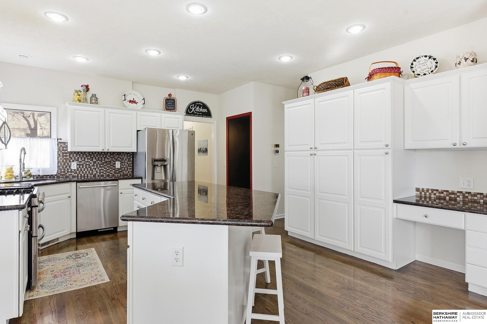 Spacious and beautifully updated two-story home in Millard featuring a fantastic, functional layout. The updated eat-in kitchen features white cabinetry, granite countertops, stainless steel appliances, gas range, and a large island, and flows seamlessly to the main living area & formal dining room. Main level home office, laundry & half bath for added convenience. Upstairs, the massive primary includes sitting area, tray ceiling, custom closet systems, double vanity, jetted soaker tub & tile walk-in shower. Another en-suite bedroom features vaulted ceilings, walk-in closet & private ¾ bath, while the spacious 3rd & 4th bedrooms share a Jack-and-Jill bath. Finished walkout basement offers a 5th bedroom with walk-in closet, ¾ bath and great storage/workshop space. Major updates include new luxury carpet, refinished hardwood floors, newer LVP, 2024 high-efficiency furnace & AC, 2023 water heater, newer roof with leaf guard, interior paint, and professionally painted exterior (2020).