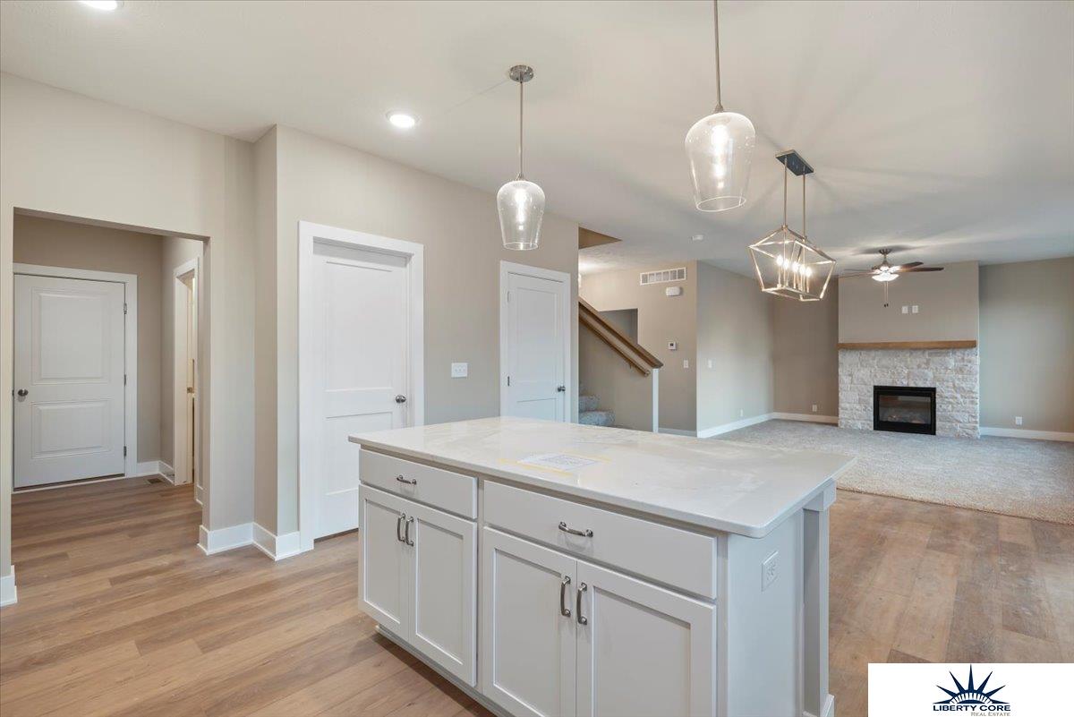 The Brookside by Hallmark Homes Gallery Series in Elkhorn's Iron Bluff. The Brookside features a 4-car garage and tons of closet space! Steps away from Iron Bluff Elementary and a future 6 acre park! Hallmark's Gallery Series plans include 36" kitchen cabinets with crown molding, 12x10 deck and/or 12x10 patio, LVP in the main floor living room and upgraded lighting packages. Every Hallmark Home includes Quartz Countertops, GE Stainless Steel appliances, Moen plumbing fixtures, Luxury Vinyl Plank flooring, PureColor Carpet, 5-1/2" Base Trim, 2x6 Framed Exterior Walls, garage door openers, remotes and keypads, Stone on exterior and Sod w/ Sprinkler System! Tons of options to choose from! 1 Year New Home Warranty included. This home has not started construction. Photos are from renderings and/or model. Price reflects base price and lot price. Features shown in photos may not reflect list price.