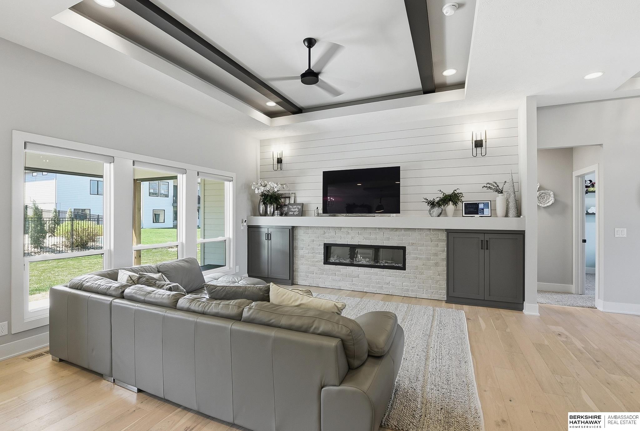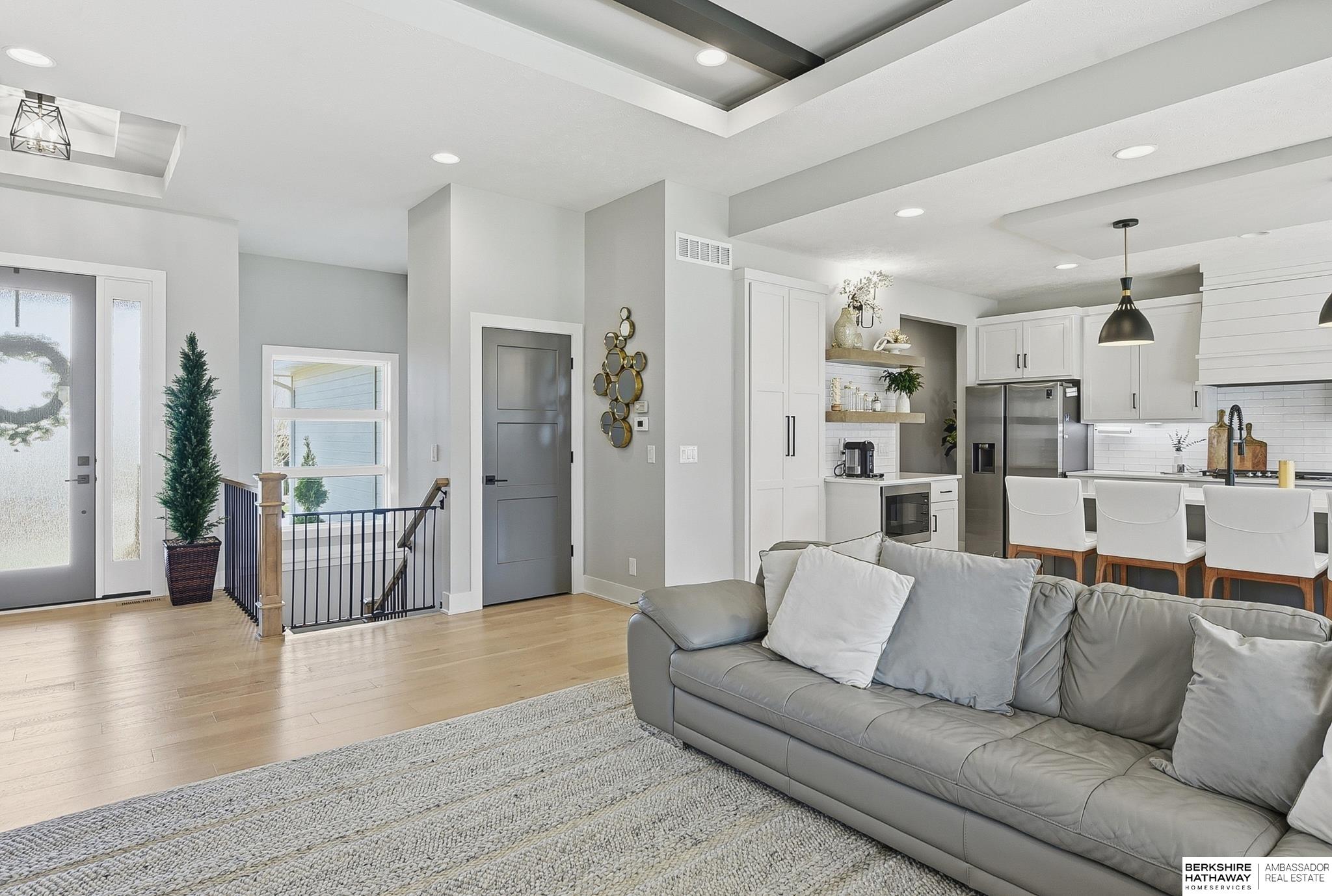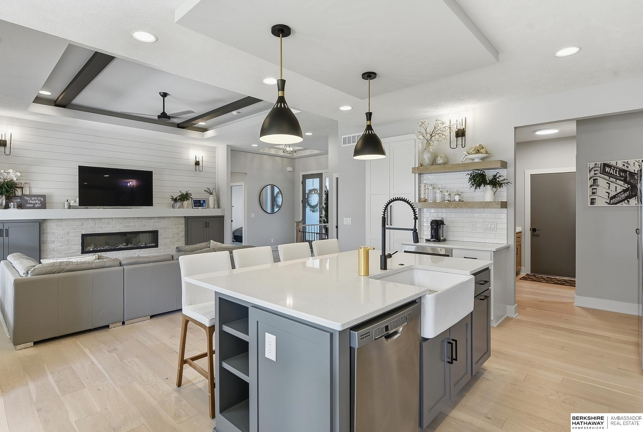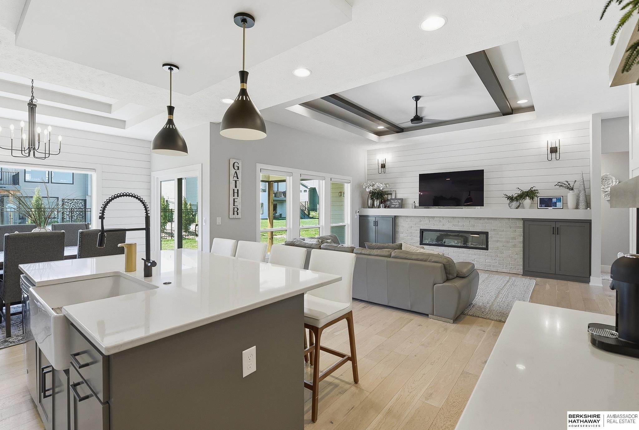 This meticulously designed 5-bedroom, 3-bathroom ranch-style home offers an ideal layout for modern living. The main level features an open floor plan with a tray ceiling and a fireplace that serves as the heart of the living area. The gourmet kitchen is a true centerpiece, equipped with ample counter space, a large walk-in pantry, and a dedicated coffee bar. The primary suite serves as a quiet retreat, where the massive walk-in closet flows seamlessly into the laundry room for added convenience. This suite also features a luxurious bathroom with a double vanity and a tiled walk-in shower. Just off the main living area, a covered patio provides the perfect spot for outdoor relaxation. Downstairs, the finished lower level provides a versatile space for entertaining, featuring a wet bar and storage tucked under the stairs. With a spacious 3-car garage and quality finishes throughout, this home offers the perfect blend of style and comfort. Welcome home!