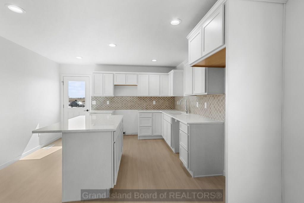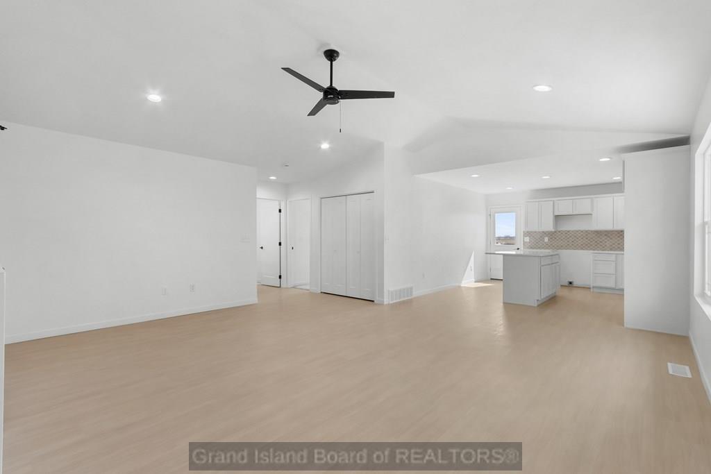 The open kitchen features solid surface countertops, soft-close cabinets, and easy-care vinyl plank flooring. The primary bedroom has access to its own full bathroom, and the second bathroom serves the additional bedroom and guests. Convenience continues with a main floor laundry room and an attached 2-car garage. The full basement is ready for your ideas, with rough-ins for a third bathroom and room to add more bedrooms or a family space. Located near key amenities, you're just a short drive to Webb Road Sports Field, perfect for outdoor activities. Hy-Vee Grocery Store is nearby for everyday needs, and Heartland Lutheran High School is minutes away. Whether you're moving into your first home or simplifying your lifestyle, this move-in-ready home offers everyday comfort with room to grow.