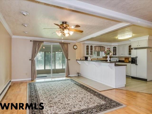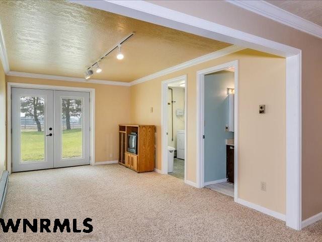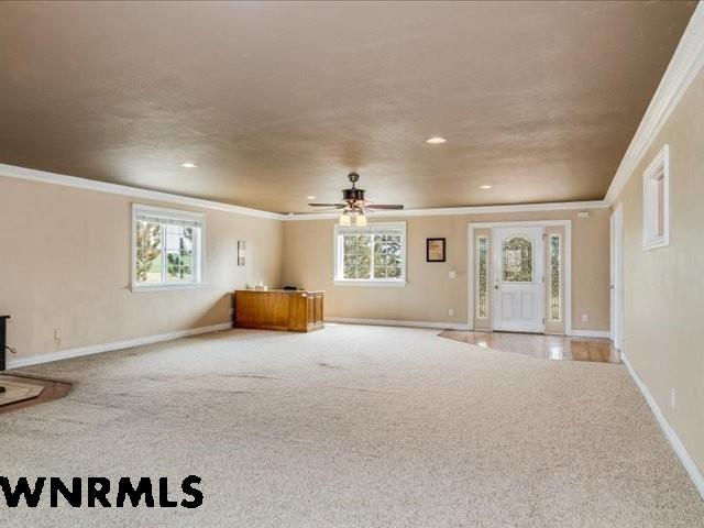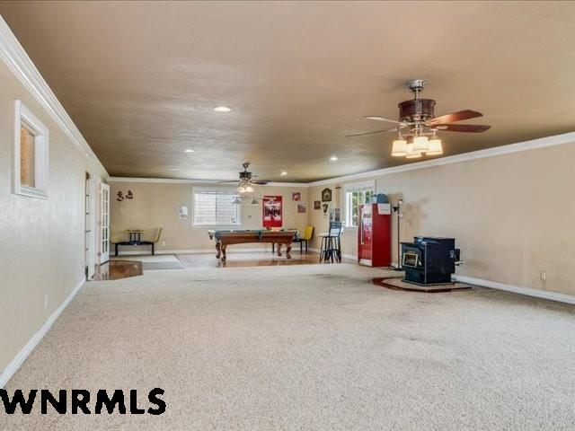 If you love to entertain, here's the property for you. Experience the ideal fusion of comfort and rural charm with this captivating country home nestled on 6 acres, encircled by a sturdy barbed wire fence. Perfect for horse lovers or those eager to raise livestock or poultry, this property promises endless opportunities. Inside, the open floor plan welcomes you with a spacious 23' x 49' family room, complete with a pool table and built-in booths for unforgettable family gatherings. The updated dining room and kitchen feature elegant crown molding, a mix of tile and hardwood floors, and solid surface countertops. Enjoy the enclosed sun porch's cheerful ambiance as sunlight streams in, while the south-facing yard, accessible from the walk-out basement and patio, supports lush greenery. A well-equipped Cleary building with an insulated and wired shop offers two garage stalls, and another structure provides three additional stalls for all your equipment needs. Recent updates include a brand-new class 4 roof, modern front and sliding patio doors, and a new dishwasher. Relax in the luxurious jet bathtub with a separate shower or cozy up by the pellet stove on chilly evenings. The open-faced shelter with separate stalls is perfect for cows, goats, sheep, or horses. Surrounded by scenic farm fields, this property epitomizes serene country living, offering an ideal environment for raising a family, nurturing animals, and embracing the peaceful rural lifestyle at its finest. Home is very well insulated and doesn't need central air conditioning. Utilities are very low cost. ACTUAL ADDRESS is 4374 ROAD 74T Torrington WY. (WNMLS does not have the correct address in the system)