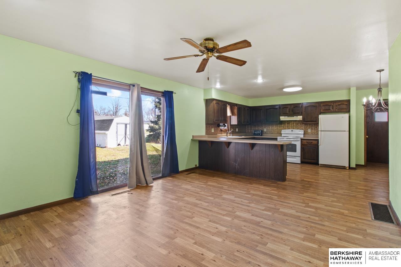 Opportunity awaits in Lyons. This 3-bedroom, 2-bathroom residence offers 1,478 sq ft of living space and features a large kitchen with abundant cabinetry, an adjoining dining area, and a spacious living room with a brick fireplace and sliding glass doors to the backyard. Additional rooms on the main level provide flexibility for bedroom use, office space, etc. Exterior highlights include vinyl siding, a detached 1-car garage, concrete patio, and an additional storage shed. The home is ready for updating throughout and presents a solid option for buyers seeking a renovation opportunity. Located within Lyons city limits and close to local amenities. Property is being sold as-is. All measurements approximate; buyer to verify schools and utilities.