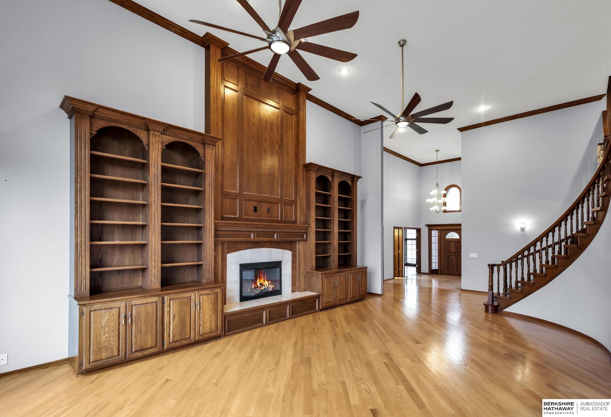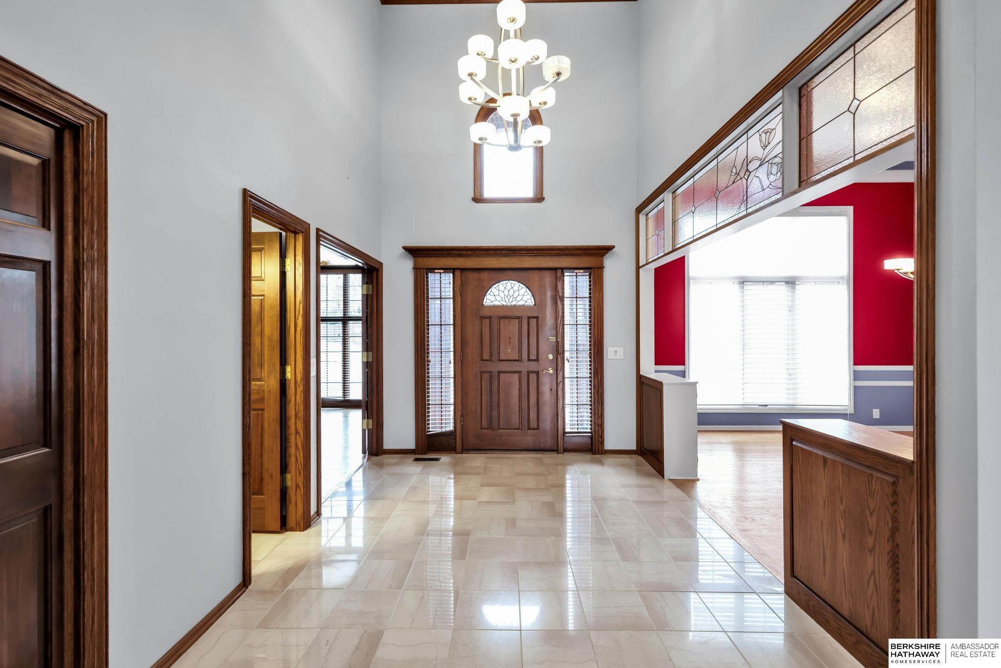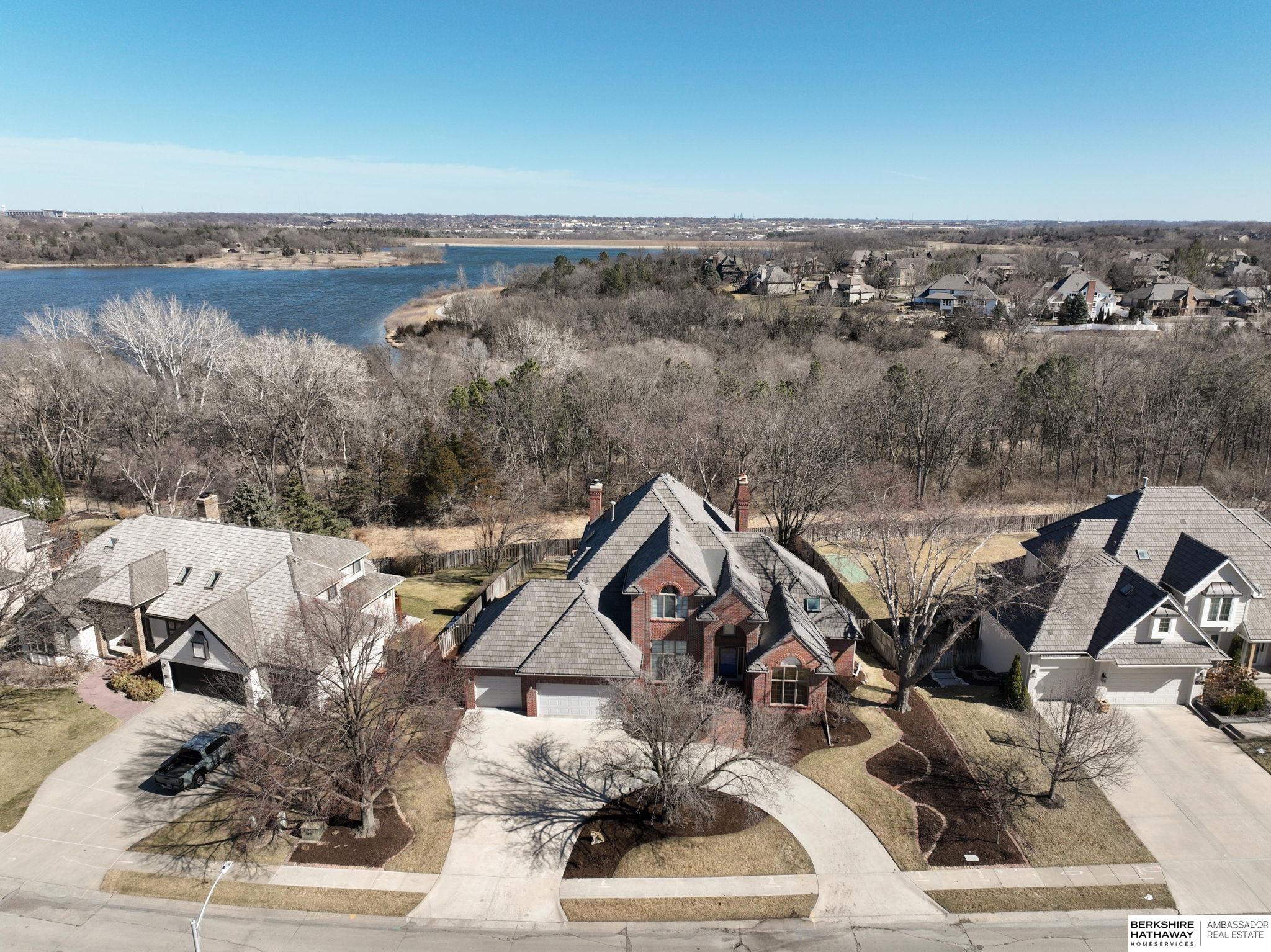 Million-dollar views of Zorinsky set the stage for this exceptional, quality-built home that backs directly to Zorinsky Lake and the park. An all-brick front enhances the exterior, offering timeless character and outstanding curb appeal, complemented by a circular drive for added convenience and a grand first impression. This spacious one-and-a-half-story design features a dramatic two-story family room filled with natural light, creating an open and inviting atmosphere. With three fireplaces throughout, the home offers warmth, character, and multiple cozy gathering spaces. The walkout lower level provides additional living and entertaining space, seamlessly connecting to the outdoors - perfect for enjoying the peaceful setting.