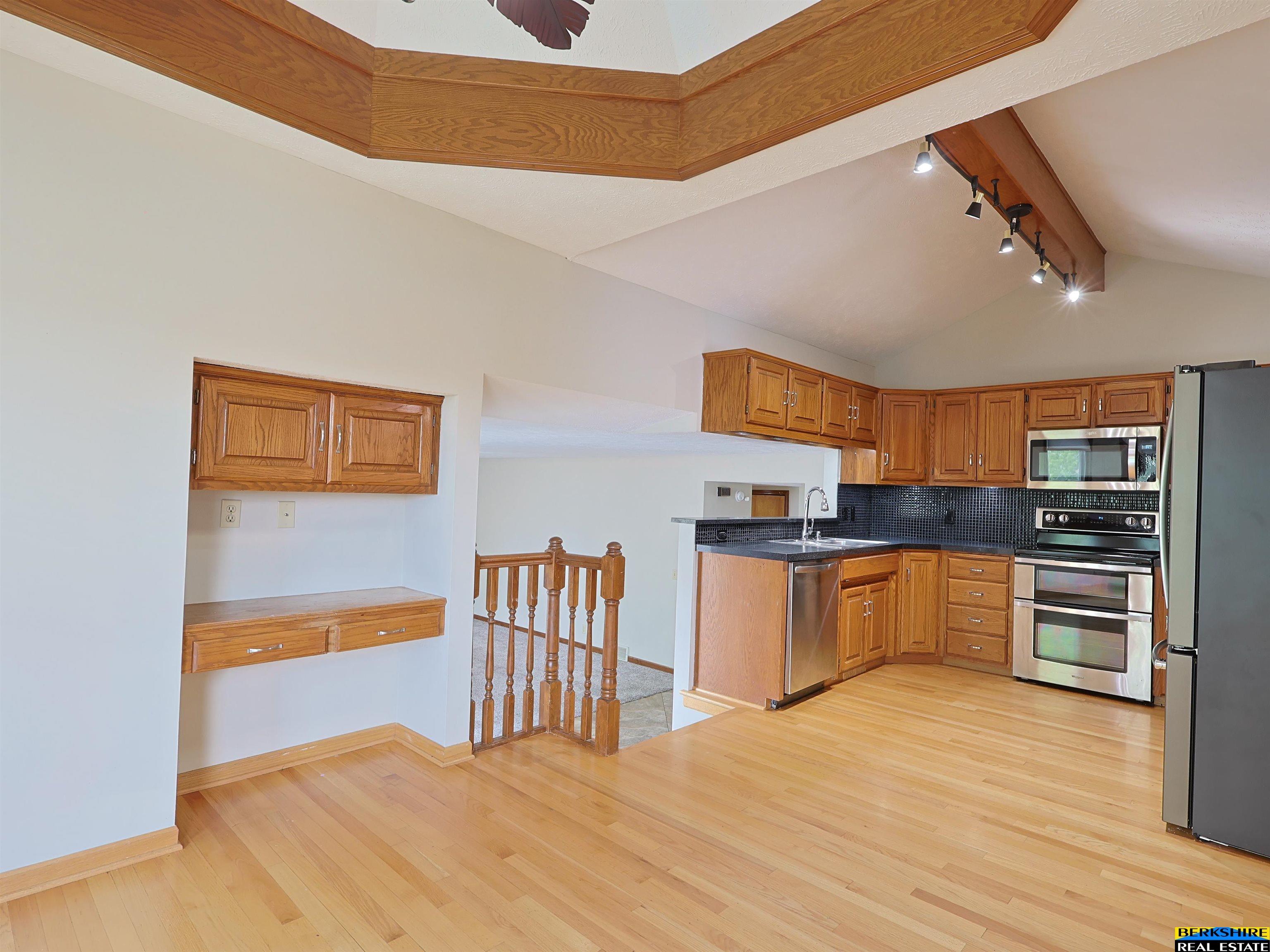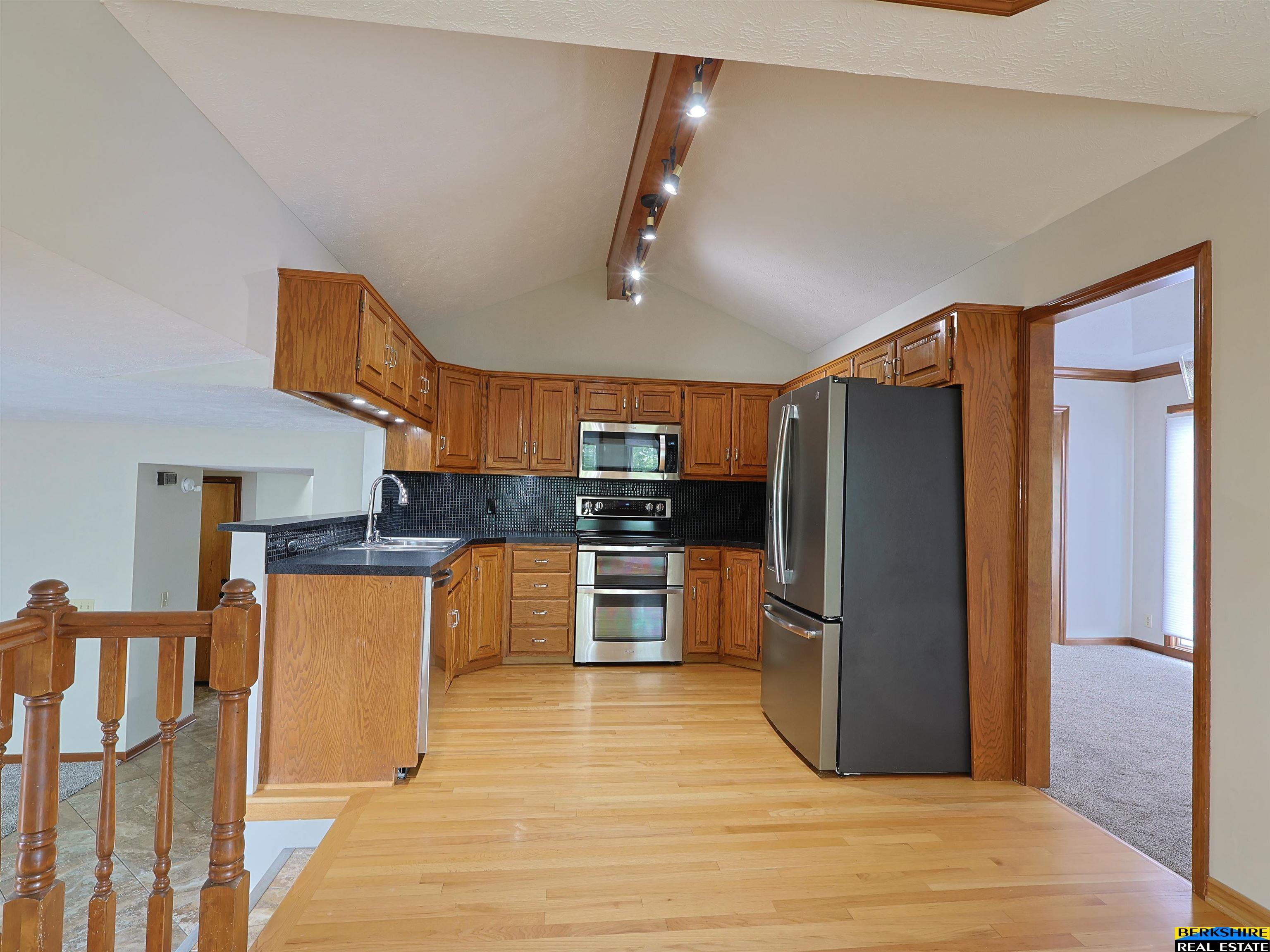 Spacious 3-bed, 3-bath tri-level with over 3,000 finished sq. ft. in a great neighborhood. Close to shopping, restaurants and recreation. Lake Zorinsky is just a short hop, skip and jump away. Lots of square footage means that there is plenty of room for people and storage! Large dine-in kitchen that comes with newer appliances, loads of cabinets, desk and under cabinet lighting. Double excavated basement with family room, office, walk out rec room and two large storage areas makes it easy to work or play. Enjoy all the natural light thanks to the large windows in the living room, bay windows in the kitchen and family room and two sliding doors walking out on to the freshly stained deck and covered patio. If more bedrooms are needed, the primary bedroom sitting area can easily be converted into a fourth bedroom. New inside paint, newer window coverings, a 4-year-old pool, and beautifully landscaped yard with sprinkler system and full wooden privacy fence round out a perfect house.