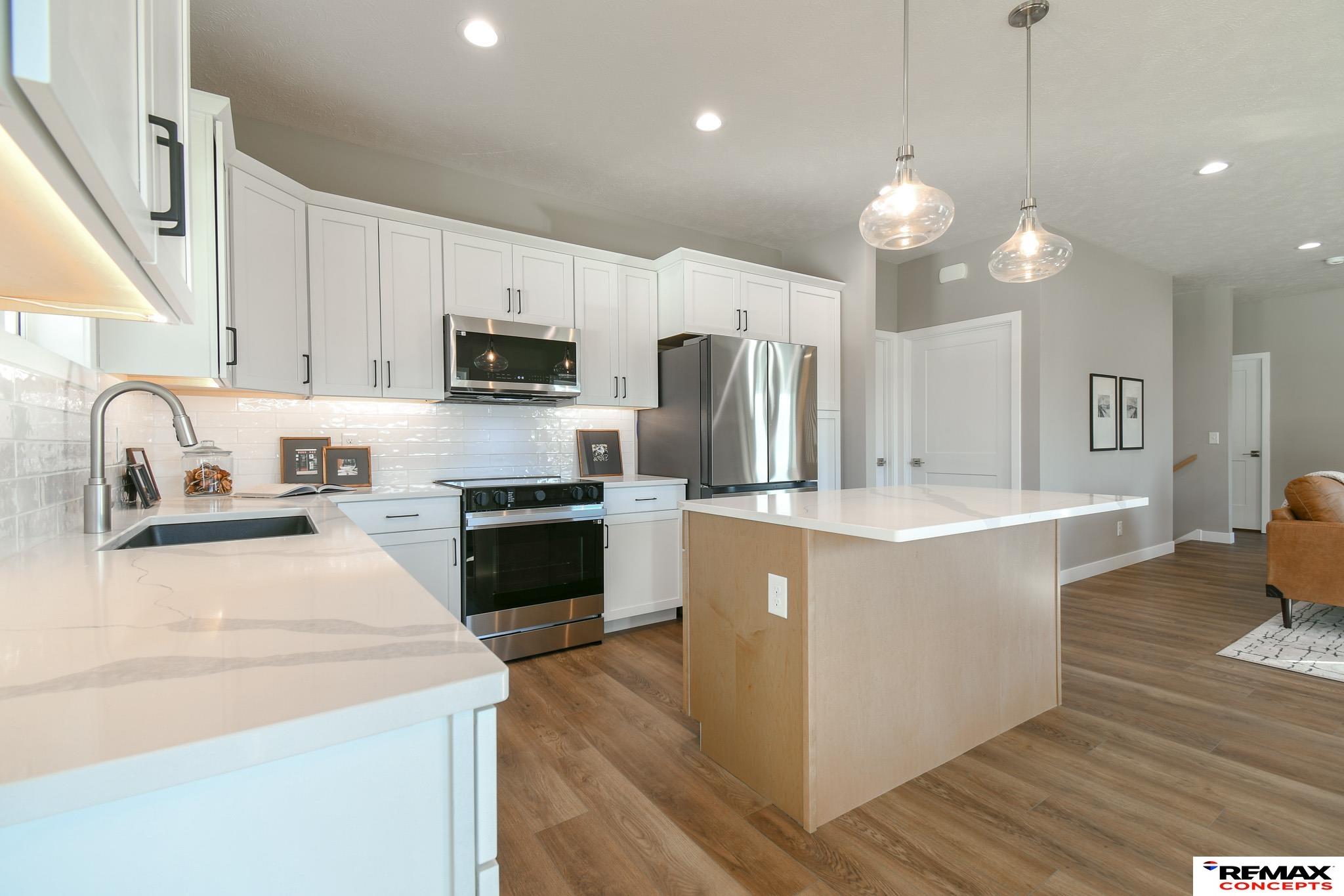 ZERO ENTRY! These 57th street townhomes are where luxury & exceptional quality meet. Configured with the highly desirable zero entry design. Step inside the front door to a unique feature wall welcoming you into the home. The main floor is an open concept with a convenient flow from the living, dining & kitchen spaces. You’ll also find 2 bedrooms including the primary suite with its own bathroom & walk in closet. A great perk is the main floor laundry room with the washer & dryer included. The basement has a wide open entertainment area, 2 more bedrooms, another bathroom & a multitude of storage space. You’ll surely notice the keen eye for detail showcased throughout with the color schemes, beautiful feature walls & ceilings, light fixtures, quartz countertops & even an added layer of noise control with insulation between the bedroom walls. Still to come include a 6 ft privacy fence, back patio privacy screen, sod & sprinklers. It's a must see!