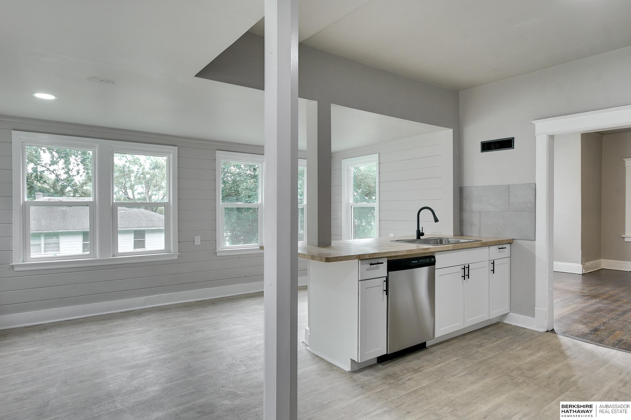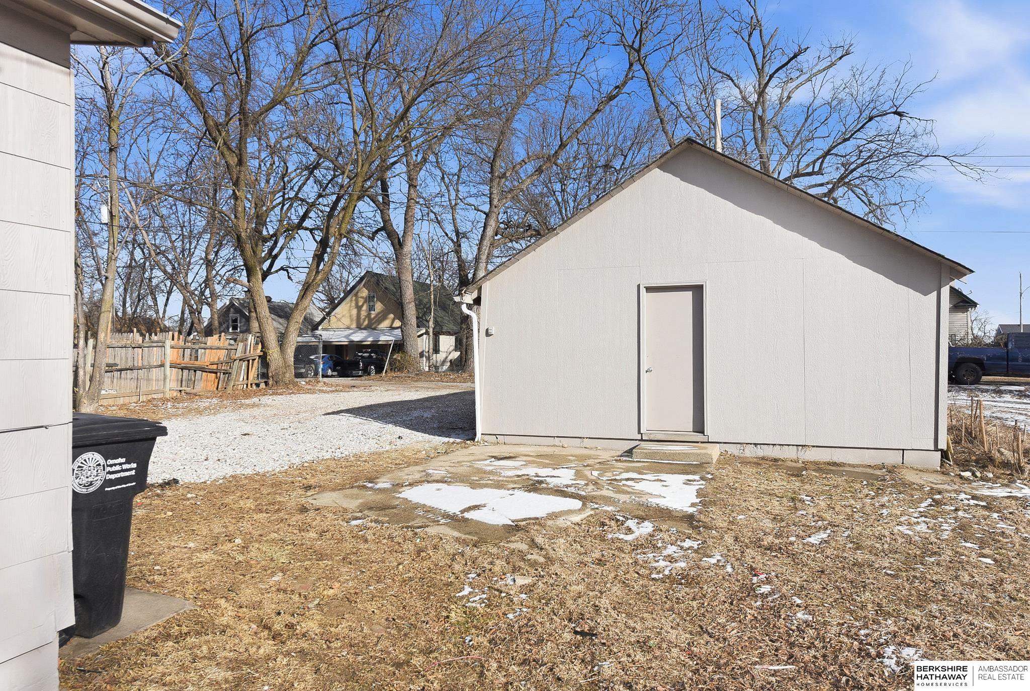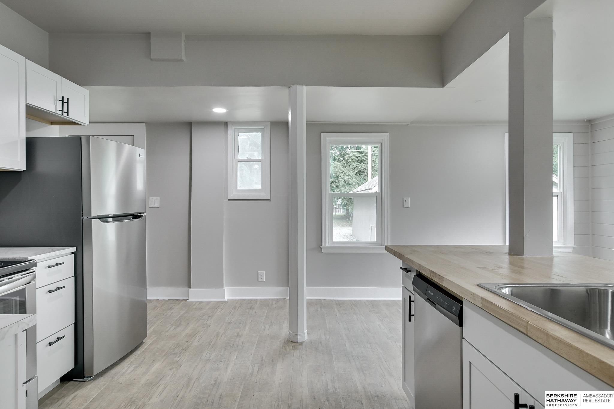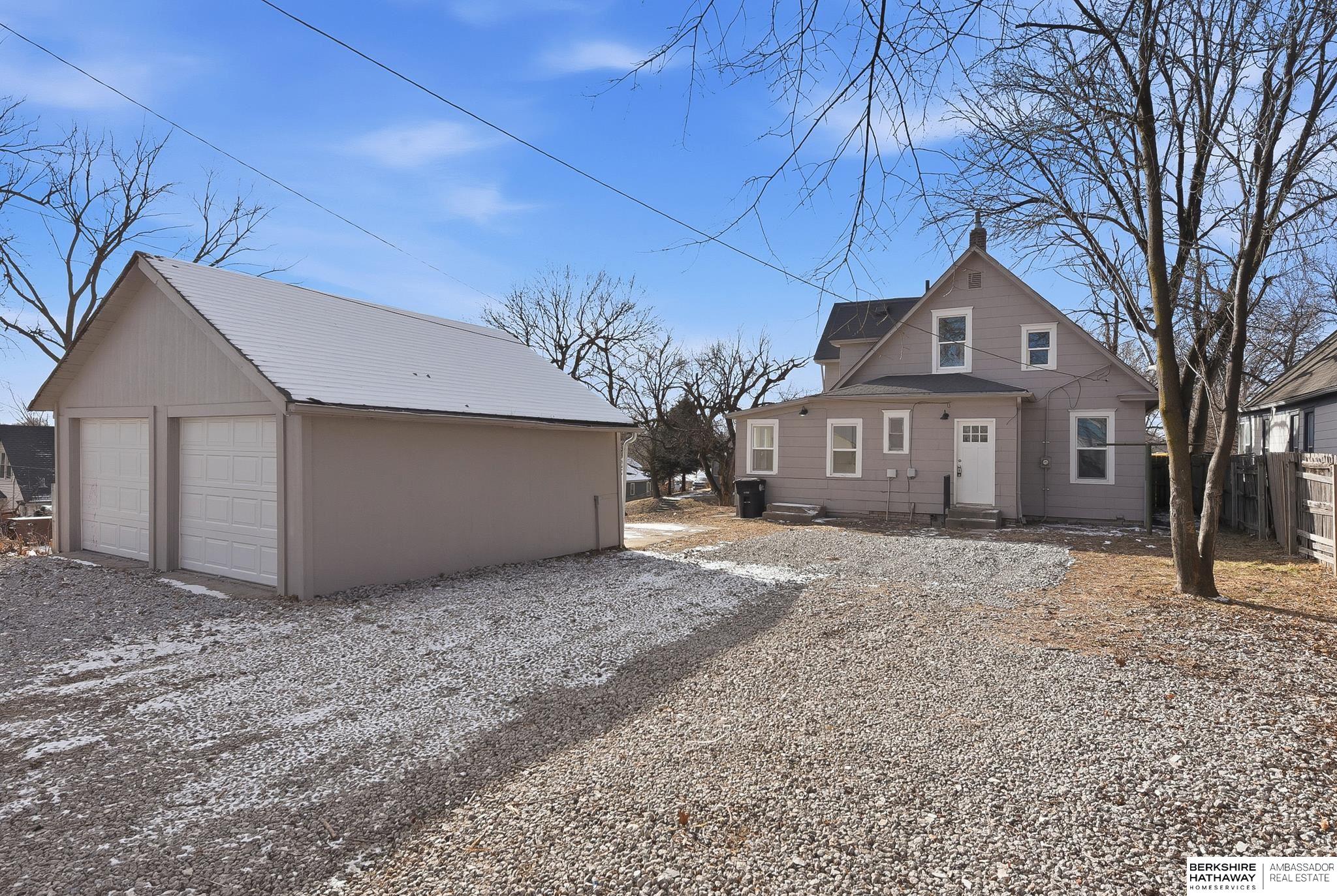 Welcome to this beautifully updated 3-bed, 1-bath home in North Omaha! Step inside to find fresh paint, refinished hardwood floors, and a bright, open floor plan. The living room flows seamlessly into a fully remodeled kitchen featuring new cabinetry, butcher block countertops, stainless steel appliances, and a breakfast bar perfect for entertaining. The spacious bathroom has been completely modernized with tiled shower walls, new vanity, and stylish fixtures. Large windows fill the home with natural light, creating a warm and inviting atmosphere. Outside, enjoy a private backyard with a rare oversized 2-car detached garage, offering plenty of storage or workspace. Conveniently located near parks, schools, shopping, and just minutes to downtown. This move-in ready home combines charm with modern upgrades. Perfect for homeowners or investors alike!