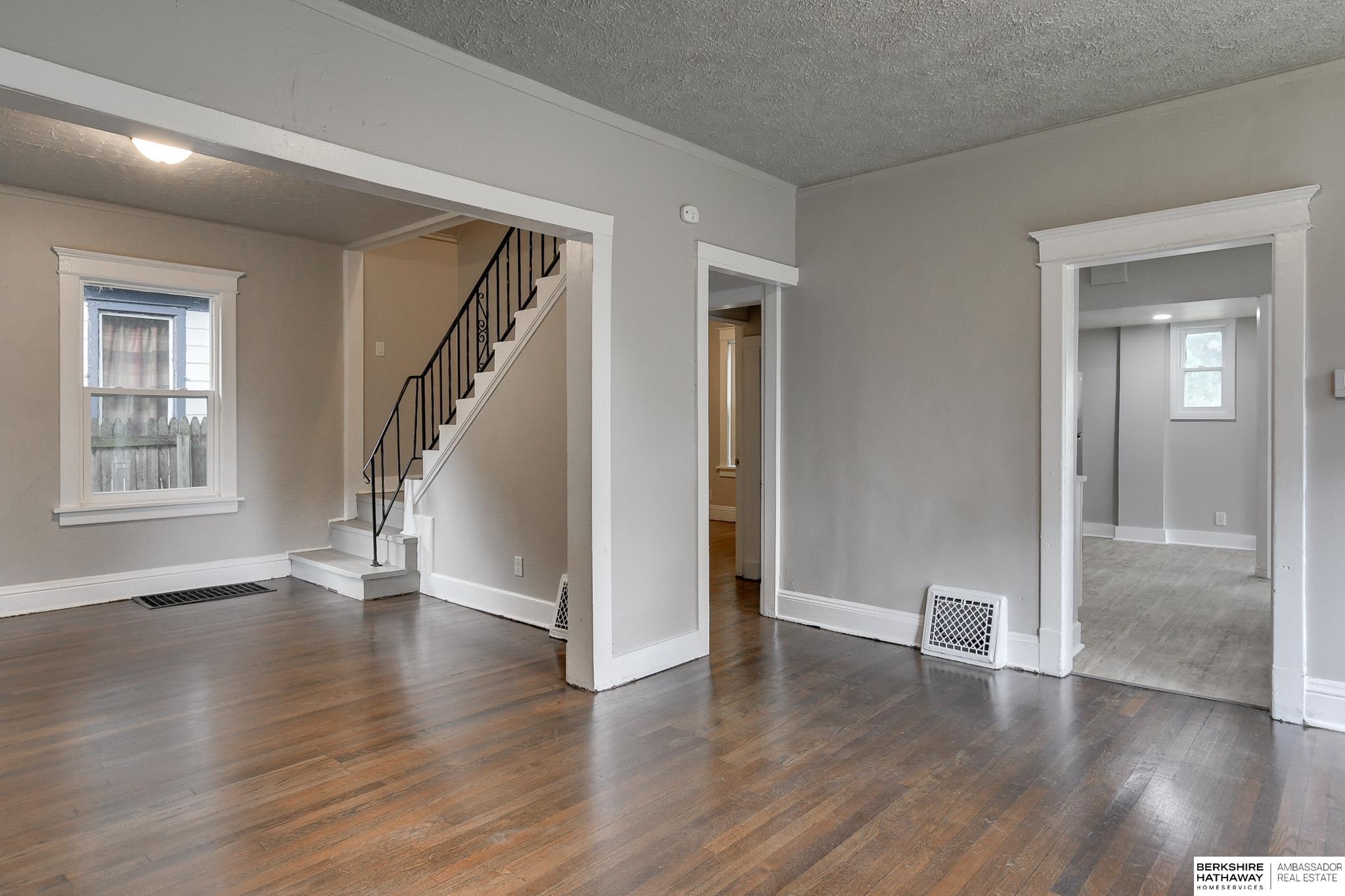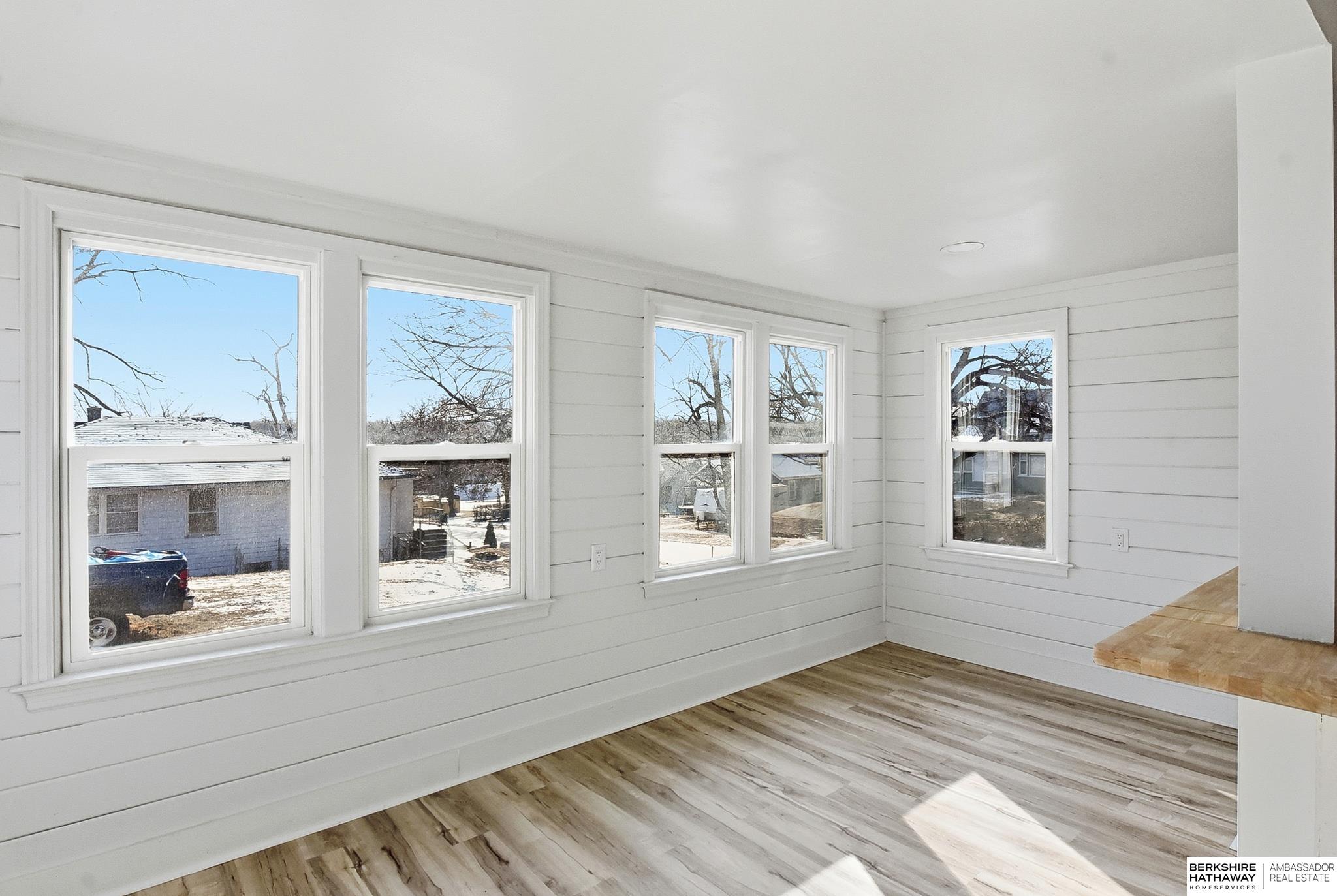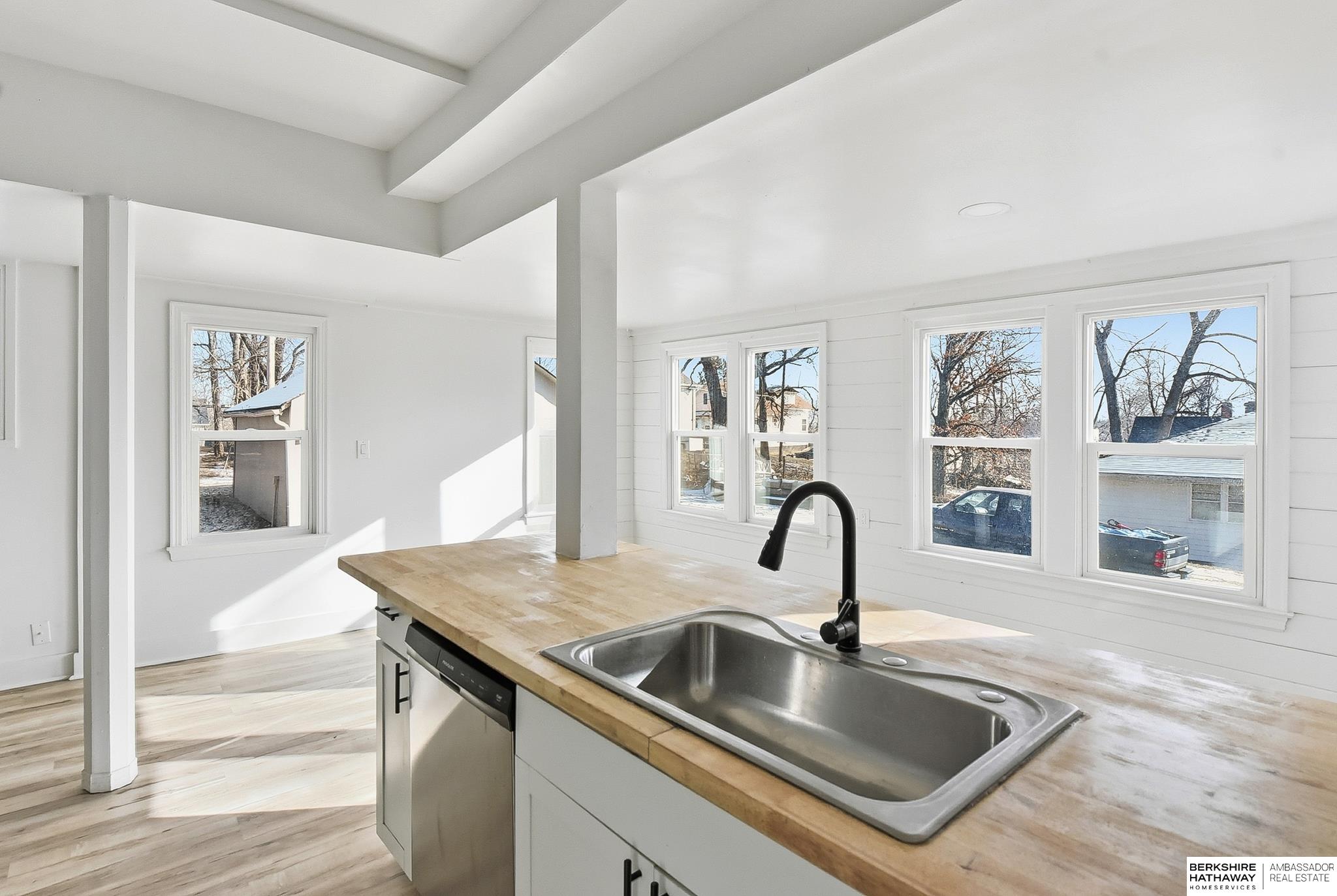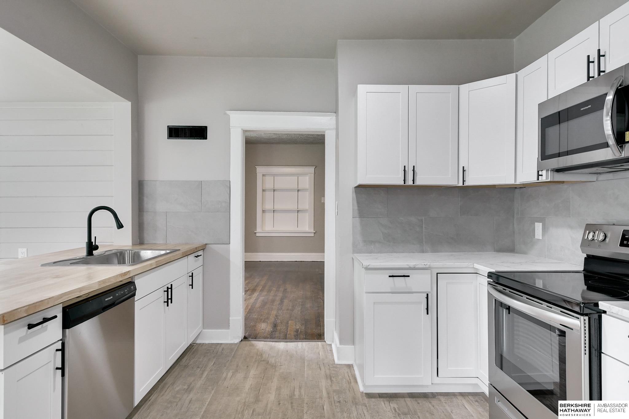 Welcome to this beautifully updated 3-bed, 1-bath home in North Omaha! Step inside to find fresh paint, refinished hardwood floors, and a bright, open floor plan. The living room flows seamlessly into a fully remodeled kitchen featuring new cabinetry, butcher block countertops, stainless steel appliances, and a breakfast bar perfect for entertaining. The spacious bathroom has been completely modernized with tiled shower walls, new vanity, and stylish fixtures. Large windows fill the home with natural light, creating a warm and inviting atmosphere. Outside, enjoy a private backyard with a rare oversized 2-car detached garage, offering plenty of storage or workspace. Conveniently located near parks, schools, shopping, and just minutes to downtown. This move-in ready home combines charm with modern upgrades. Perfect for homeowners or investors alike!