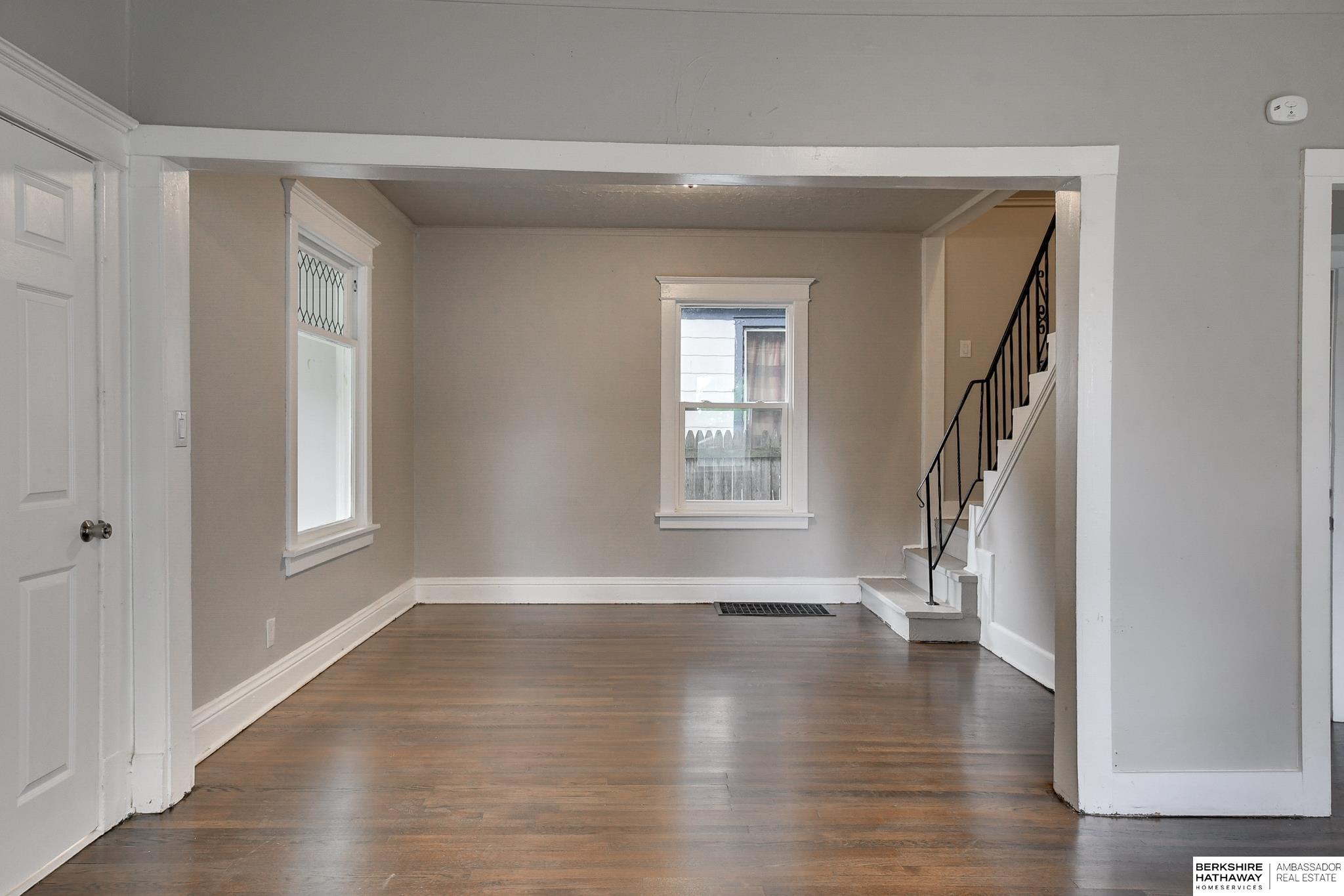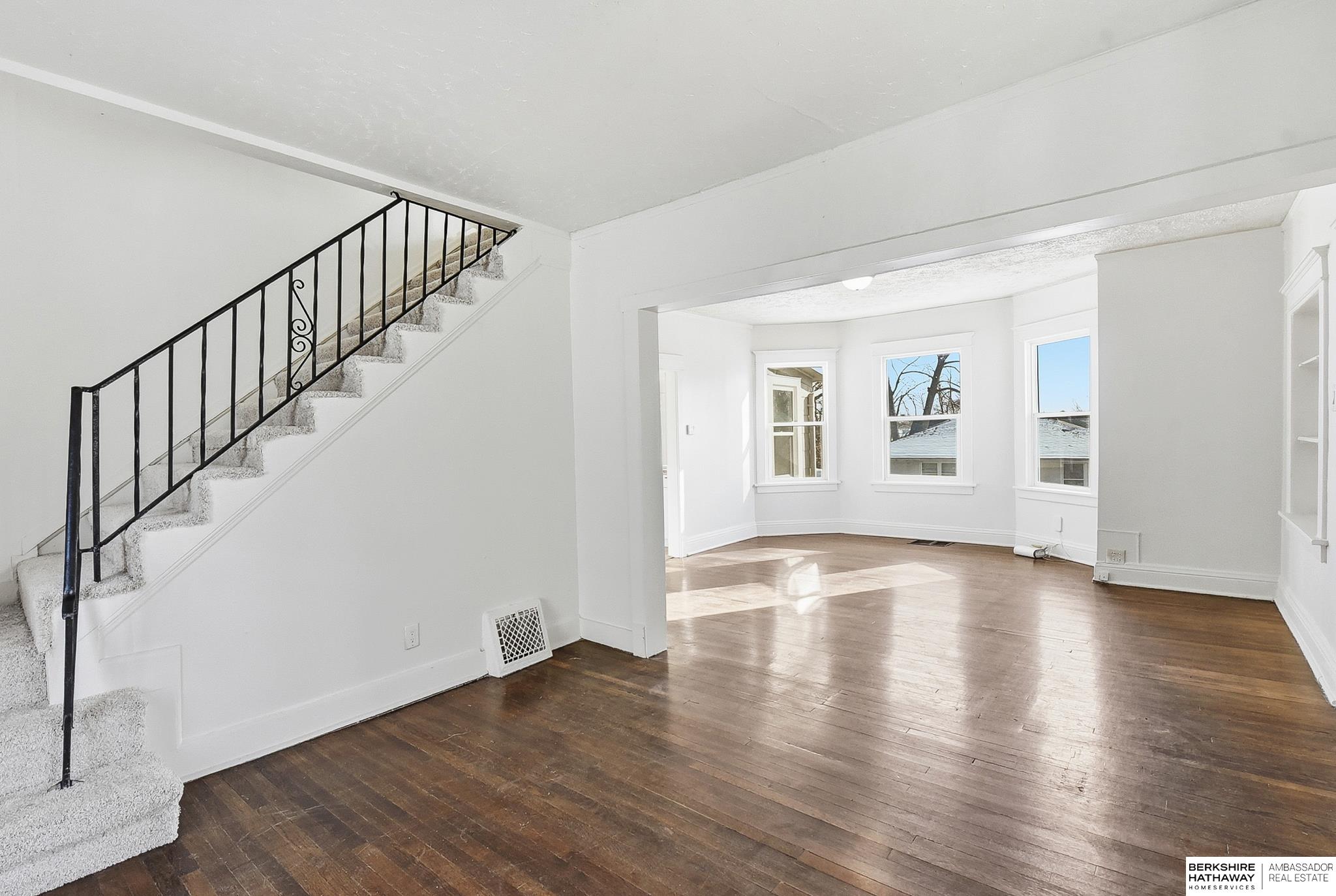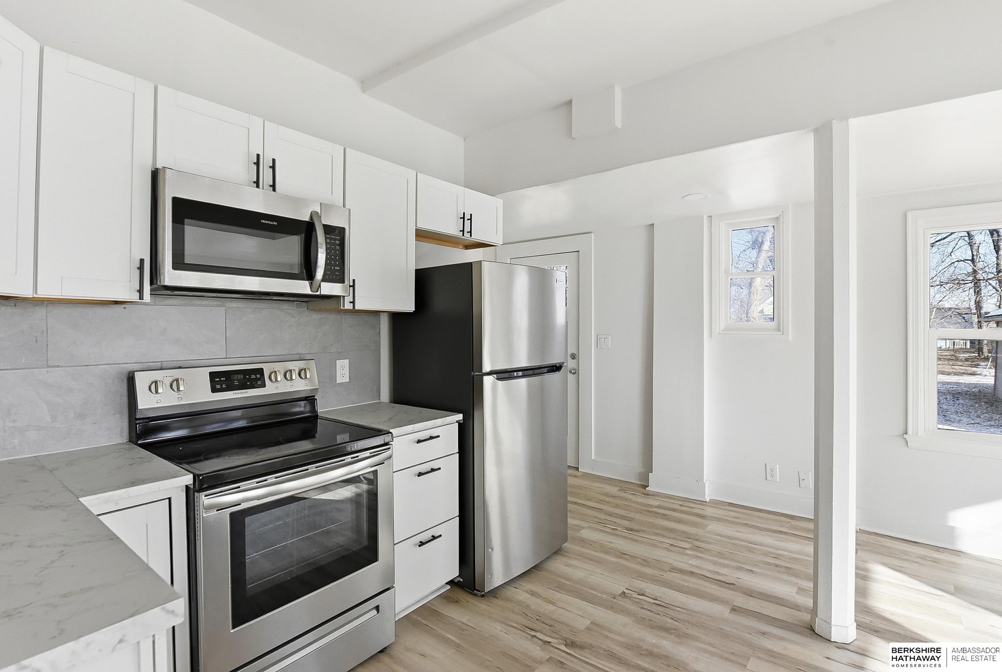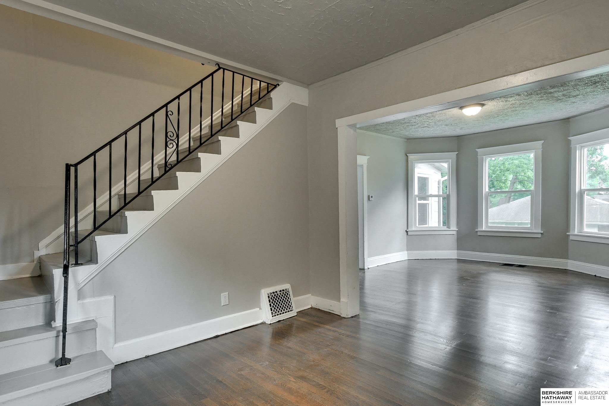 Welcome to this beautifully updated 3-bed, 1-bath home in North Omaha! Step inside to find fresh paint, refinished hardwood floors, and a bright, open floor plan. The living room flows seamlessly into a fully remodeled kitchen featuring new cabinetry, butcher block countertops, stainless steel appliances, and a breakfast bar perfect for entertaining. The spacious bathroom has been completely modernized with tiled shower walls, new vanity, and stylish fixtures. Large windows fill the home with natural light, creating a warm and inviting atmosphere. Outside, enjoy a private backyard with a rare oversized 2-car detached garage, offering plenty of storage or workspace. Conveniently located near parks, schools, shopping, and just minutes to downtown. This move-in ready home combines charm with modern upgrades. Perfect for homeowners or investors alike!