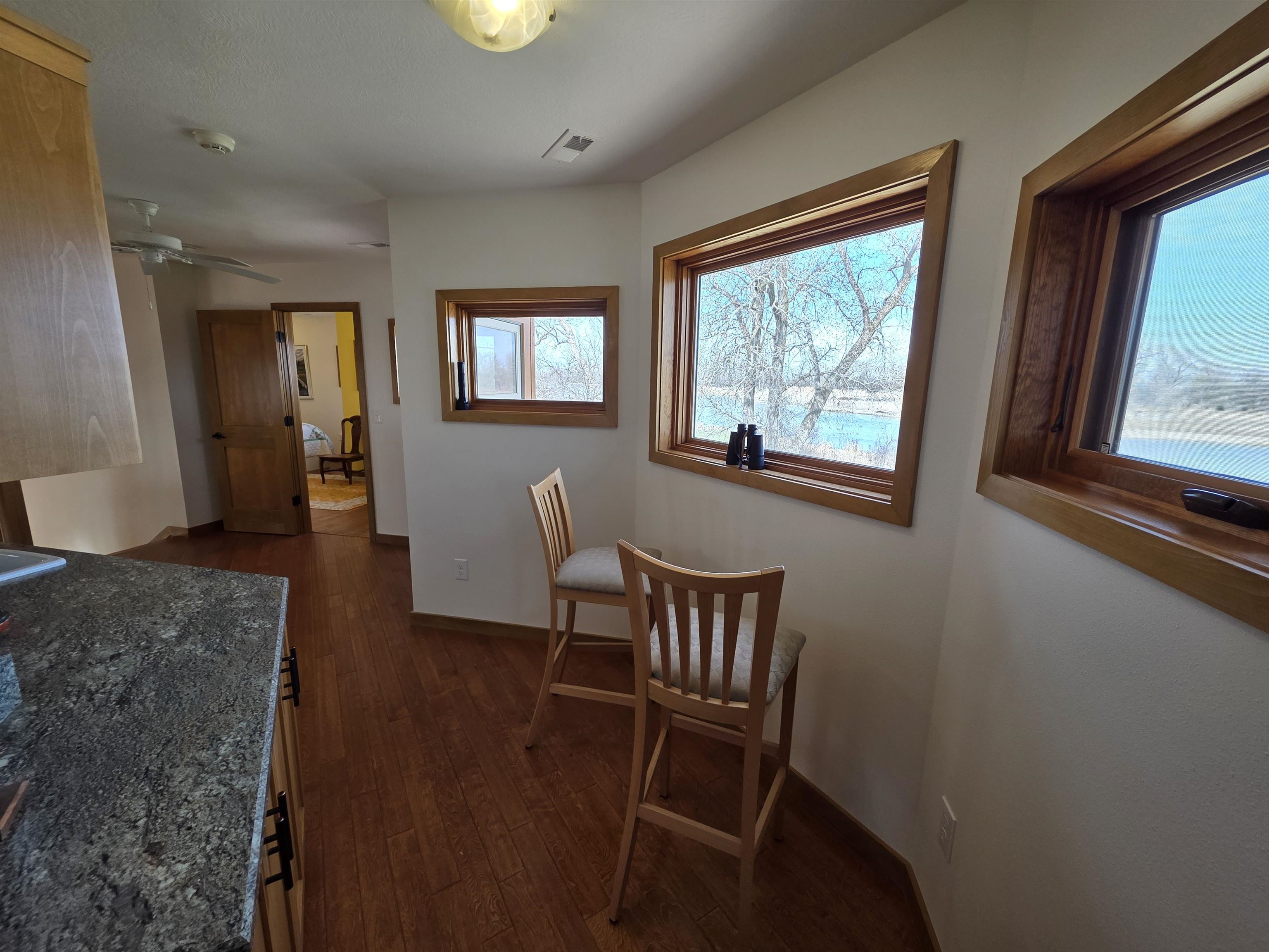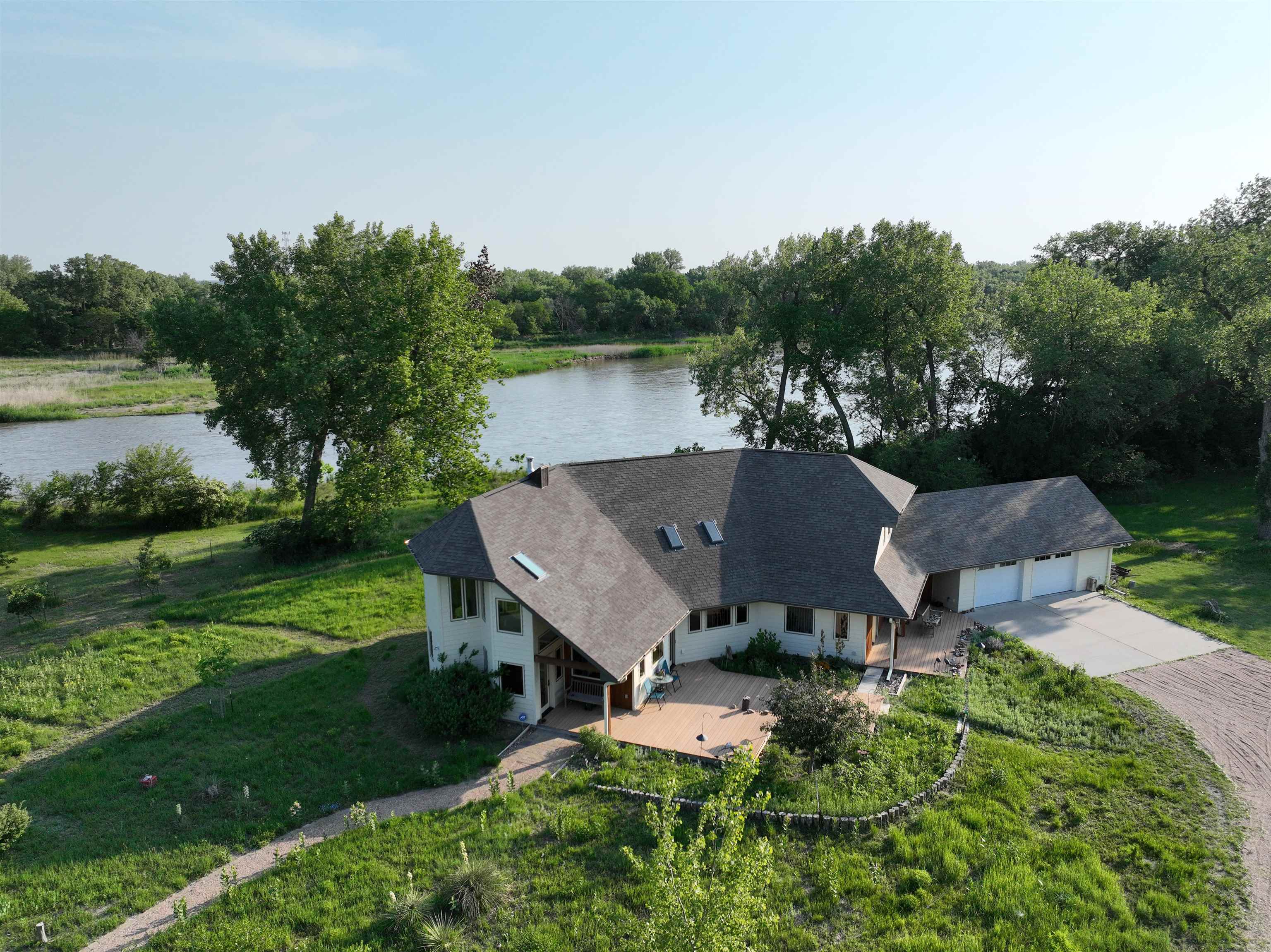 Welcome to your private paradise nestled southwest of Gibbon—this stunning 27-acre property boasts 1,529 feet of Platte River frontage and is a haven for nature enthusiasts. Whether you're into hunting, bird watching, hiking, or simply enjoying the outdoors, you’ll fall in love with the secluded trails, two wildlife sloughs, one pond, and abundant wildlife. The 1½ story home, built in 2011, is in immaculate condition and thoughtfully designed for comfort and efficiency. With 3 bedrooms, 3 bathrooms, and a 2-car garage, the home features a bright, open main floor with beautiful wood floors, large windows and a two-sided fireplace connecting the living room and office. The spacious kitchen offers a large island, pantry, and appliances are included. The primary suite has a walk-in closet and bath, while the mudroom includes a tornado shelter for peace of mind. Upstairs, you’ll find two additional bedrooms, a cozy loft/coffee area with mini-fridge and microwave, a full bath, and large attic space accessible from both the garage and third bedroom. Built for energy efficiency, the home features 2x6 construction, geothermal heating, double-pane windows, and impact-resistant shingles. The home was designed with the outdoors in mind. The windows are preciously located for river and wildlife viewing. There is a 30x40 outbuilding with concrete floor and side overhang. The front and back patios offer the perfect place to relax after a day enjoying your riverfront escape. FEMA documents on file, showing structures have been removed from floodplain. This property is more than a home—it’s a retreat!
