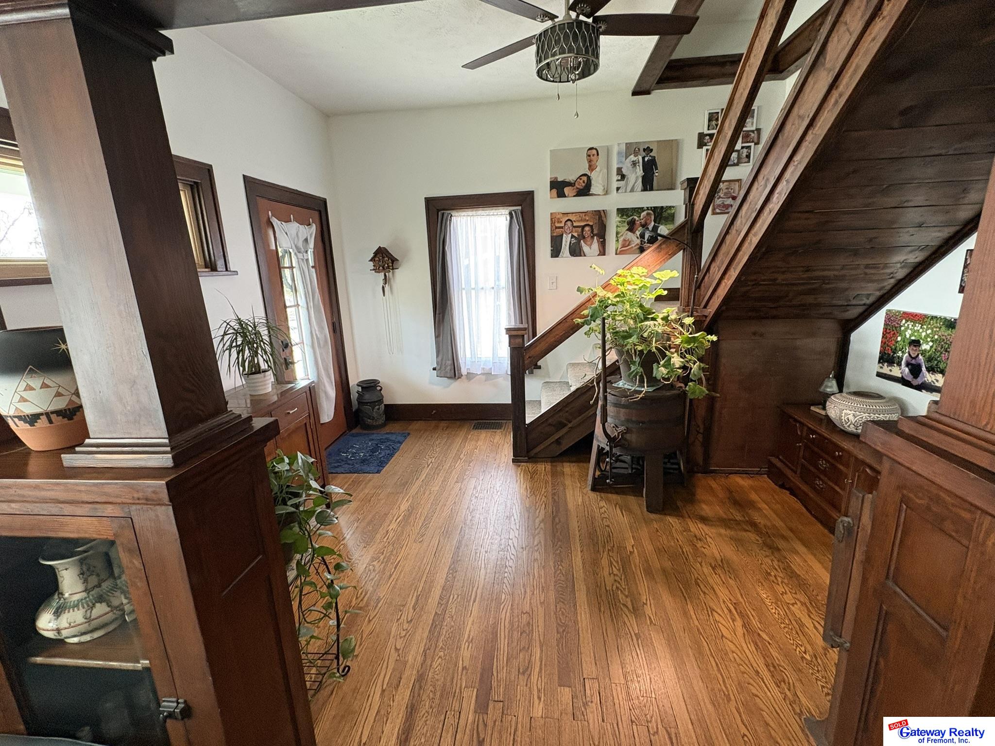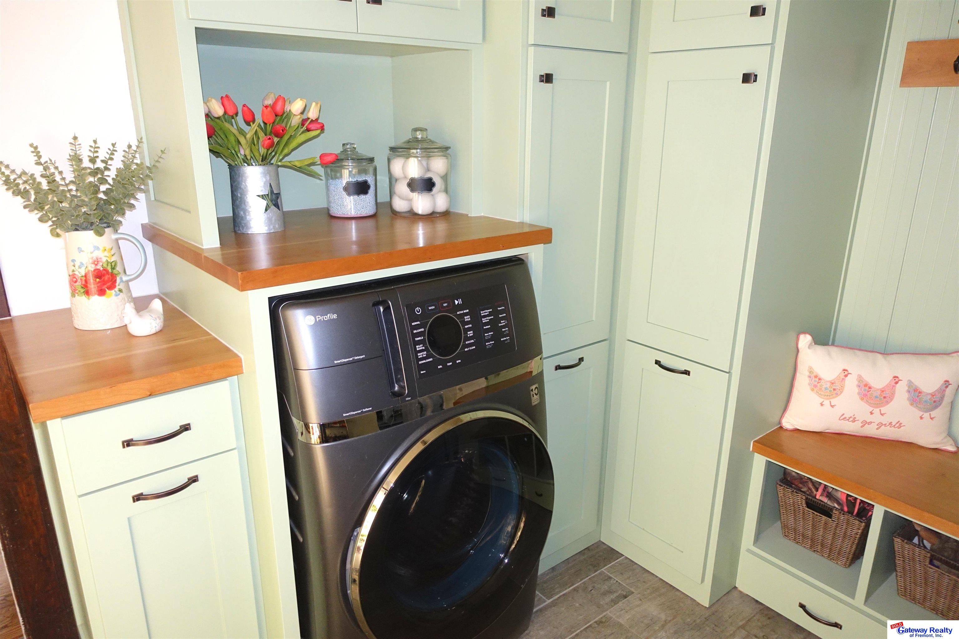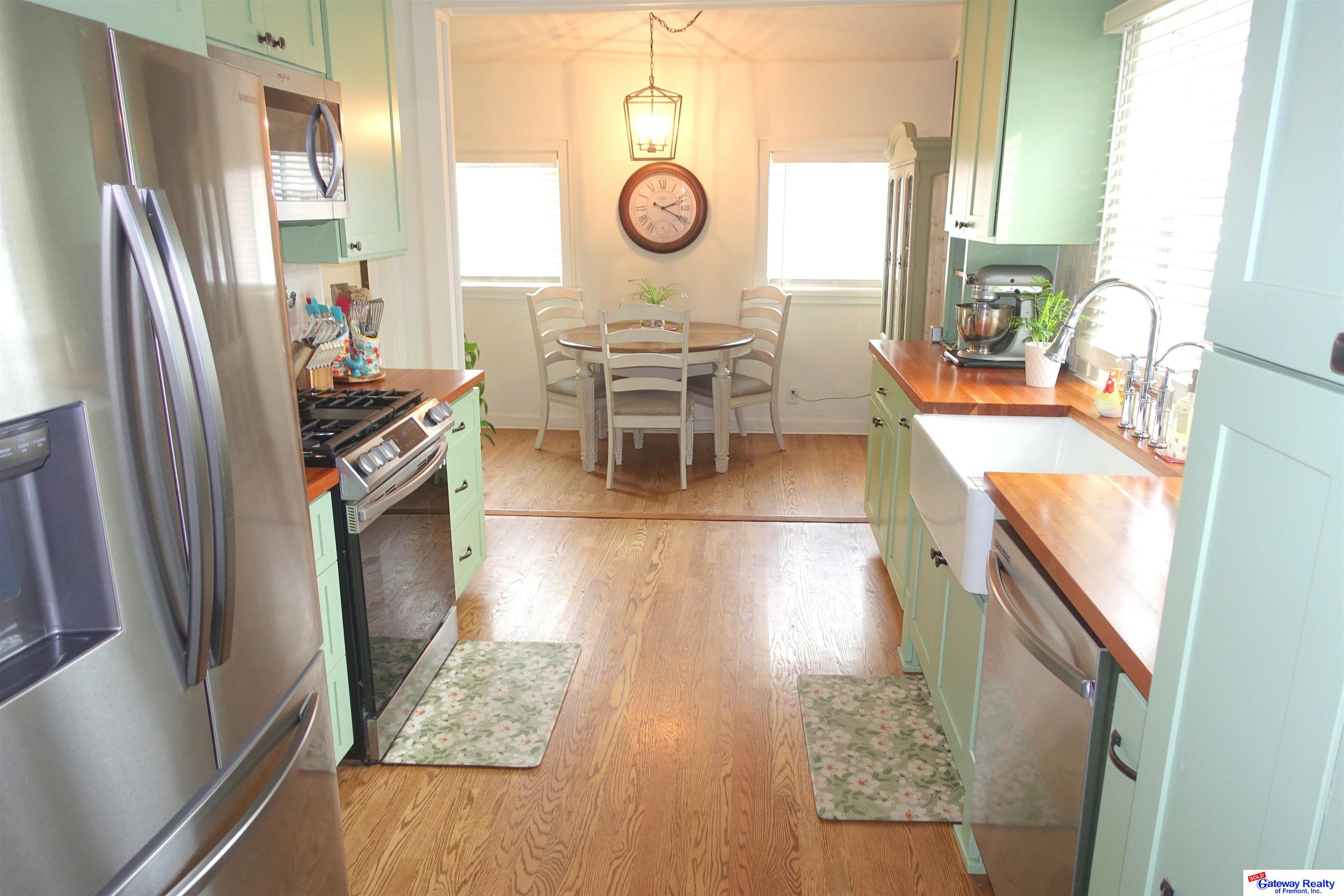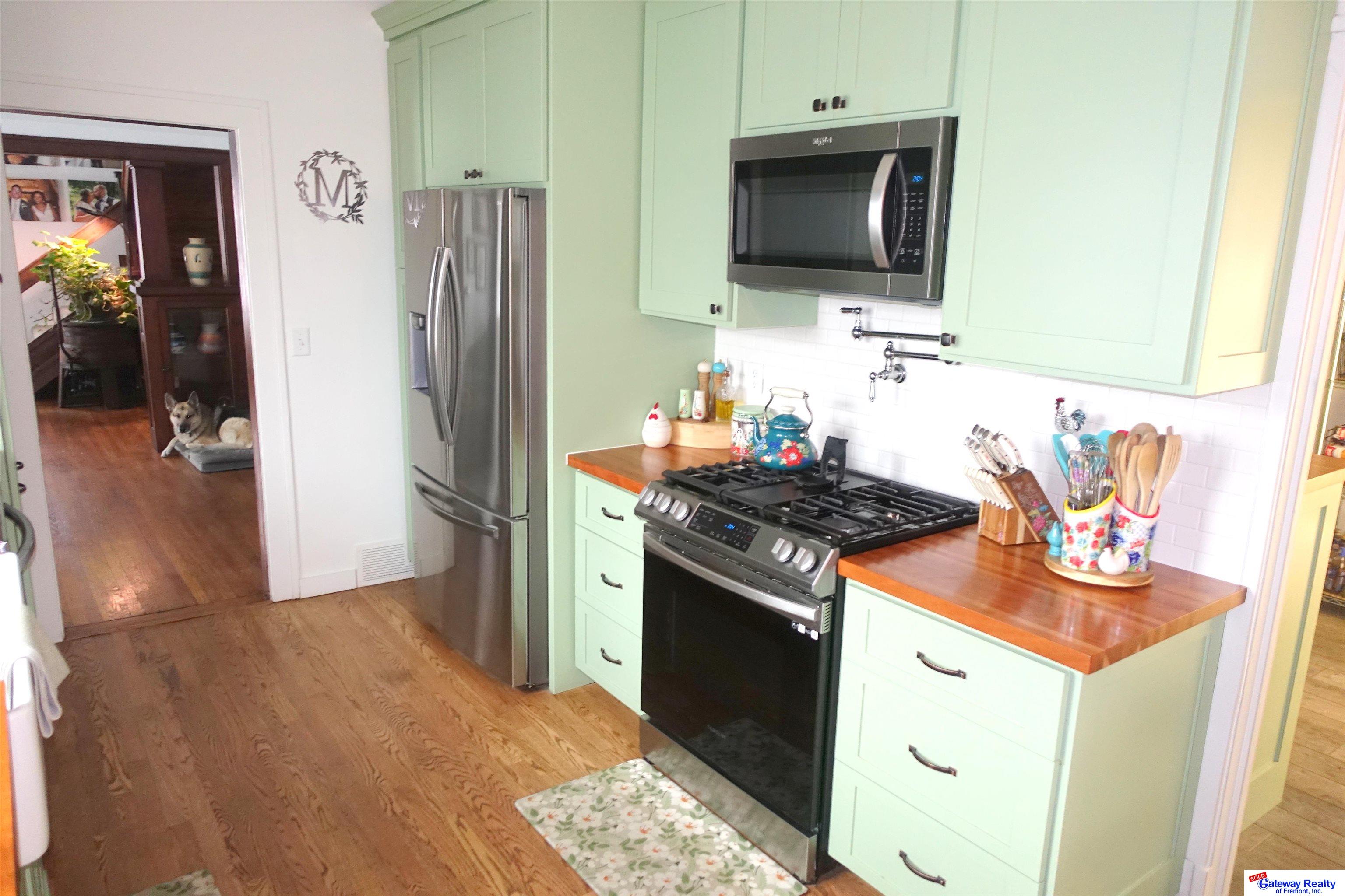 Beautifully maintained 4-bedroom, 3-bath Craftsman home built in 1889 offering 1,934 sq ft . This historic home blends timeless character with extensive modern upgrades. The recently remodeled kitchen features custom handcrafted birch cabinetry with soft-close drawers, butcher block countertops, farmhouse sink, pot filler, pull-out spice cabinet, and dual pantry cabinets. Appliances include refrigerator, dishwasher, and gas stove. Dining room showcases new oak flooring, while original refinished oak floors run throughout the home. The laundry room offers matching custom cabinetry and GE Profile combination washer/dryer. Front windows are Renewal by Andersen double-pane and new entry and storm doors. Major upgrades include a Generac whole-home generator, Kinetico water softener, reverse osmosis system, and radon mitigation. Exterior includes a welcoming front porch, oversized heated garage, privacy fence, storage shed, and solar garden shed. Easy commute to Lincoln and Omaha.