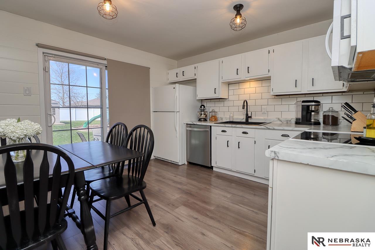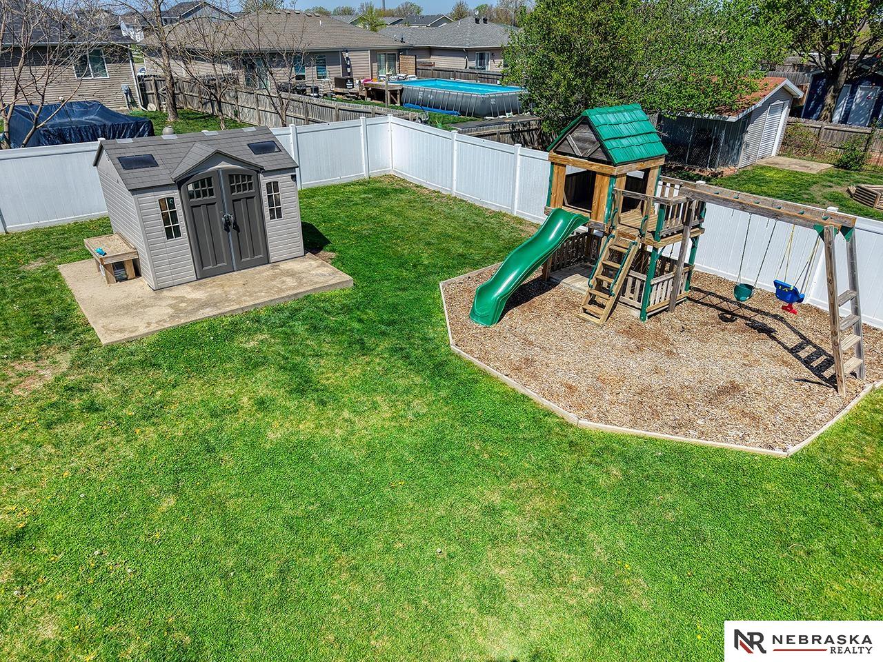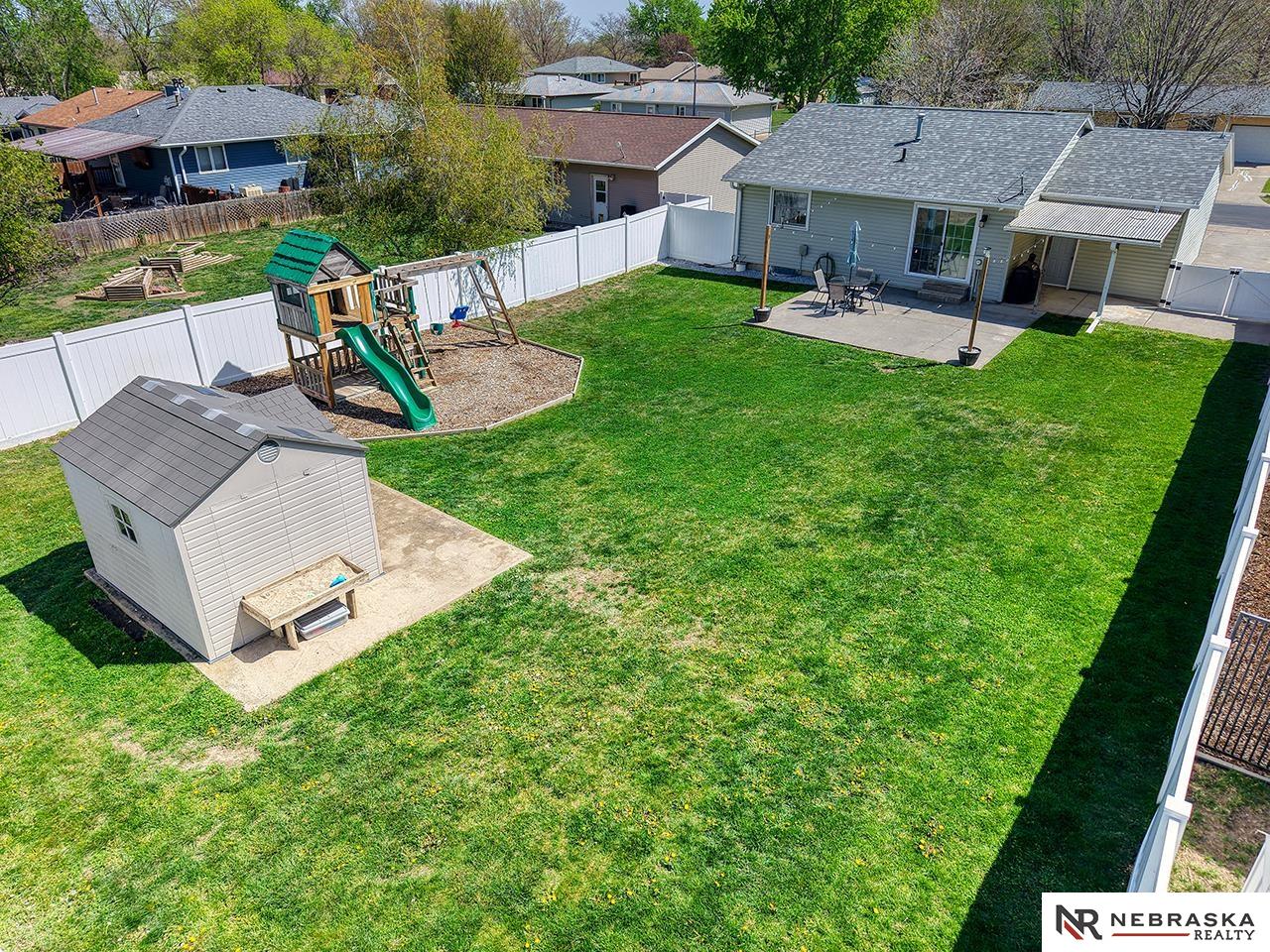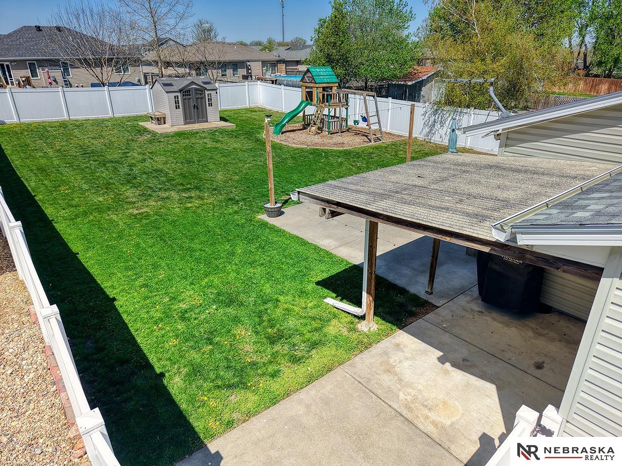 Showings start Friday, 5/1 in Eagle, Nebraska—where small-town charm meets everyday convenience just 10 minutes east of Lincoln! Ideally located near the school, pool and parks and just minutes from Eagle Raceway this home offers both community and accessibility. Step outside to a standout backyard designed for enjoyment, featuring a spacious 20x20 patio perfect for entertaining, a large fully fenced yard with vinyl privacy fencing, a playset area and a storage shed on a concrete slab. The inviting front exterior boasts excellent curb appeal and a low-maintenance composite deck. Inside, durable LVT flooring flows throughout the main level with three bedrooms. The updated kitchen showcases stylish shiplap with dining space and easy access to the backyard. A finished basement adds a generous rec room, large bonus room, ¾ bath, and ample storage. Complete with an attached garage and extra parking slab, this home blends comfort, function, and outdoor living beautifully.
