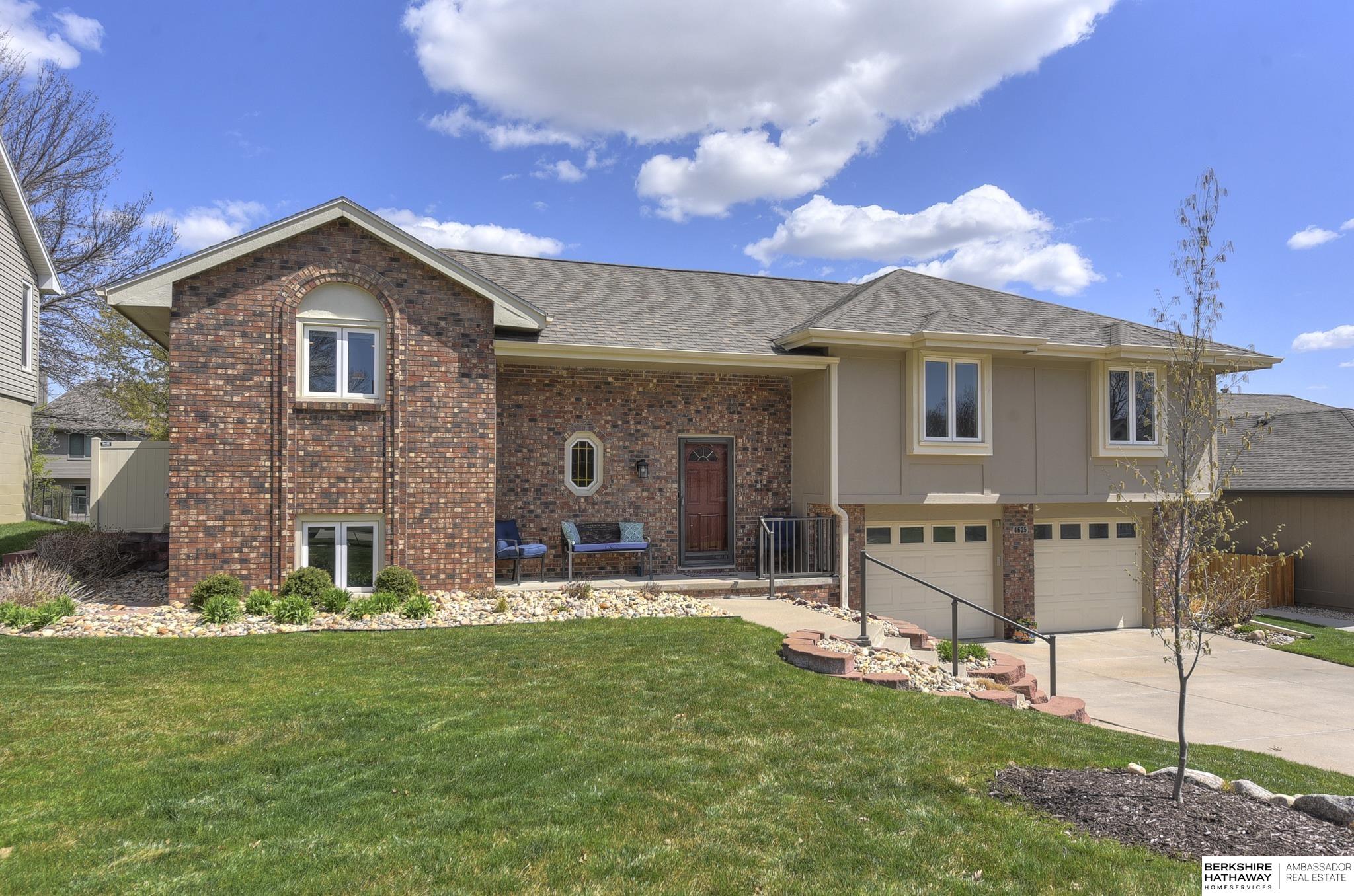 OPEN HOUSE 1-3 SAT 4/20. WELCOME to this PRE-INSPECTED HOME with a surprise twist to the layout. You will be proud to call this yours. Close to Zorinsky lake/parks, restaurants & access to I-80. Beautiful elevation - appealing garage doors, front brick, covered front porch & beautiful landscaping. Open the door to a complete remodel! 2009 vinyl windows. 2013 kitchen update w/cabinetry, stove, quartz, refrig & Kitchen & Great Room walls were opened to give a modern open feel w/wood floors too. H20 softener & under the sink purifier in 2013. HVAC in 2014. The updates did not stop there! 2015 new garage doors, 2017 Baths & massive low-maintenance decking & privacy vinyl fencing were added to the backyard. 2019 roof & H20 softener, 2022 DW, garage opener & H20 Heater. Lower level Family Rm has great space for entertaining. You will feel like this home is new but in an established neighborhood. Home has been maintained! LL Bath rough-in. Tons of natural light! Drop Zone space off garage.