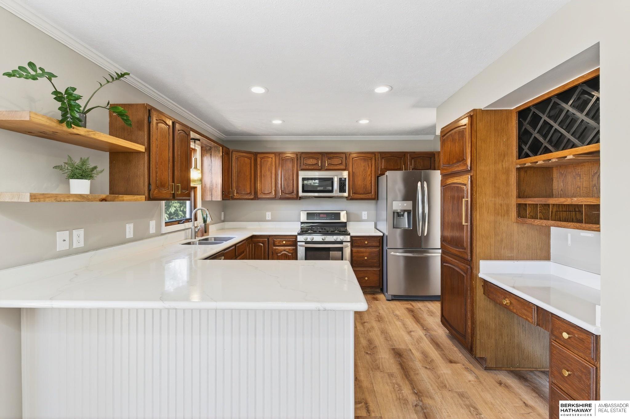 Welcome to this move-in ready 4-bed, 4-bath, 2-car garage home located in the Millard School District. On a peaceful cul-de-sac, this home offers a perfect blend of charm, space, and modern updates. Inside find fresh interior paint and new LVP flooring throughout the main level. The front living room flows seamlessly into a formal dining space, just off the updated kitchen with hard surface countertops, stainless steel appliances, pantry, breakfast nook, and abundant cabinet space. The cozy family room showcases custom built-ins and a gas fireplace, complemented by rich woodwork and solid-panel doors throughout the home. Upstairs, you'll find three generously sized bedrooms, new carpet upstairs, a spacious primary suite with vaulted ceilings, dual sinks, walk-in closet, and a beautifully tiled walk-in shower. The fully finished walkout lower level offers a large living area, 4th bedroom, and ¾ bath-ideal for guests or a private retreat.