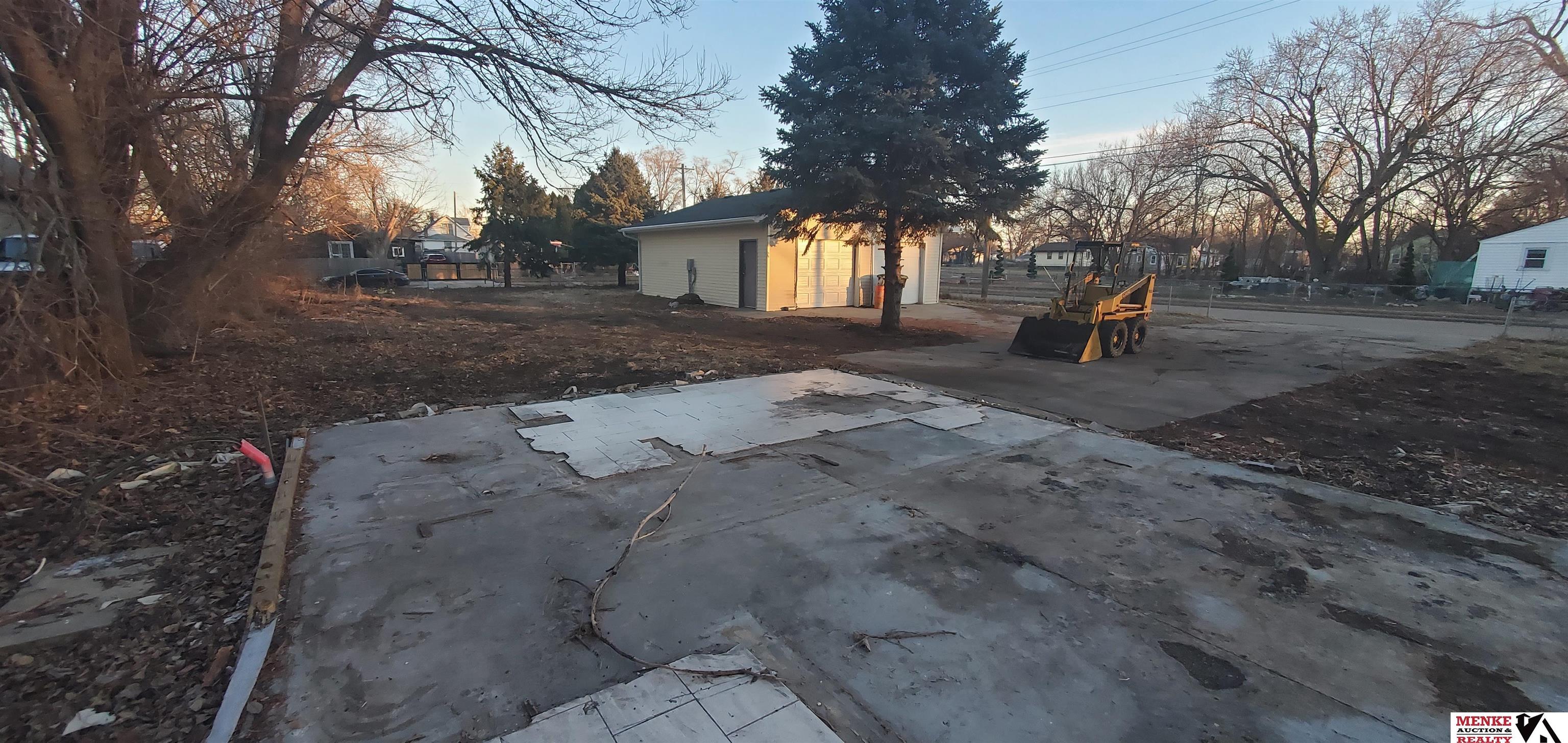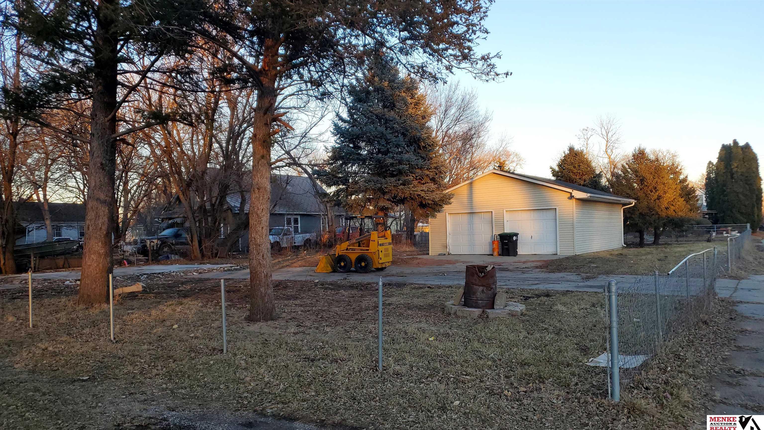 Nice corner lot that would make a great building site. Fire damaged home has been removed but the 24' x 20' foundation remains along with utilities to it. The 24' x 32' detached garage is fully insulated and sheathed with its own electrical panel and meter, and is in very good condition. The lot has several mature trees and chain link fencing. Lots of possibilities here.