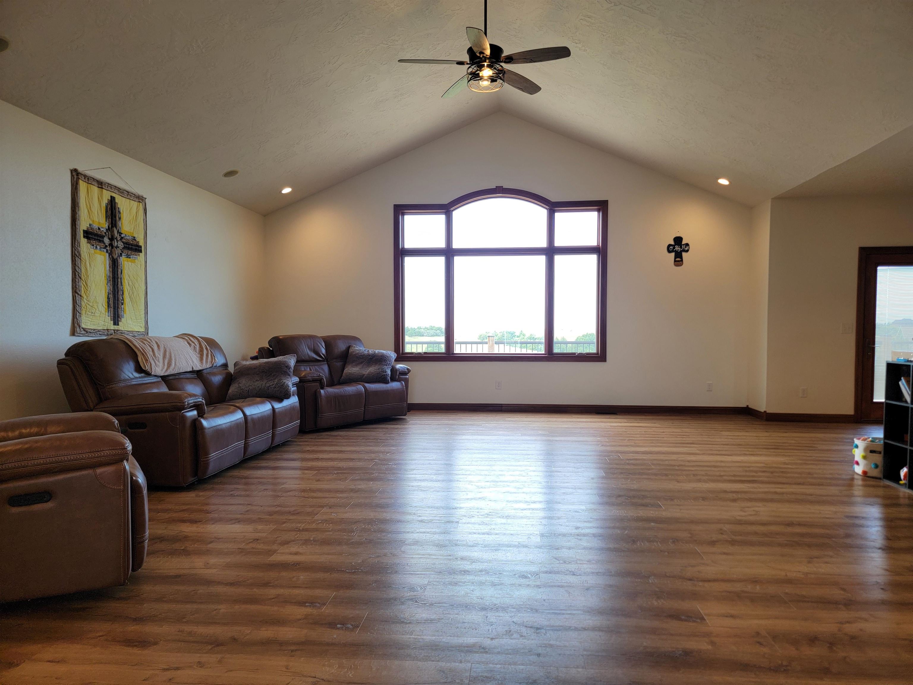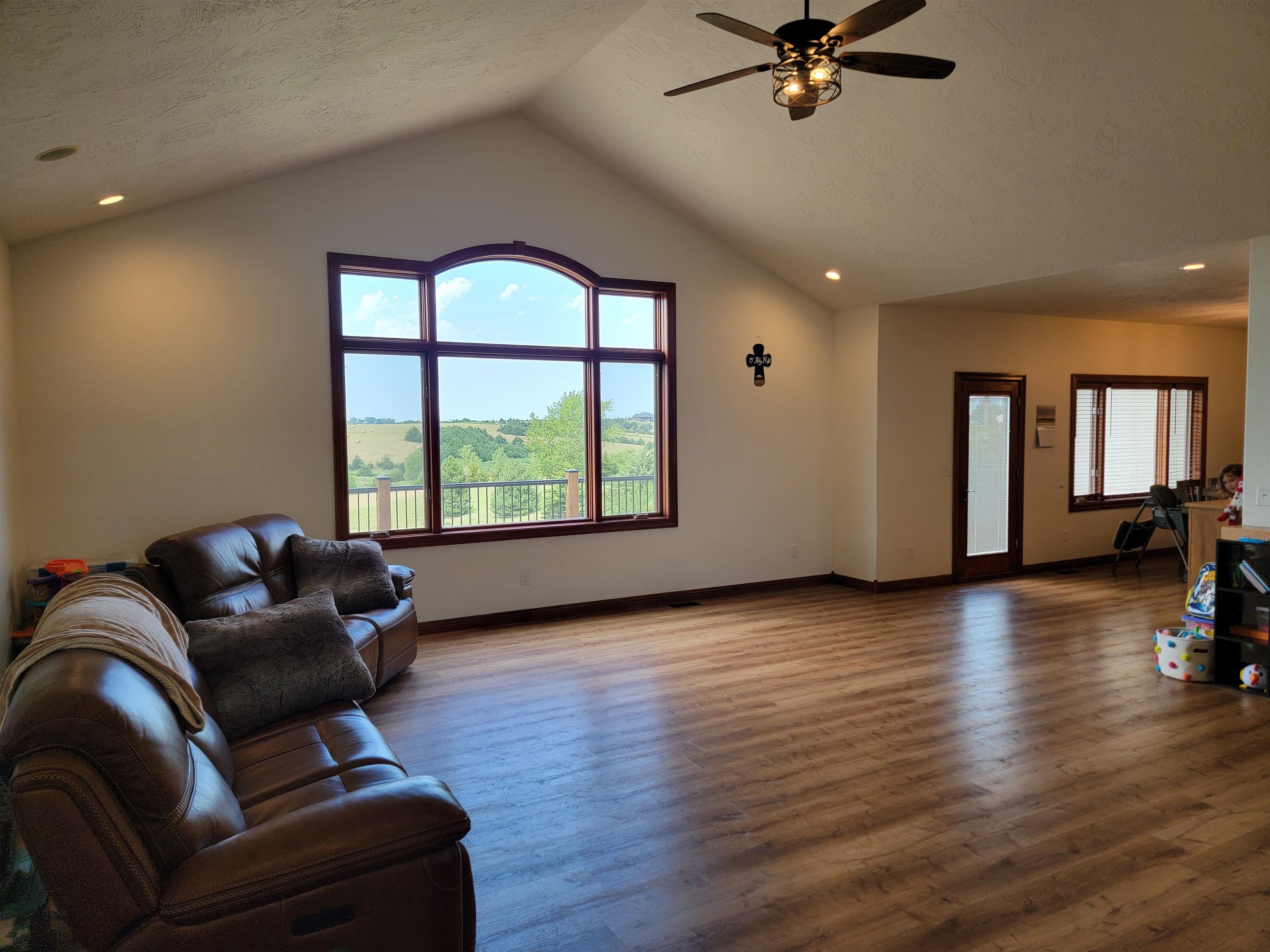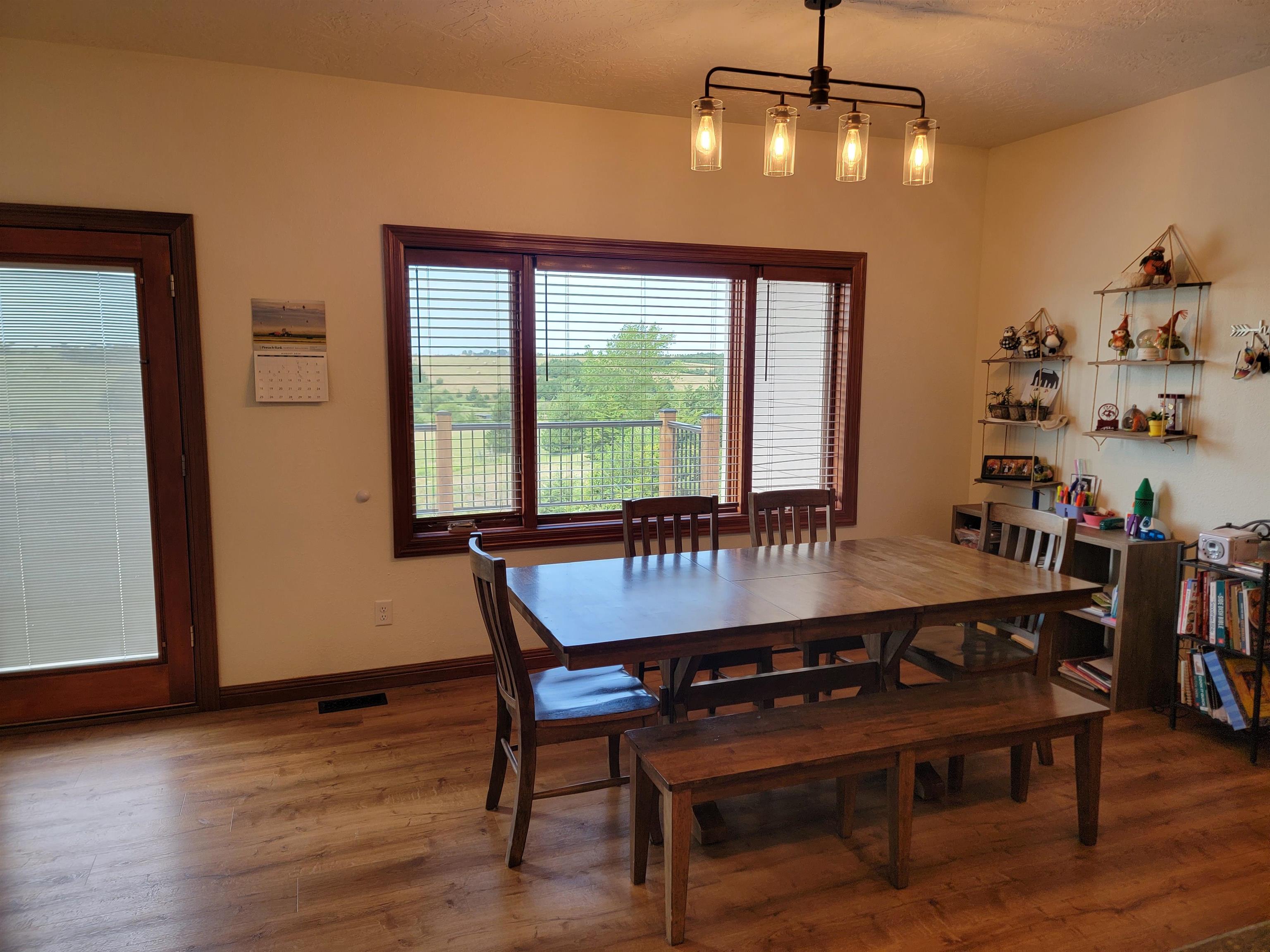 Welcome to this charming and spacious home just west of Kearney. With a generous 6,324 sq ft of combined main floor and basement space, this property has room for everyone and everything. The main floor boasts 3,012 sq ft of beautifully designed living space, featuring a large living room, a well-appointed kitchen with a walk-in pantry, a dining room, and a laundry room. You'll also find 3 bedrooms, each with ample closet space, and 3 bathrooms. LVP Wood Flooring installed in 2021. The expansive basement, covering 3,312 sq ft (or 4816 sq ft if you include the gym), offers endless possibilities with a large family room, a dedicated theater room, an additional bedroom, 2 more bathrooms, and a storage room. A storm shelter ensures peace of mind, while the wet-bar hook-ups offer entertaining potential. For fitness enthusiasts, the attached 32x47 gym comes with its own heating and cooling system. This spot is perfect for bringing your outdoor activities inside. Baseball, hockey, trampoline, archery, the options are endless. The home is equipped with a heat pump and gas-forced air backup for year-round comfort. The large 4-car garage provides plenty of space for vehicles and hobbies. Step outside to the lower-level patio, complete with hot-tub hook-ups, or relax on the updated deck. Horse lovers will appreciate the 12x36 open- front horse shed with a tack room and 5 acres of land for your horses to roam freely. This home is just a short drive from Kearney. Don’t miss your chance to experience this unique property—schedule your tour today!