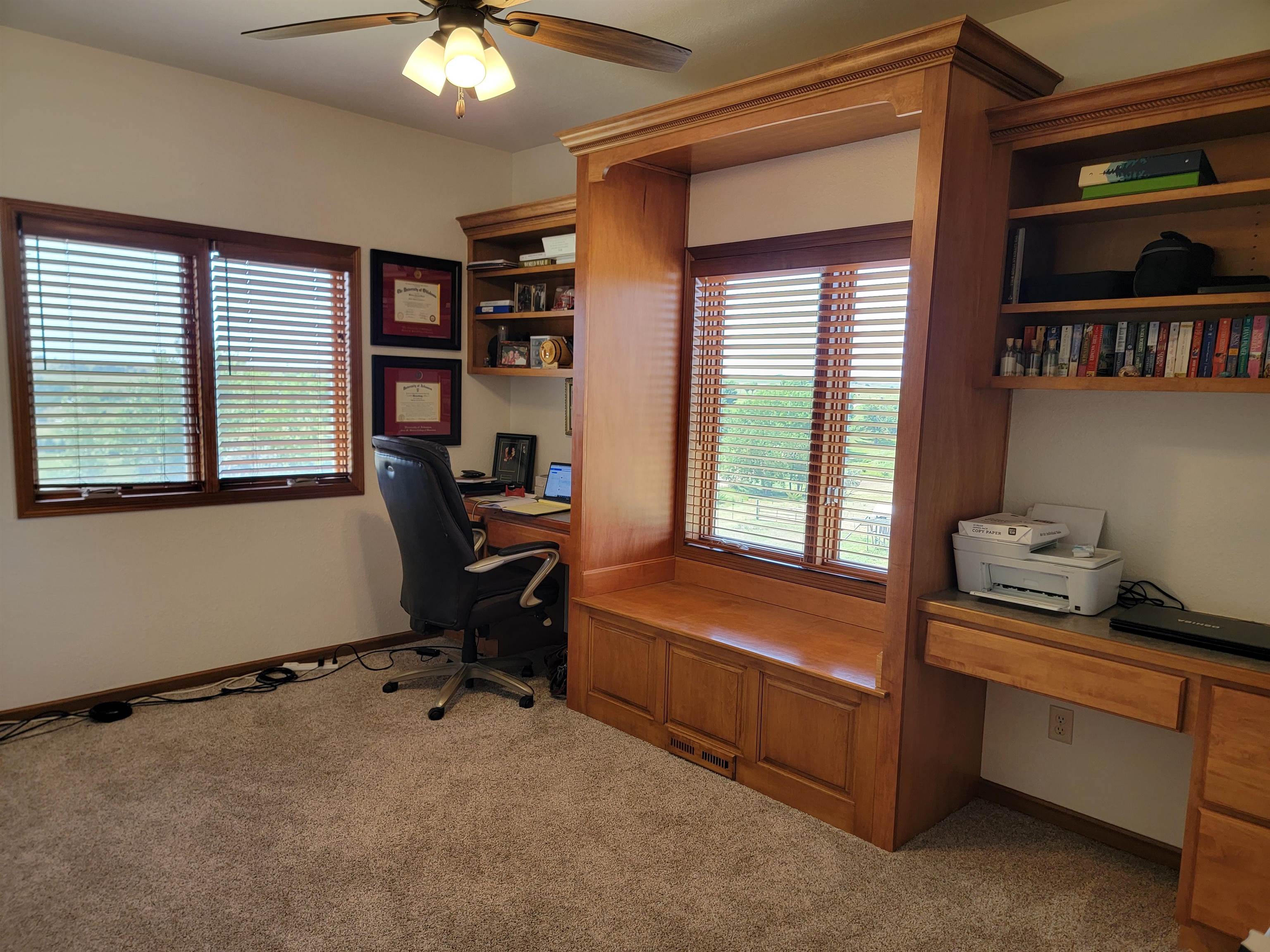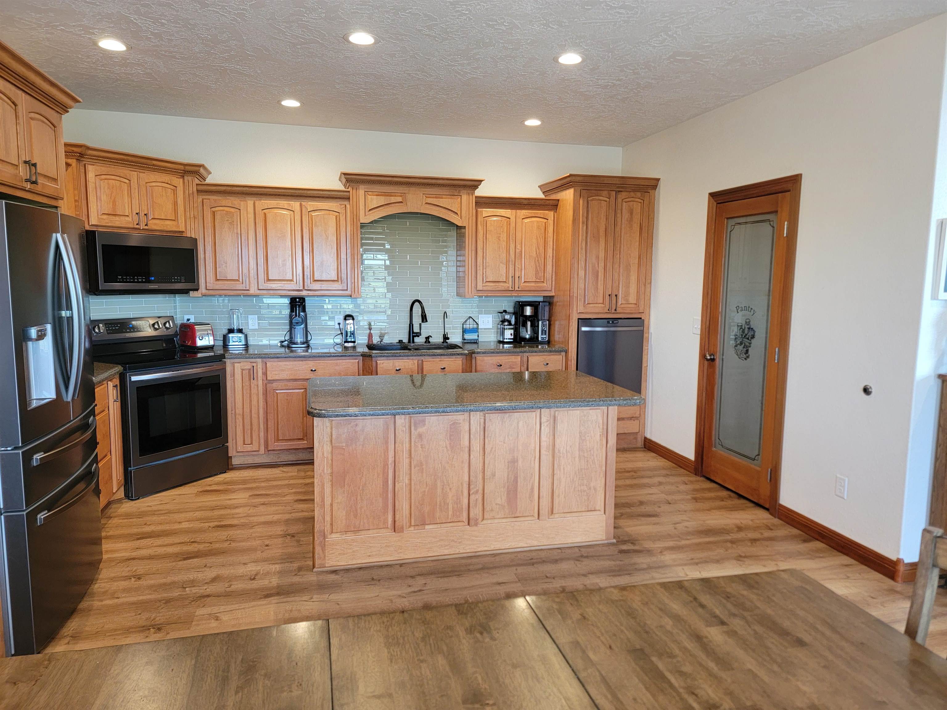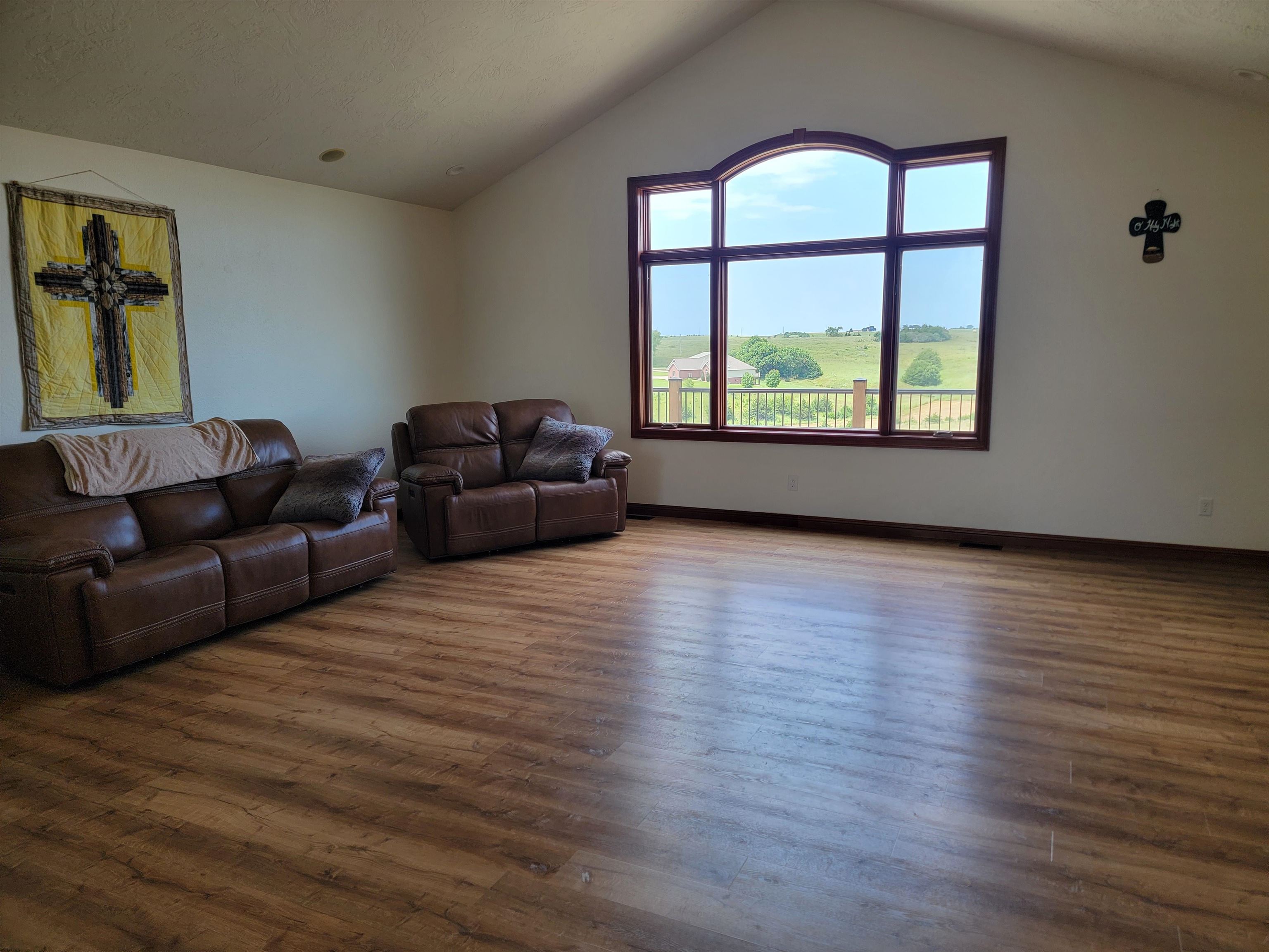 Welcome to this charming and spacious home just west of Kearney. With a generous 6,324 sq ft of combined main floor and basement space, this property has room for everyone and everything. The main floor boasts 3,012 sq ft of beautifully designed living space, featuring a large living room, a well-appointed kitchen with a walk-in pantry, a dining room, and a laundry room. You'll also find 3 bedrooms, each with ample closet space, and 3 bathrooms. LVP Wood Flooring installed in 2021. The expansive basement, covering 3,312 sq ft (or 4816 sq ft if you include the gym), offers endless possibilities with a large family room, a dedicated theater room, an additional bedroom, 2 more bathrooms, and a storage room. A storm shelter ensures peace of mind, while the wet-bar hook-ups offer entertaining potential. For fitness enthusiasts, the attached 32x47 gym comes with its own heating and cooling system. This spot is perfect for bringing your outdoor activities inside. Baseball, hockey, trampoline, archery, the options are endless. The home is equipped with a heat pump and gas-forced air backup for year-round comfort. The large 4-car garage provides plenty of space for vehicles and hobbies. Step outside to the lower-level patio, complete with hot-tub hook-ups, or relax on the updated deck. Horse lovers will appreciate the 12x36 open- front horse shed with a tack room and 5 acres of land for your horses to roam freely. This home is just a short drive from Kearney. Don’t miss your chance to experience this unique property—schedule your tour today!