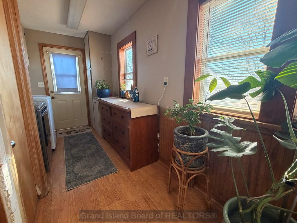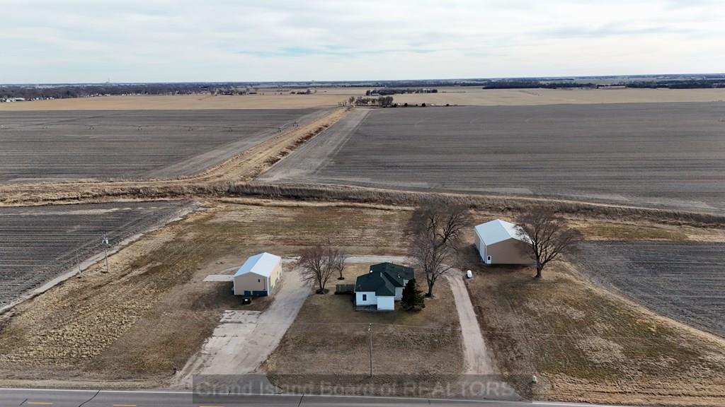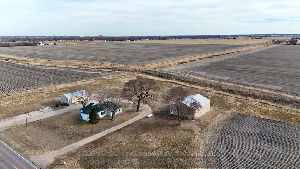 Hard-to-find acreage on a paved road! This one-level home offers incredible views and privacy—all right next to Grand Island city limits. Situated on 3 acres, the home features generously sized rooms and a functional, easy-flow floor plan. The property includes a 40' x 24' detached garage plus another 56' x 42' outbuilding—perfect for storage, hobbies, or business needs. A rare opportunity in a location that's tough to beat!