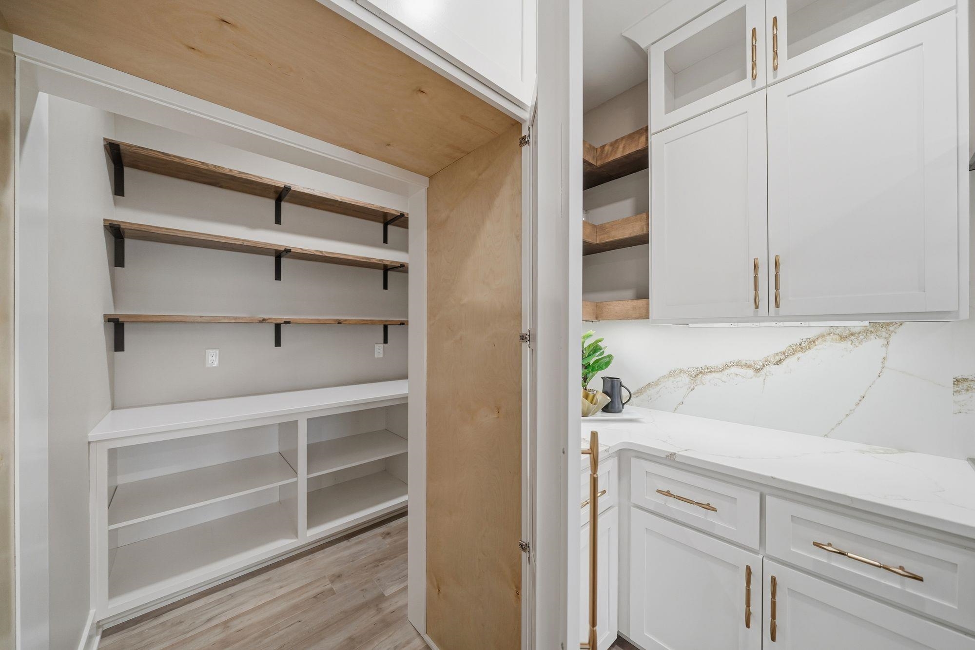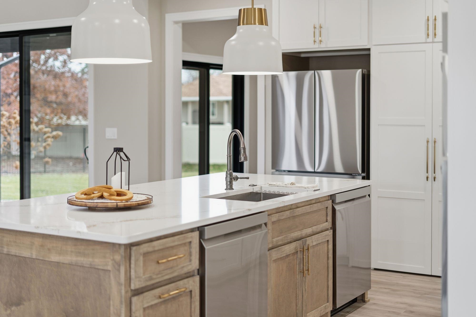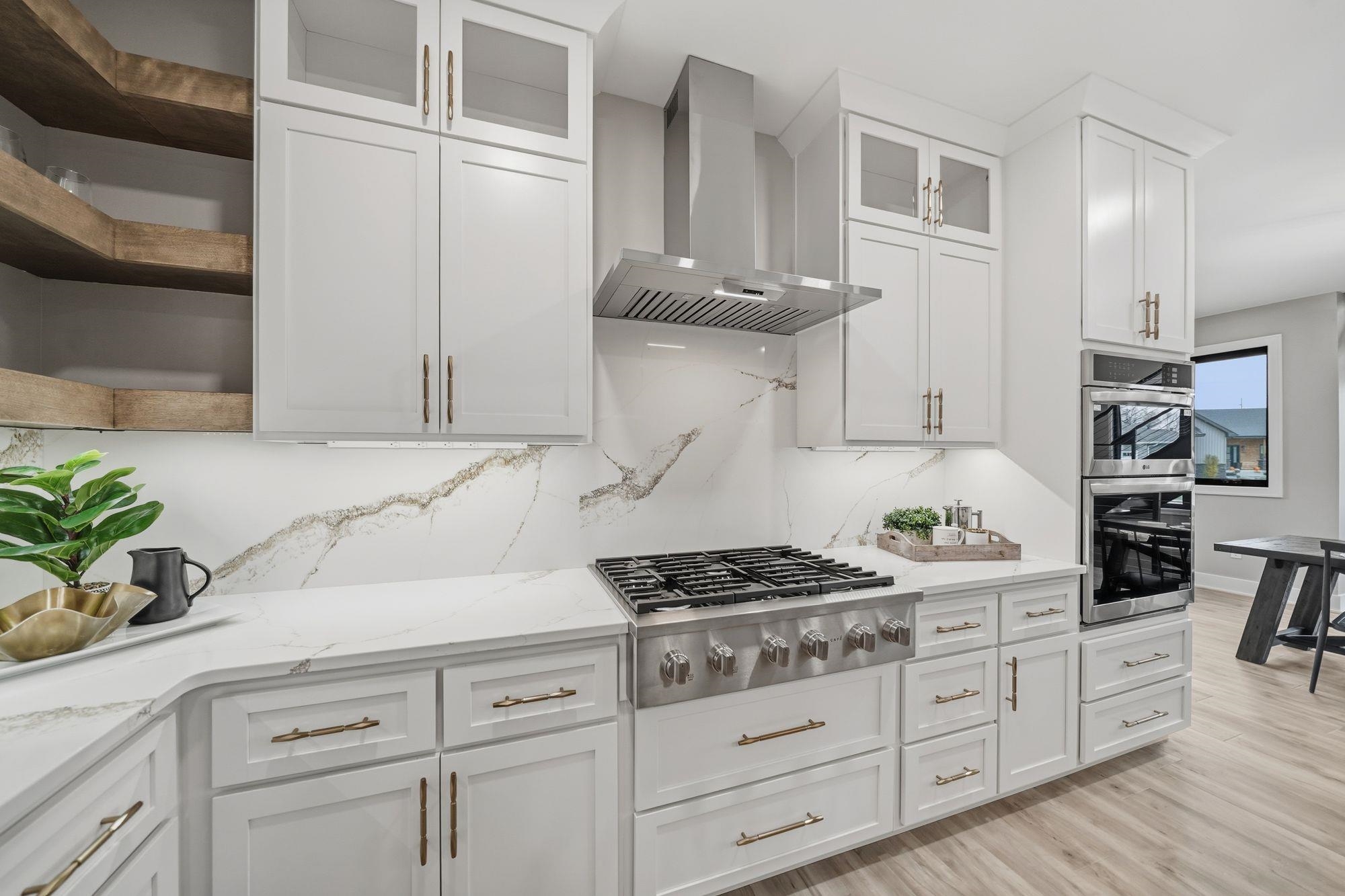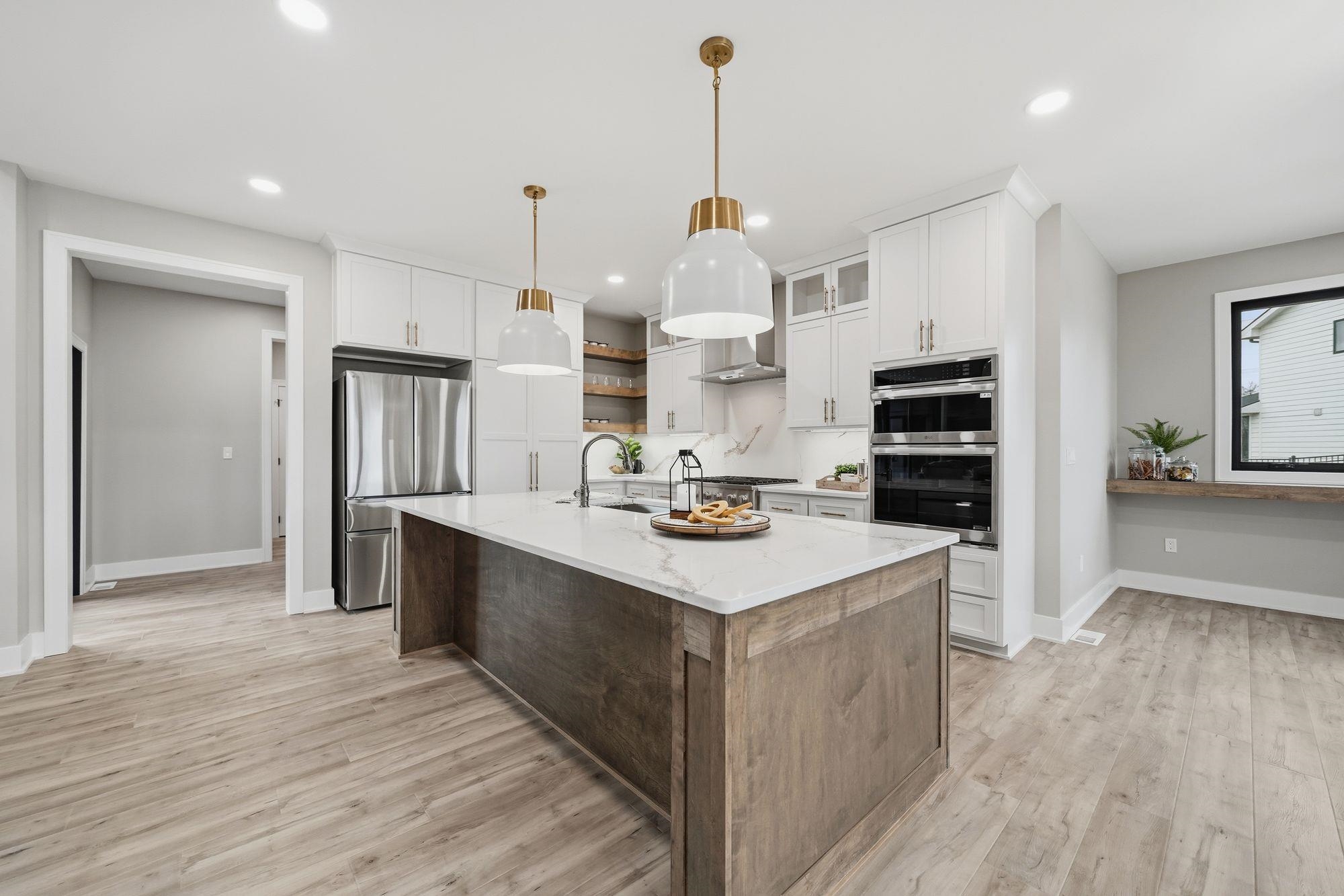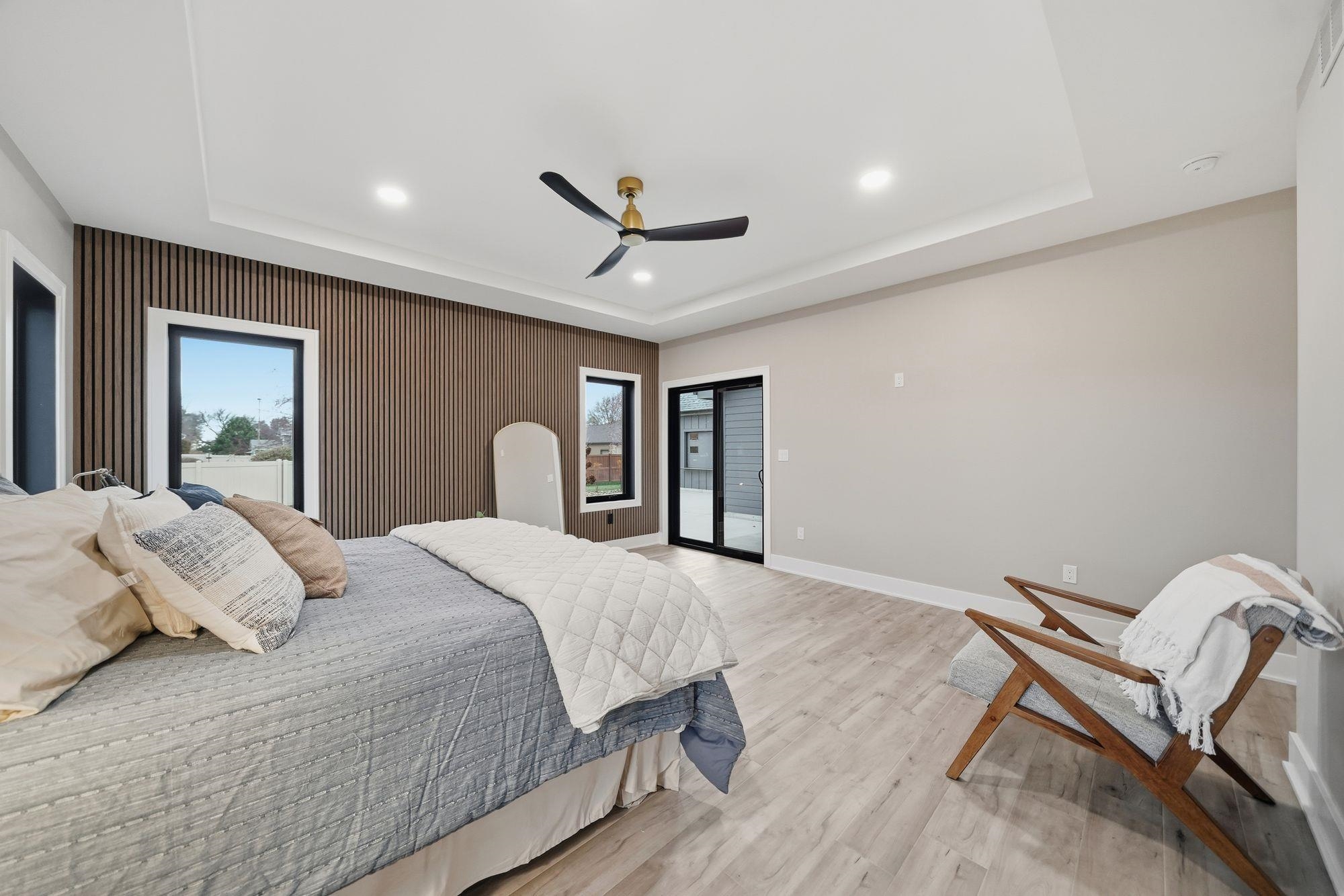 Stunning custom S&S Homes Inc. build on one of the last lots in Country Shadows - outside city limits to save on taxes yet connected to city sewer with a private well. This modern 2-story features a main floor primary suite, 4 additional bedrooms, 6 baths, hidden pantry, vaulted ceilings, beams, and a custom open-tread metal staircase. The great room offers soaring windows and a floor-to-ceiling stone fireplace, leading to a designer kitchen with quartz counters, large island, double ovens, and walk-in pantry. Finished basement includes wet bar, fireplace, rec room, and a sunken 11" golf simulator/movie room. Oversized 4-car garage with four individual doors, bar area, utility sink, and attic storage. Fenced yard and large patio complete this exceptional home