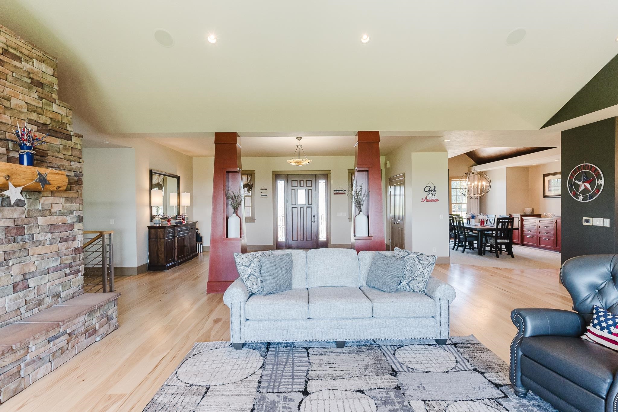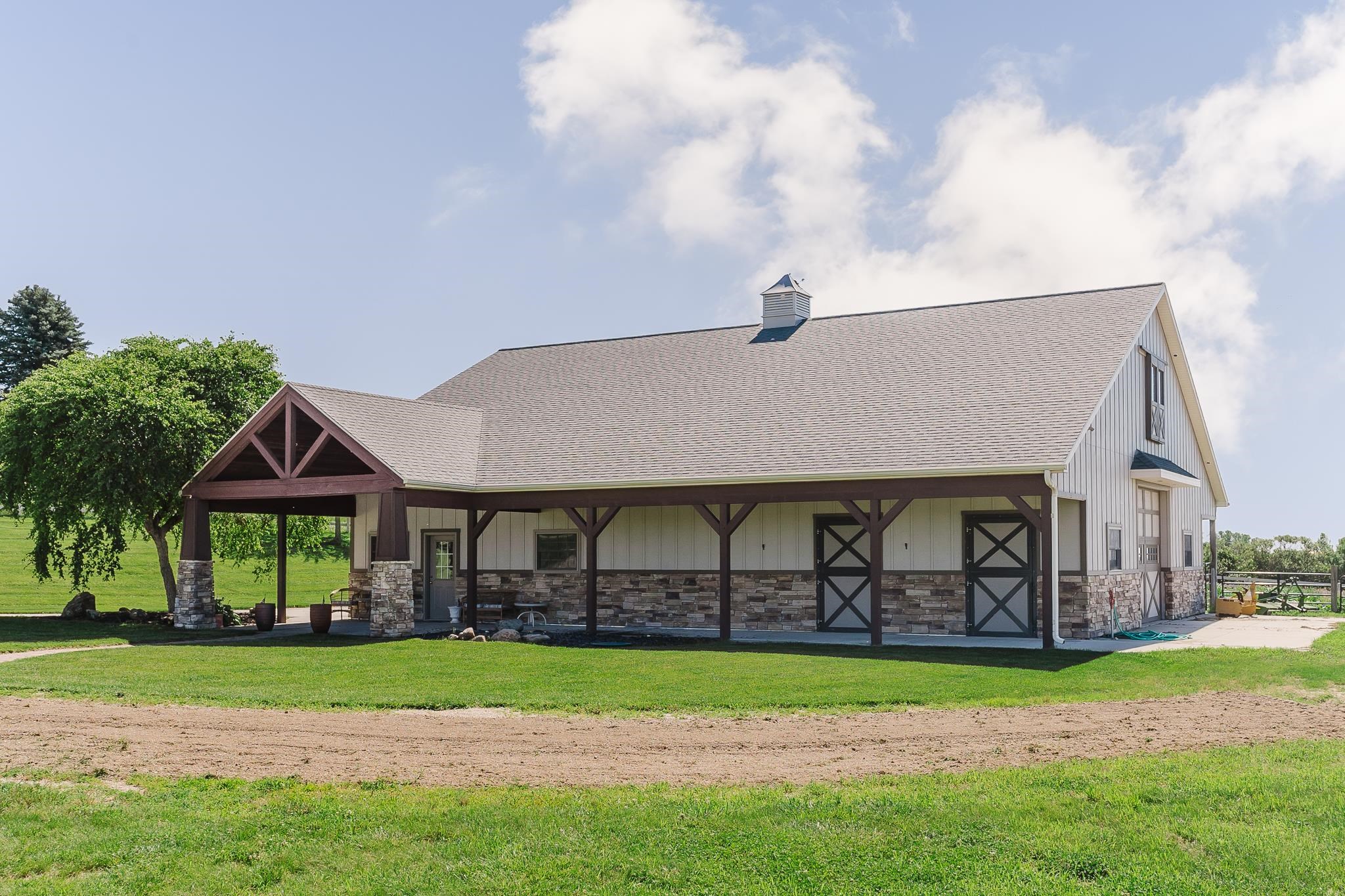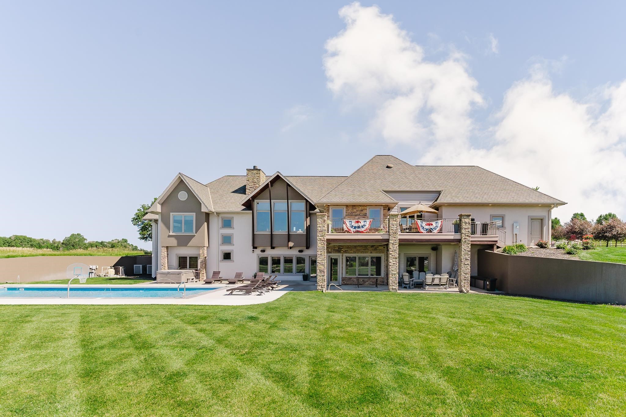 Discover an extraordinary custom estate where architectural artistry meets luxurious living on sprawling acreage. This magnificent 5-bedroom, 5-bathroom residence features meticulously crafted living space, showcasing breathtaking views and unparalleled attention to detail. Step into a culinary enthusiast's paradise featuring an expansive chef's kitchen designed for both intimate gatherings and grand entertaining. The home's dramatic suspended staircase, encased by striking travertine stone walls, creates an unforgettable first impression while the barrel ceiling dining room adds distinctive character. Gorgeous wood flooring flows throughout, complemented by three thoughtfully placed fireplaces that create inviting focal points. The private primary bedroom suite offers a sanctuary of comfort with separate vanities, a luxurious soaker tub, spacious shower and an expansive walk-in closet. A dedicated office provides the perfect work-from-home retreat, while the lower level transforms into an entertainment haven complete with full kitchen, game room, workout facility, and an exquisite wine room for the discerning collector. Outdoor enthusiasts will marvel at the underground pool, serene koi pond, expansive deck, and covered patio featuring an outdoor fireplace. The property's crown jewel is a versatile barn equipped with three stalls, running water, tack room, restroom, and kitchenette—ideal for equestrian pursuits. High-end ranch fencing encloses a riding arena and pastoral landscapes, while mature tree lines provide natural privacy and beauty. This exceptional property seamlessly blends indoor luxury with outdoor recreation, creating an unmatched lifestyle opportunity just minutes from downtown Norfolk.